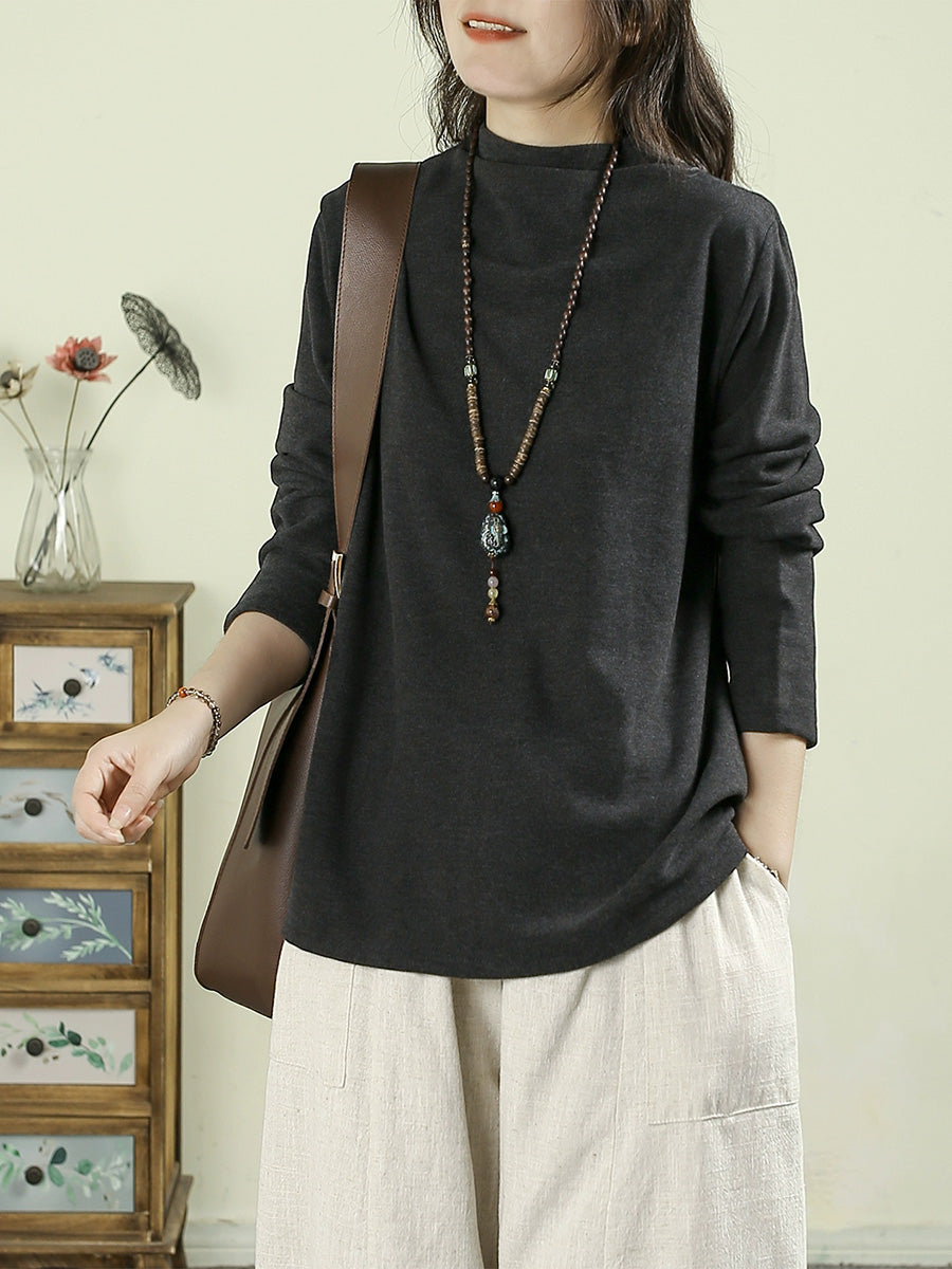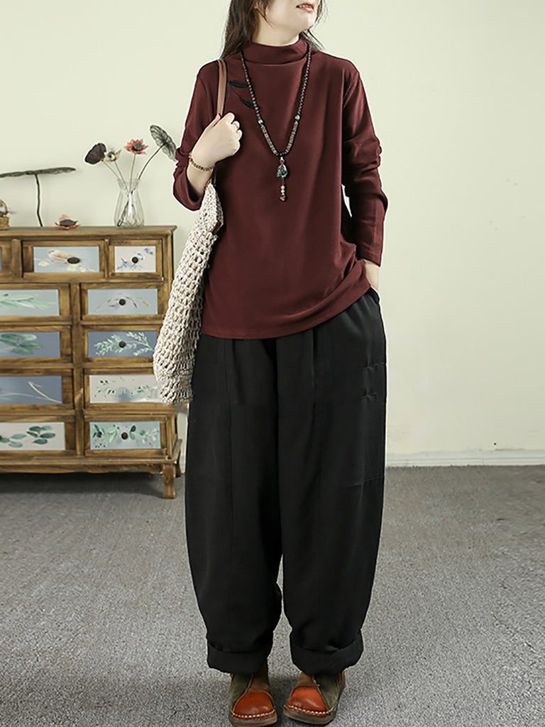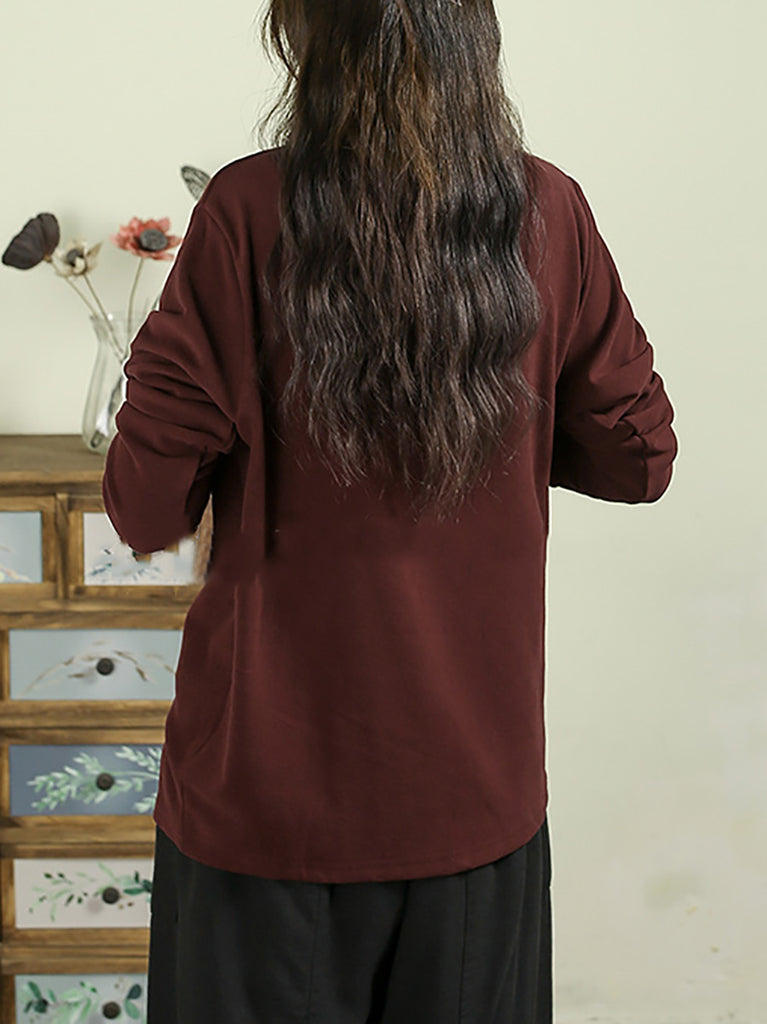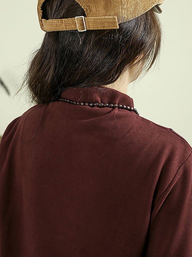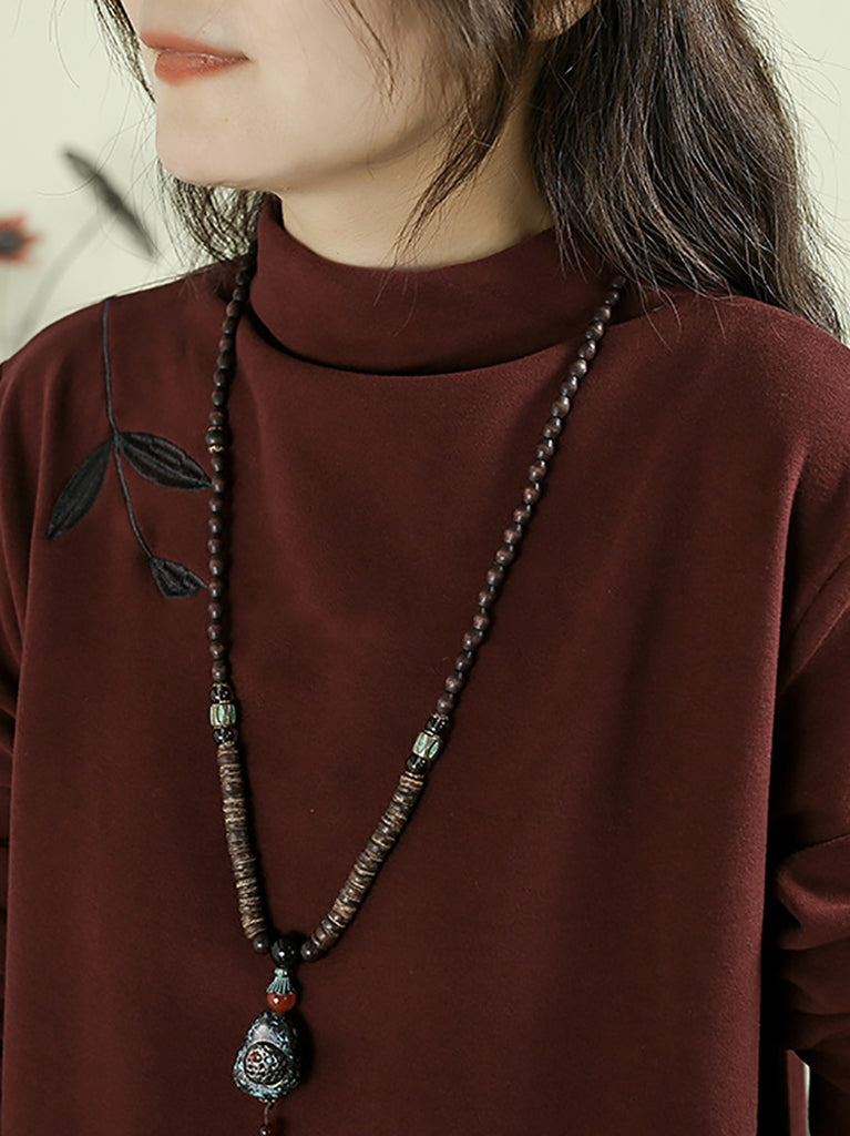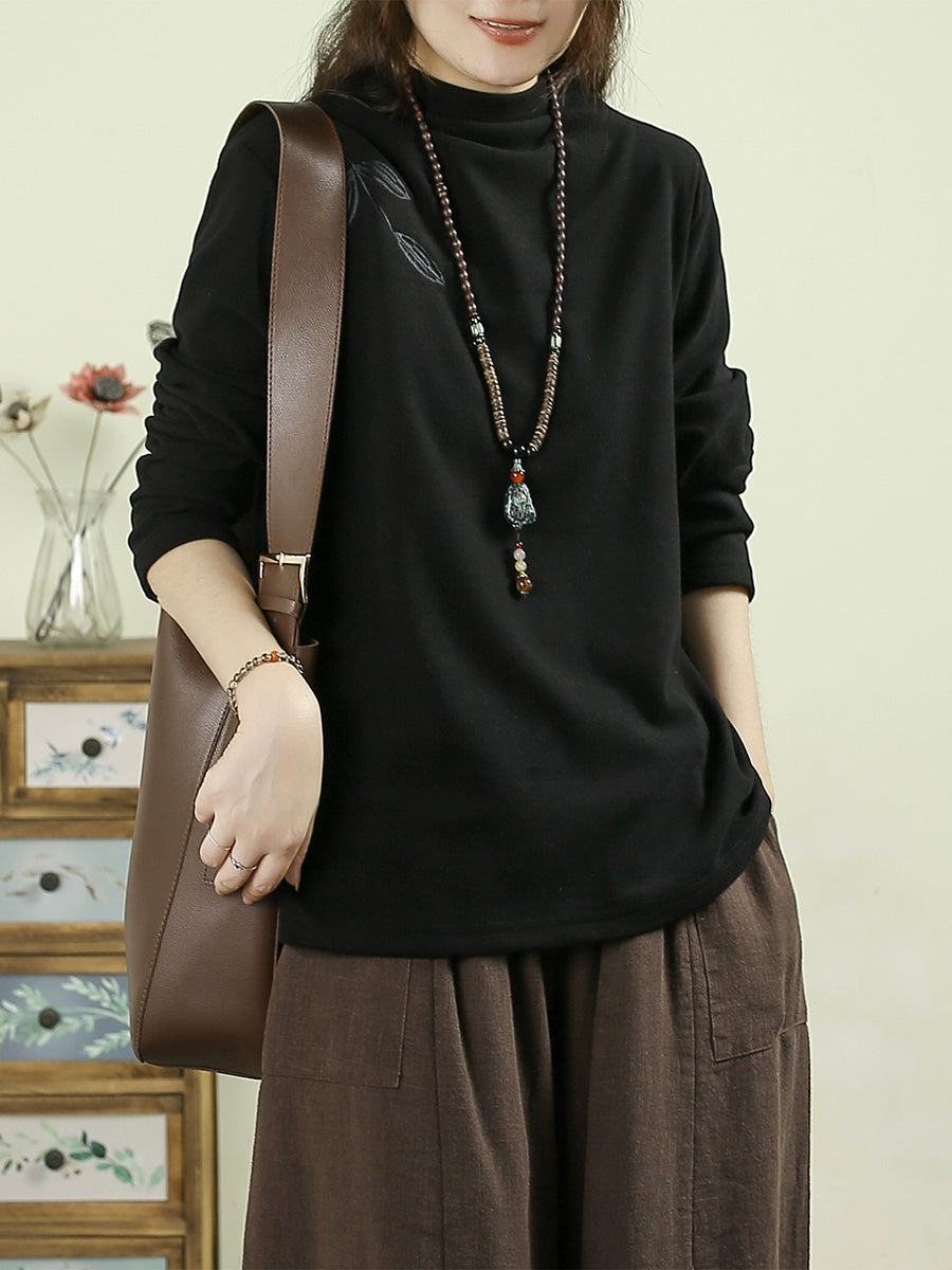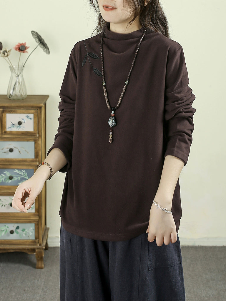 Blusa feminina casual de outono com bordado e gola alta
