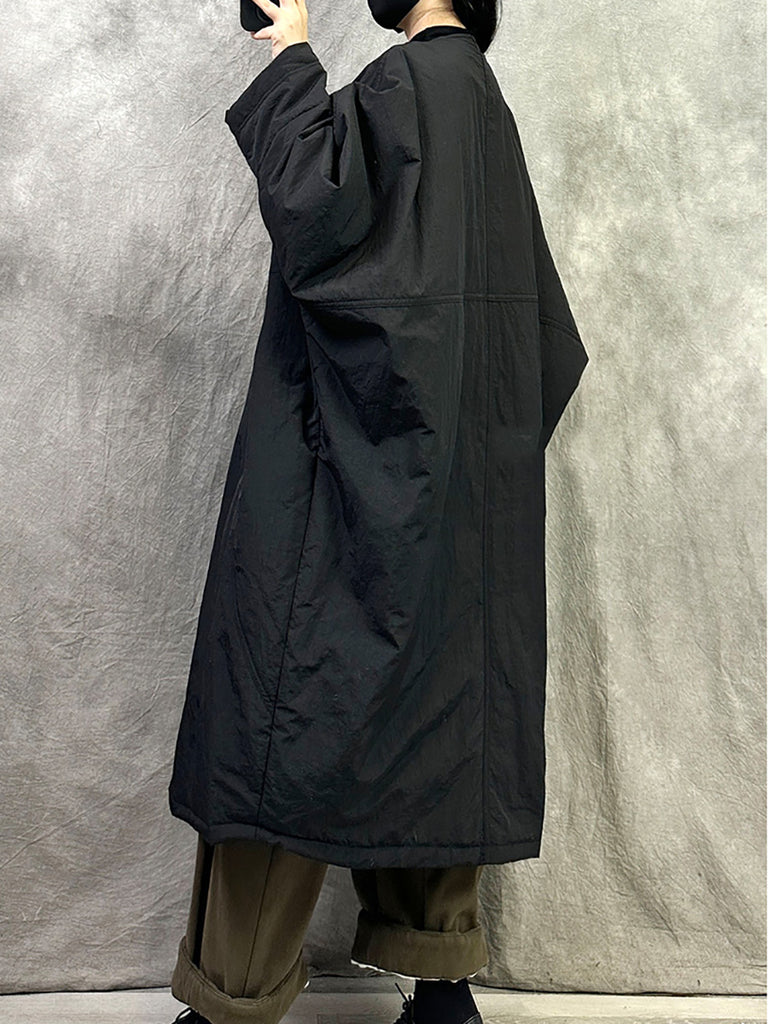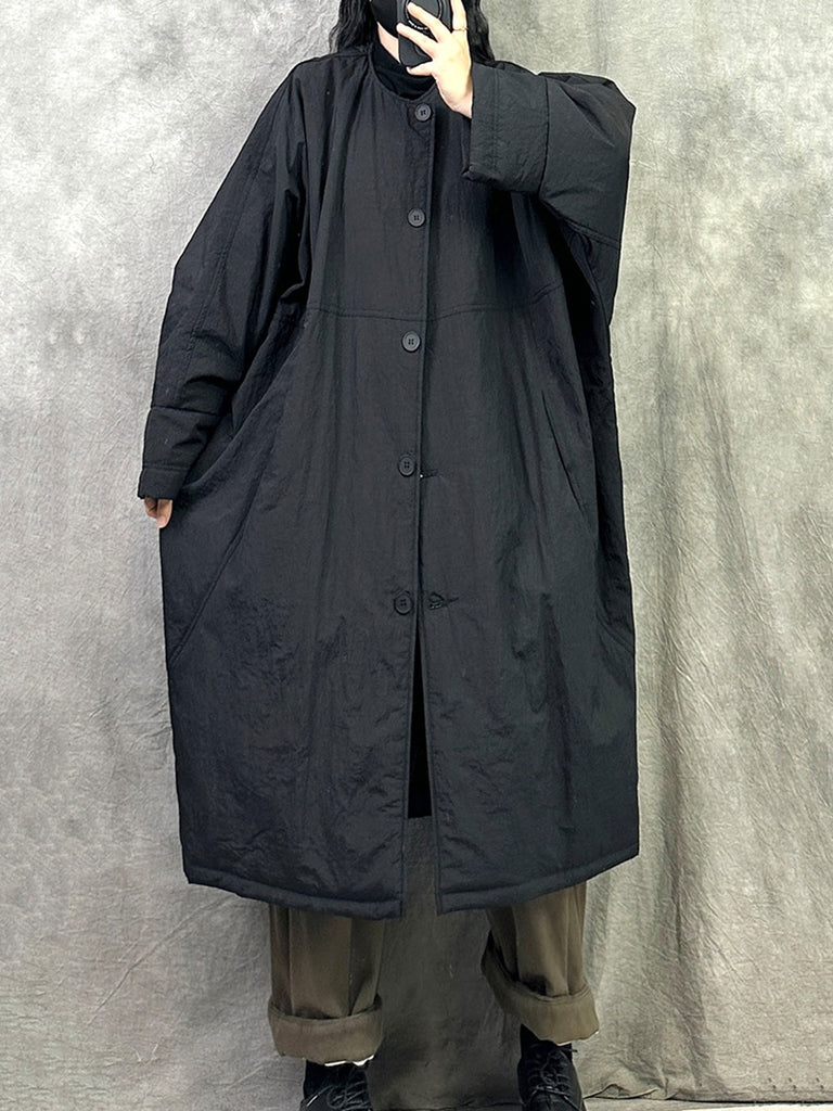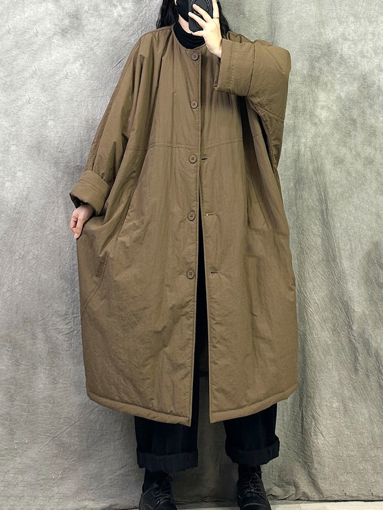 Casaco longo acolchoado com gola redonda e cor pura casual de inverno para mulheres