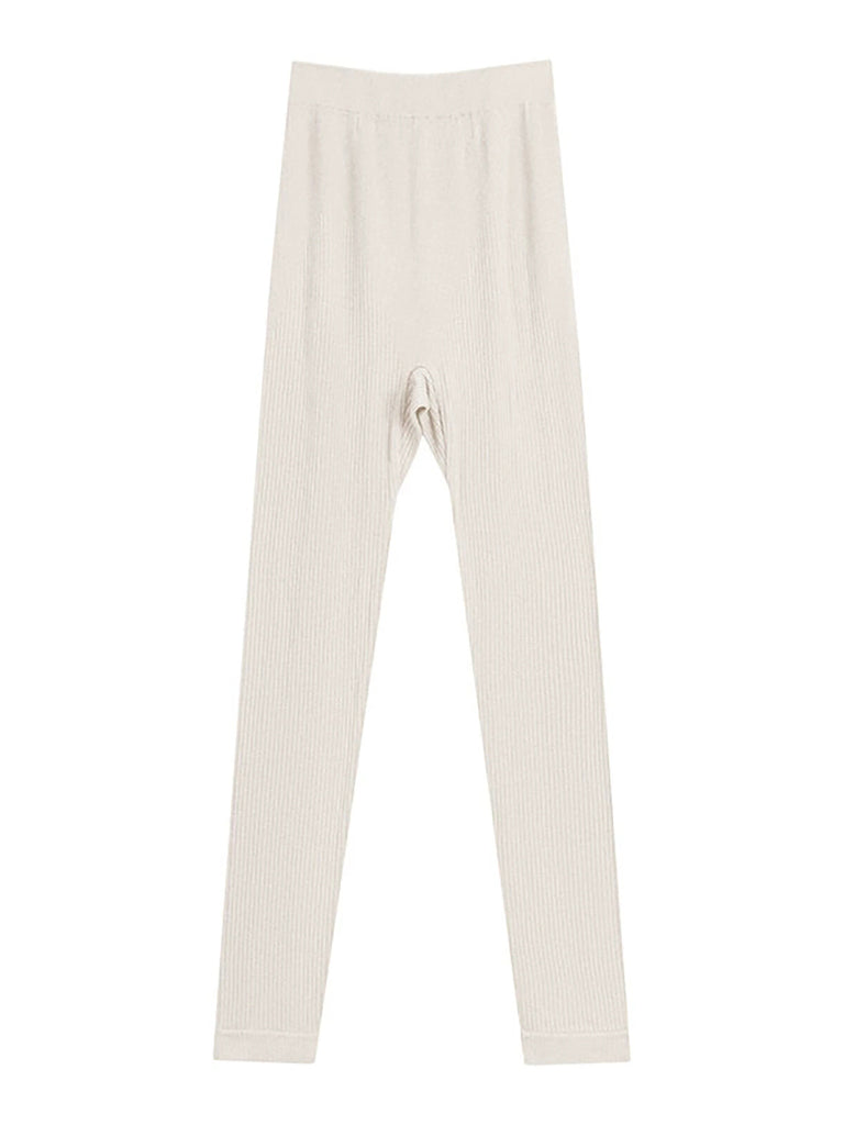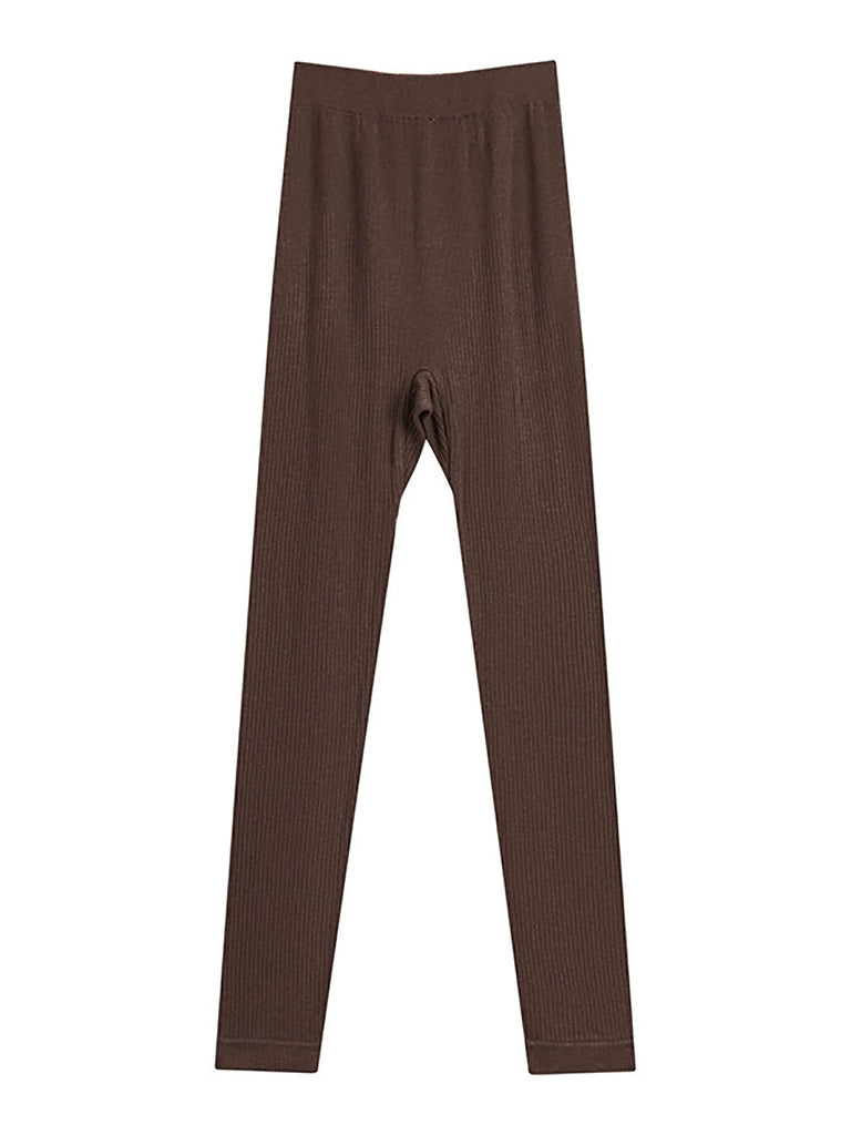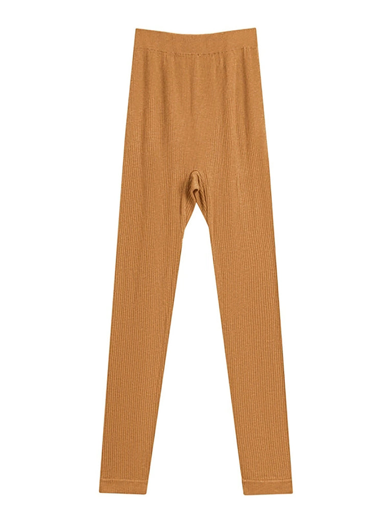 Leggings femininas de cintura alta, quentes e de cor pura para outono