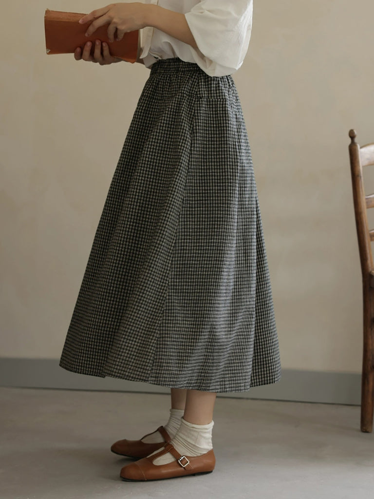 Saia feminina outono vintage treliça em formato de A 100% algodão
