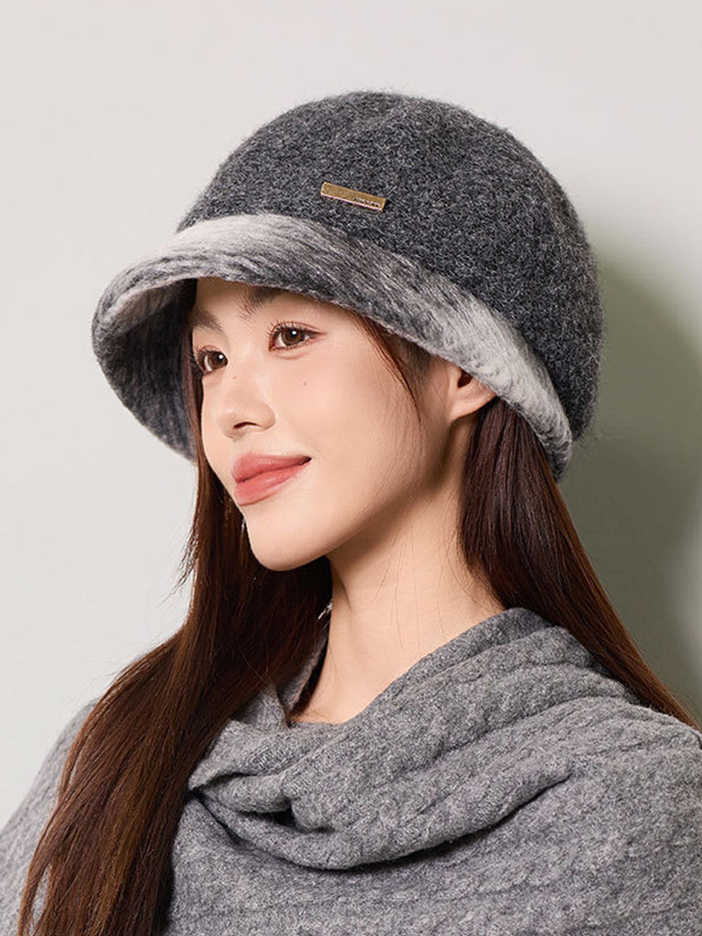 Gorro de malha feminino de inverno com cores misturadas para manter aquecido