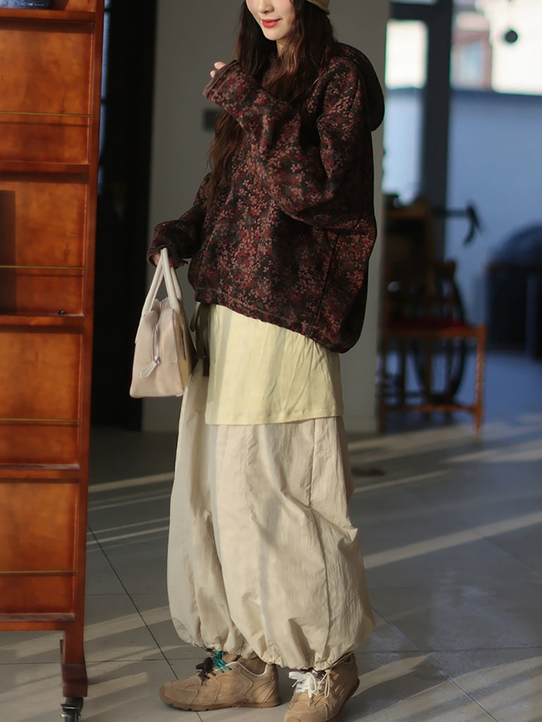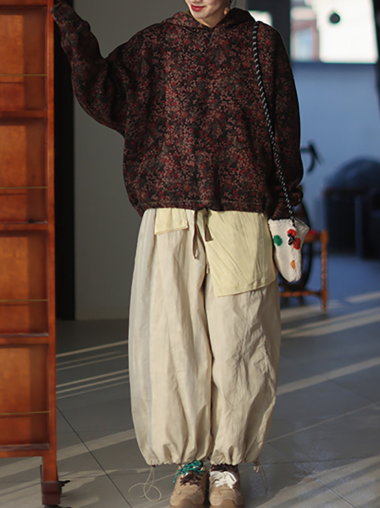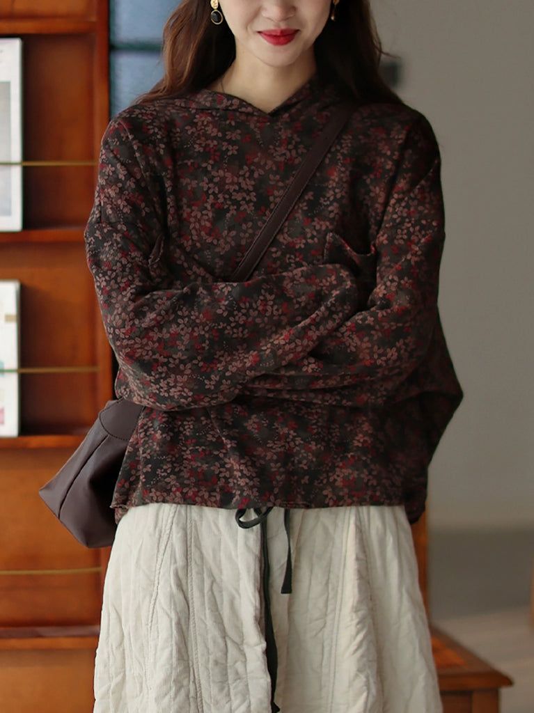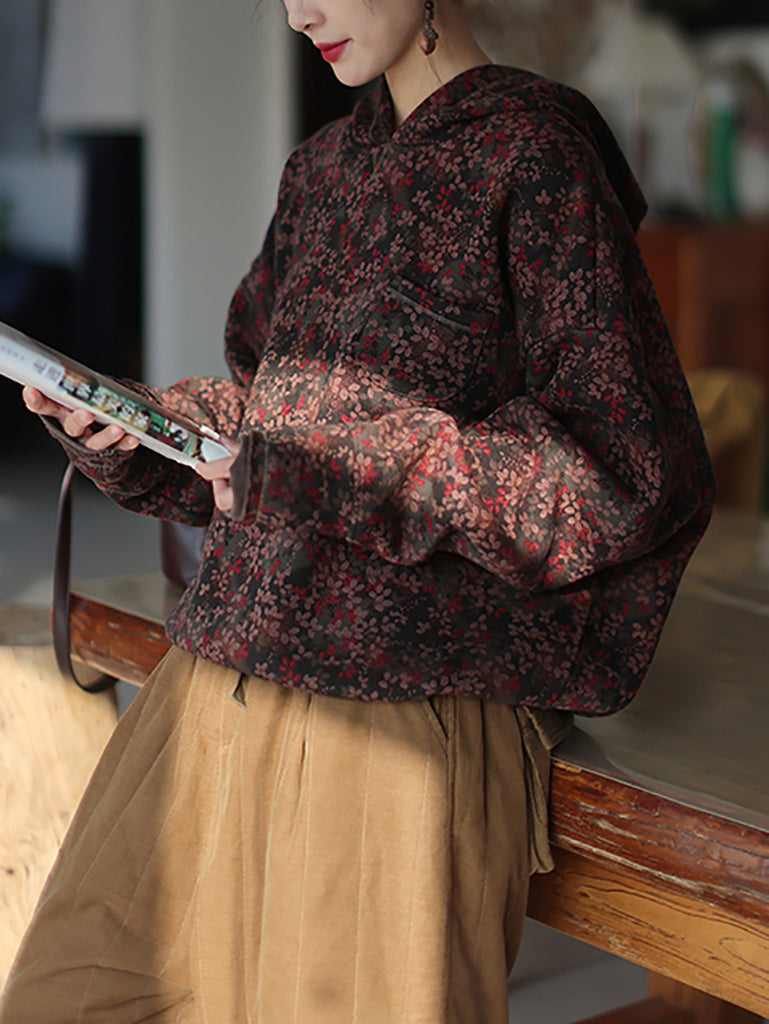 Confeccionado em algodão, este moletom com capuz apresenta estampa floral e gola com capuz. Com mangas raglan amplas e um estilo retrô, é ideal para o outono e inverno. O forro em fleece garante mais aquecimento e conforto nas estações mais frias.