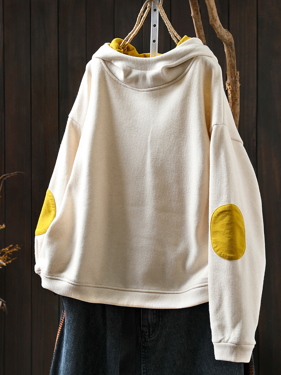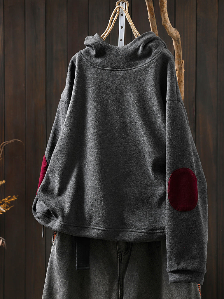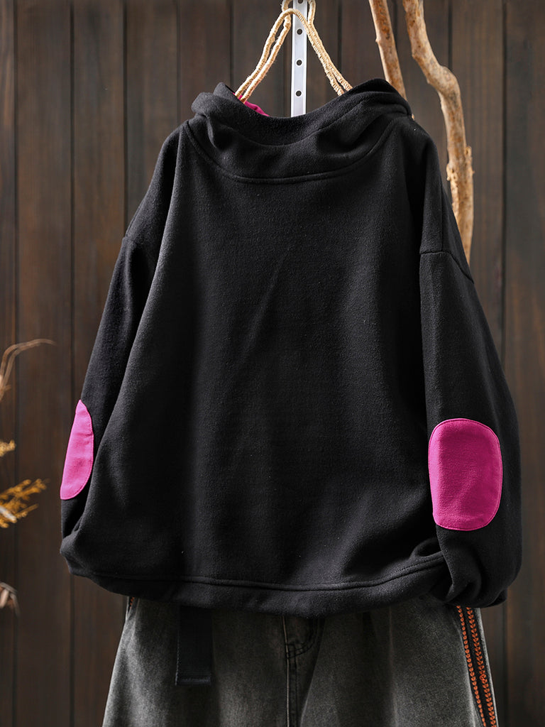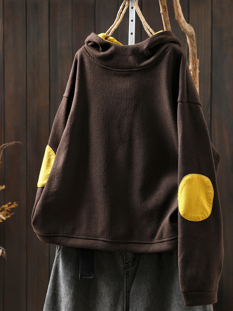Moletom feminino casual de outono com estampa de blocos de cores e forro de lã