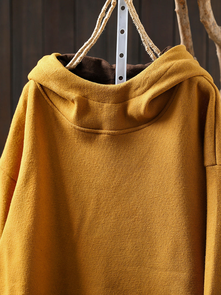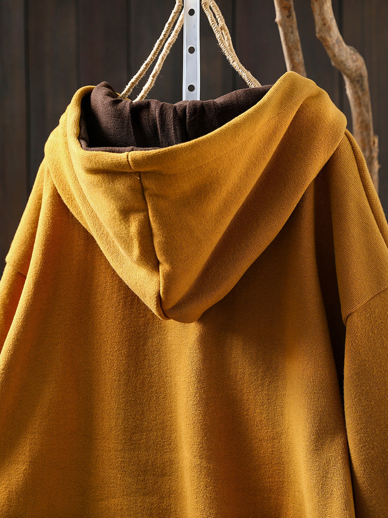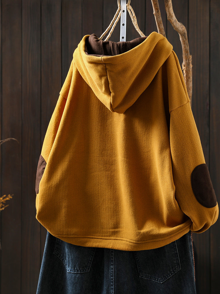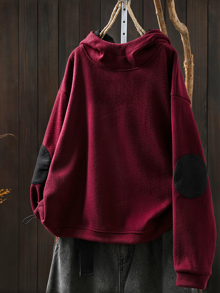 Moletom feminino casual de outono com estampa de blocos de cores e forro de lã
