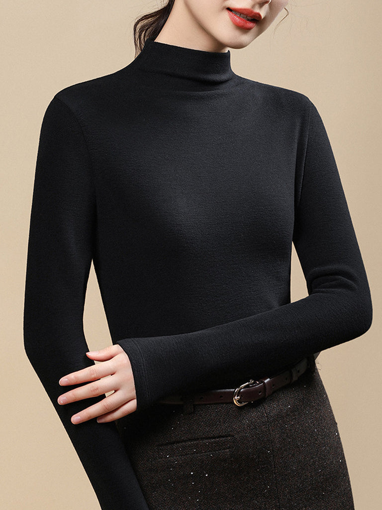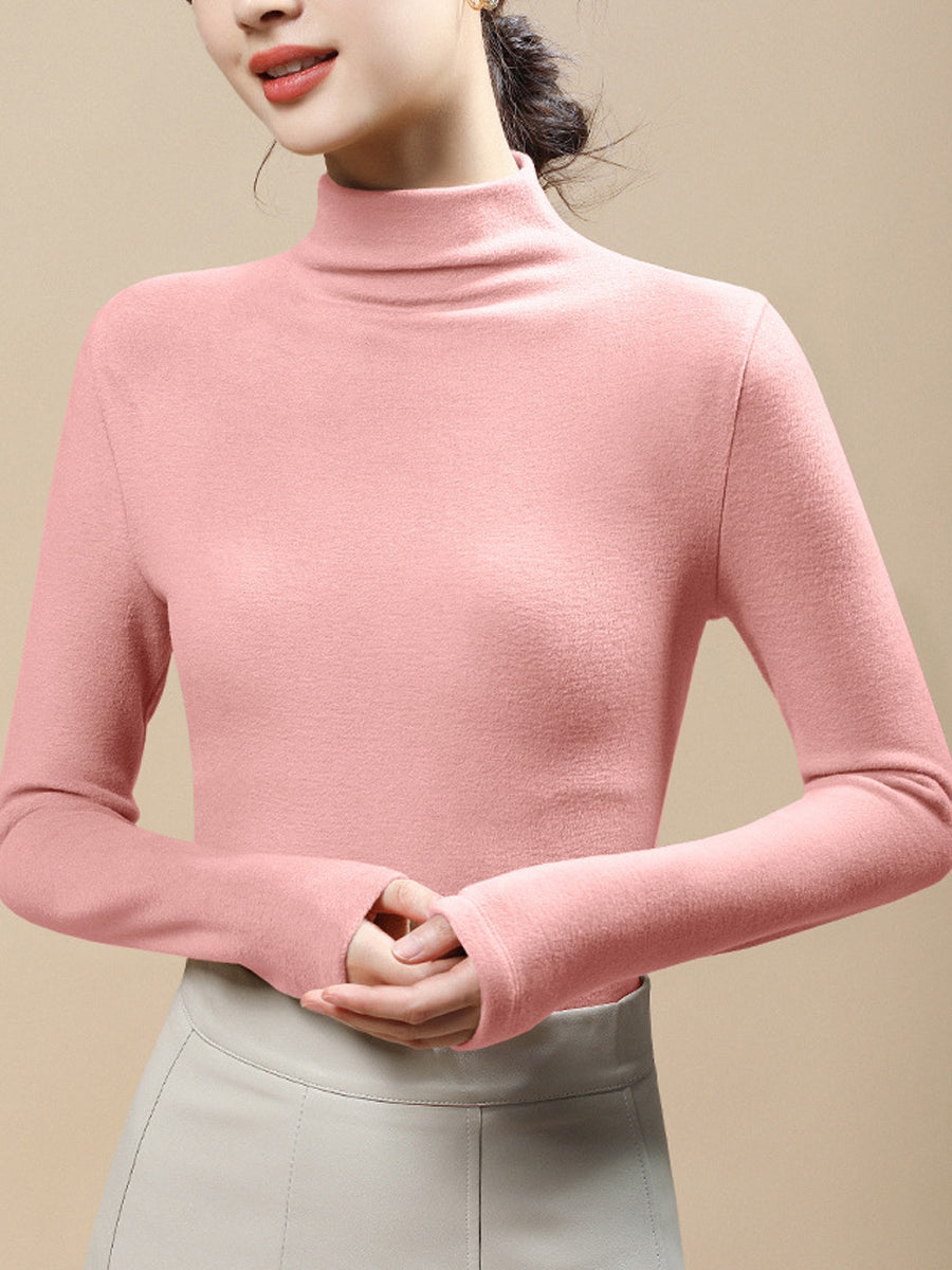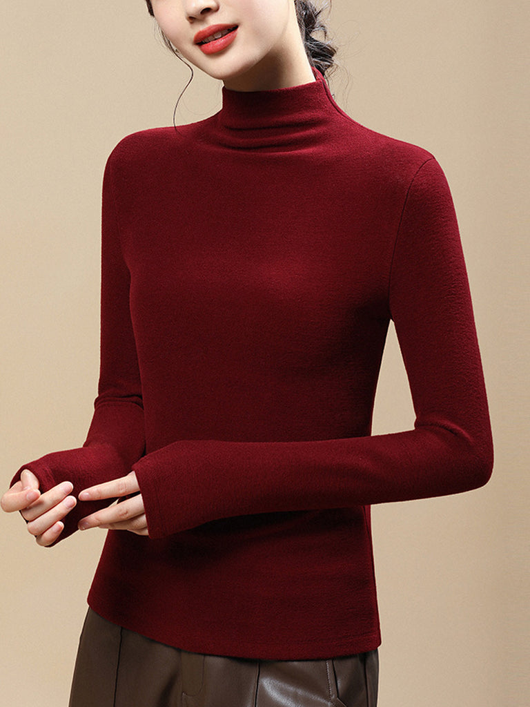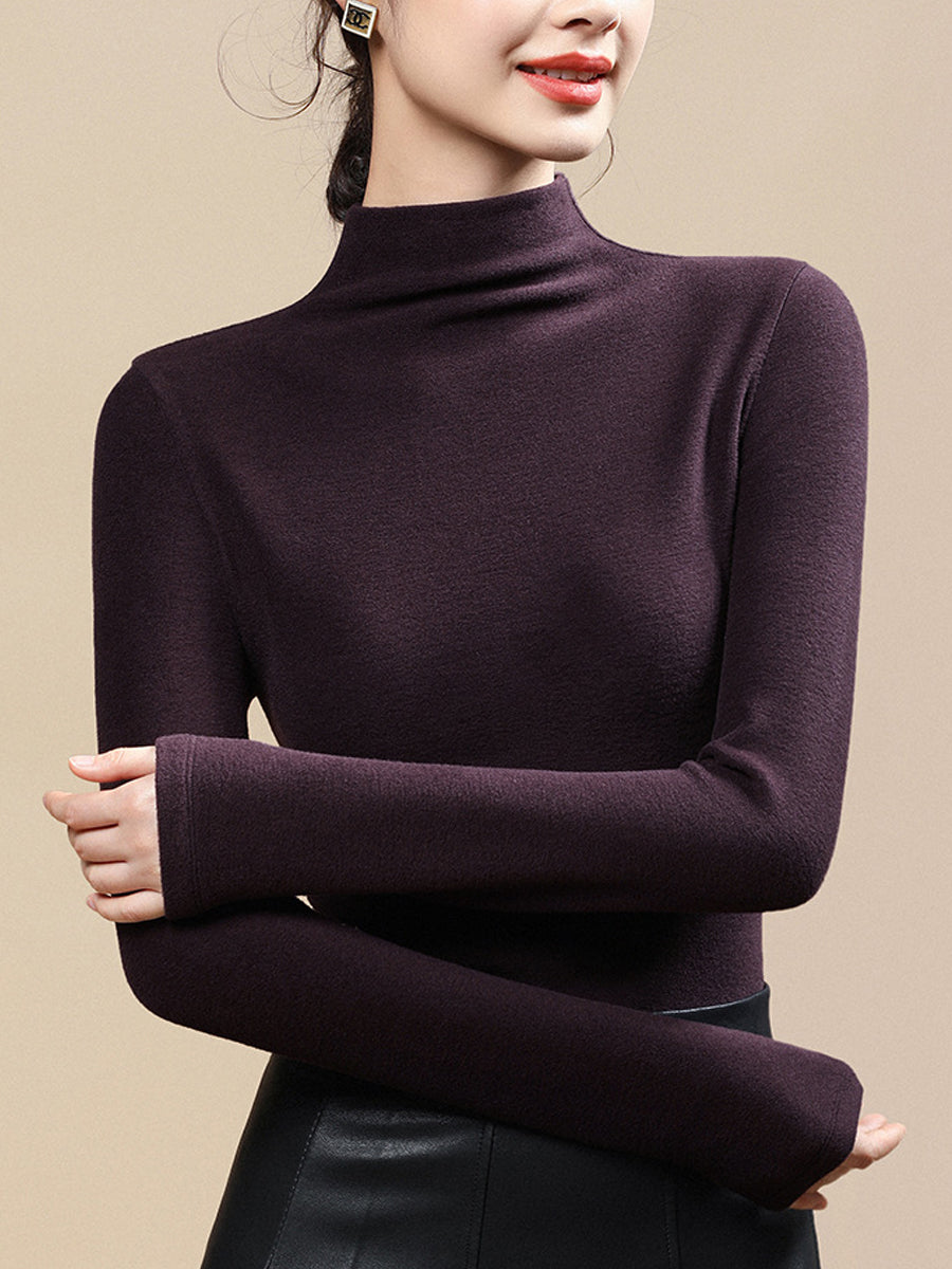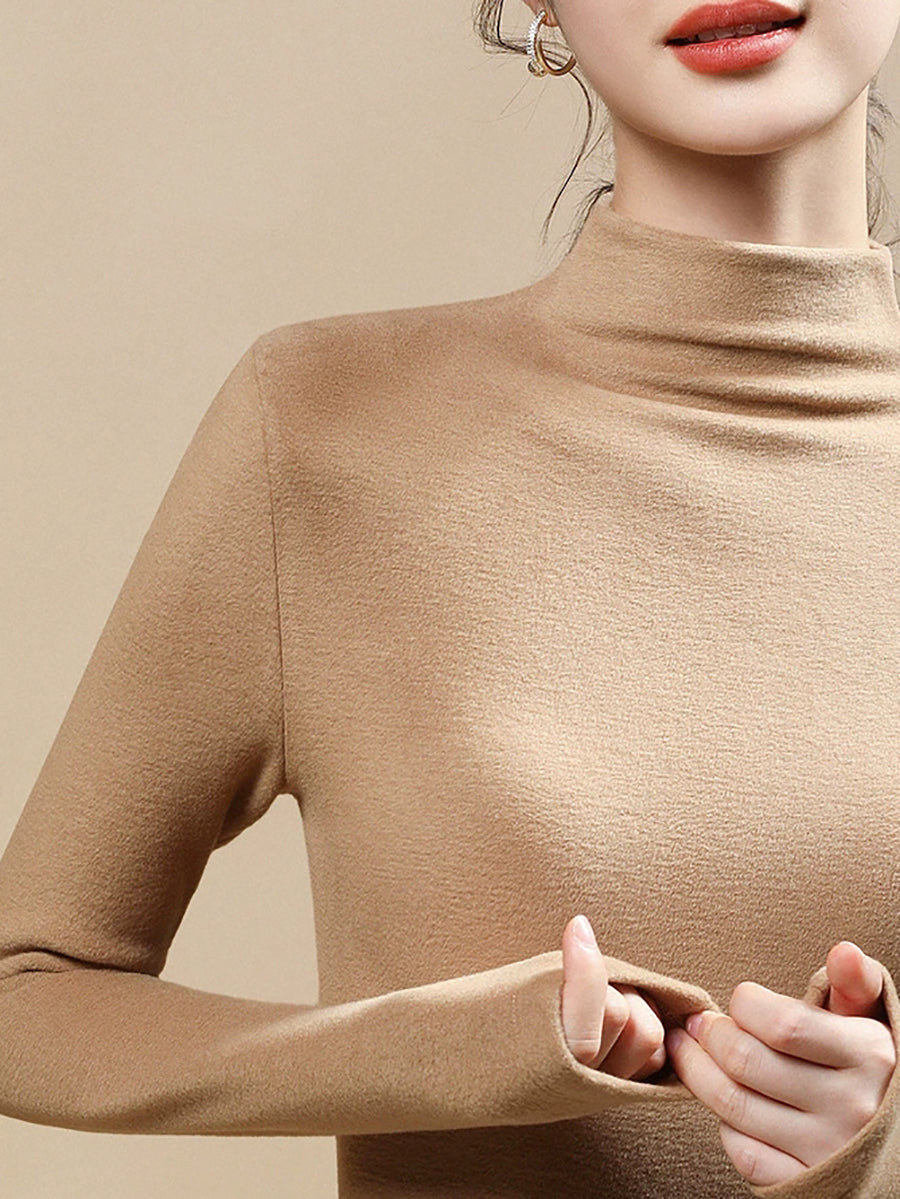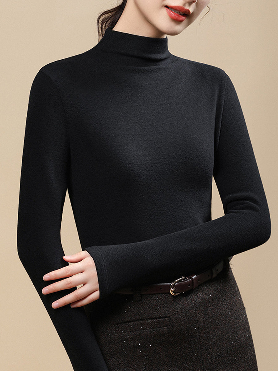 Blusa feminina casual de gola alta em cor lisa para o outono.