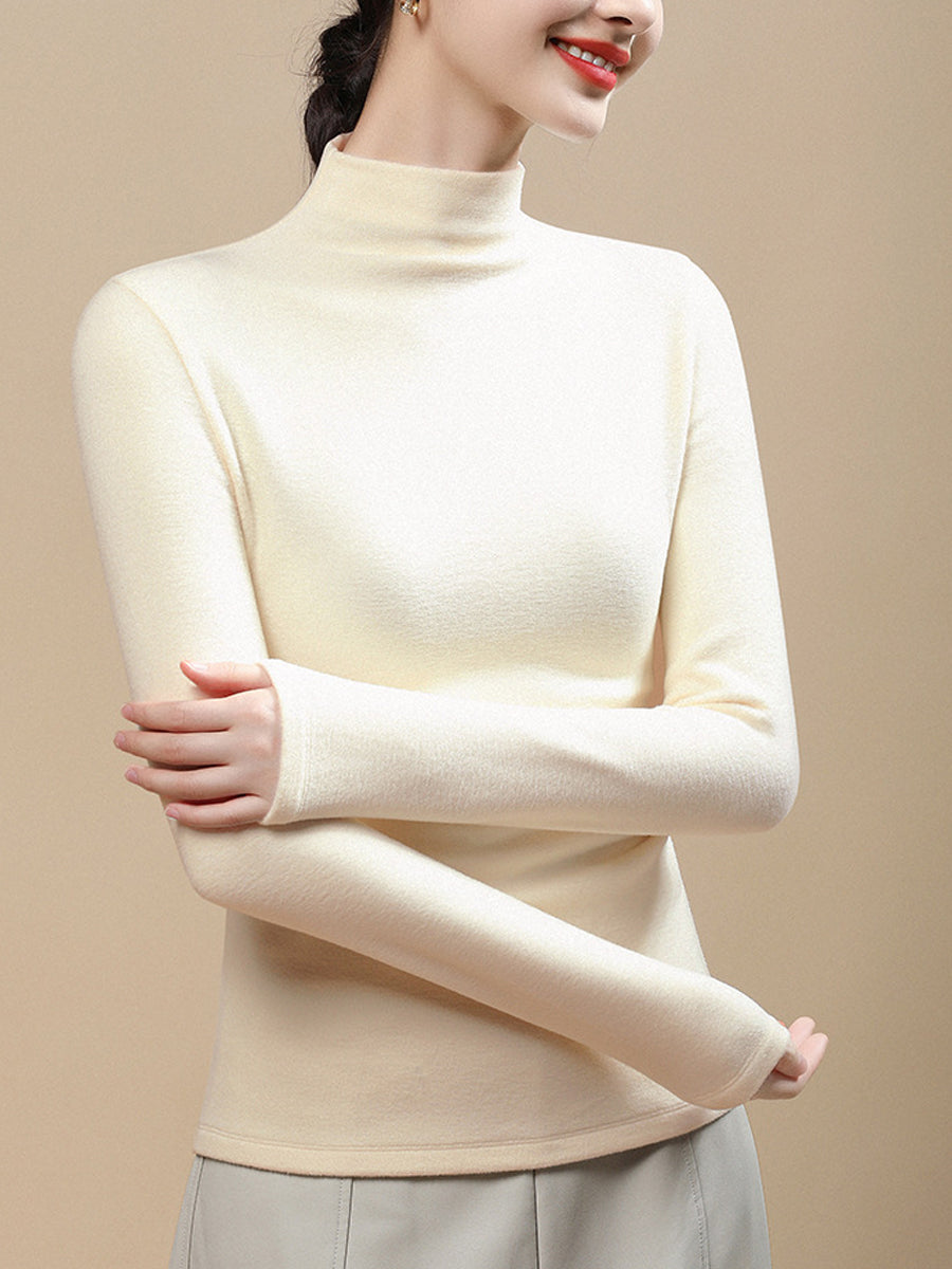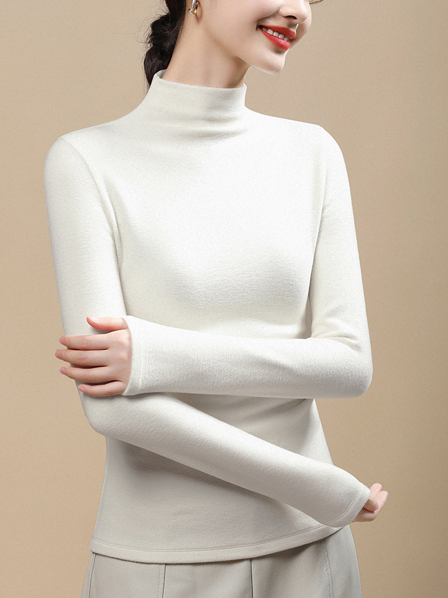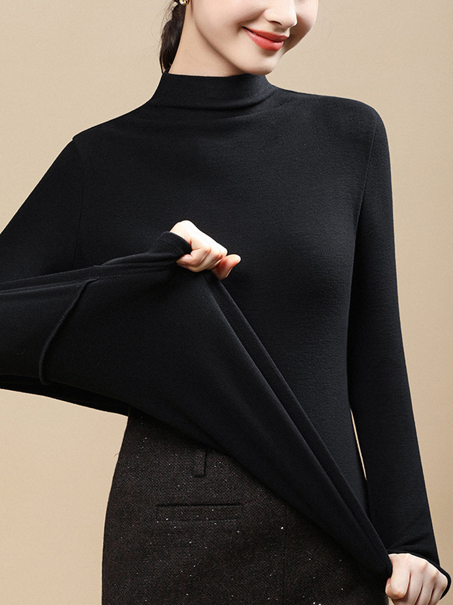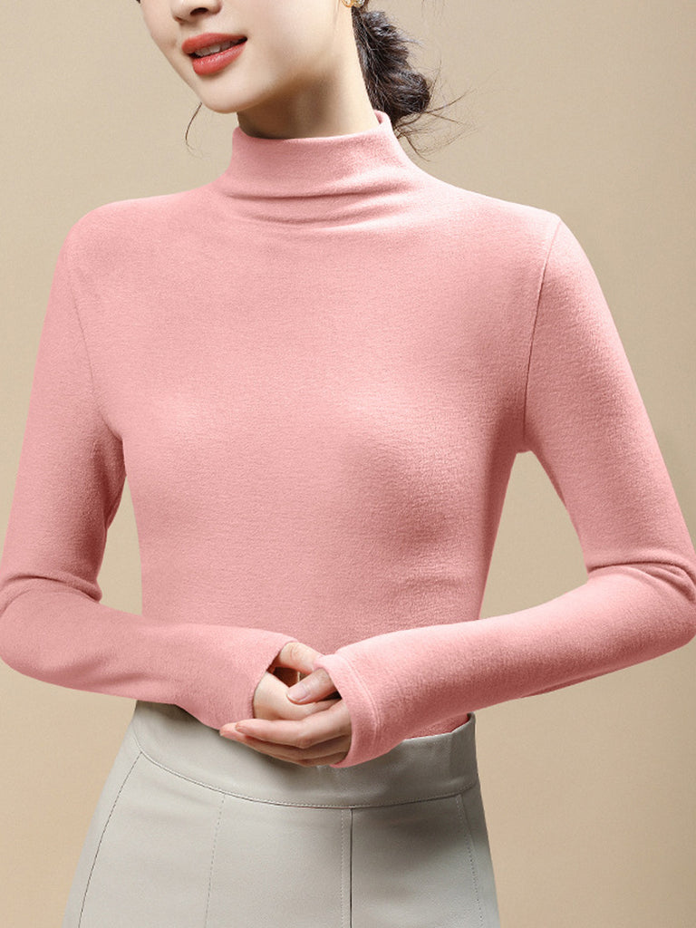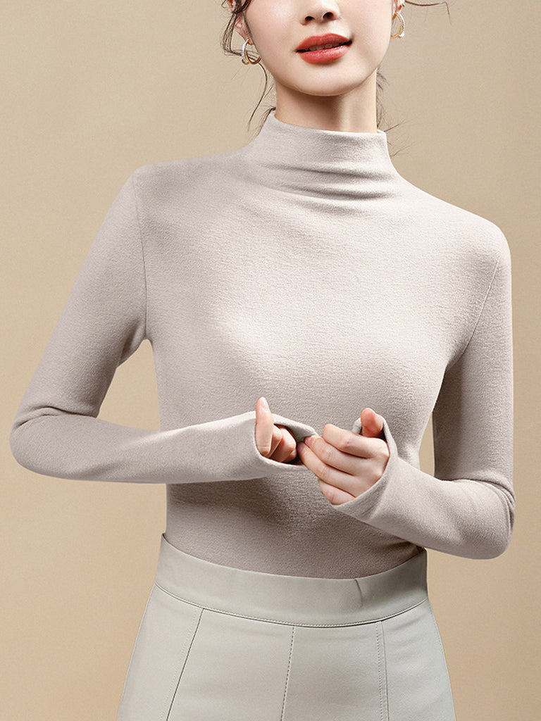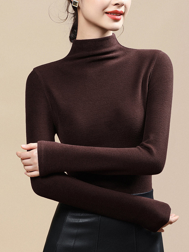 Blusa feminina casual de gola alta em cor lisa para o outono.
