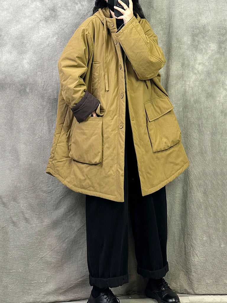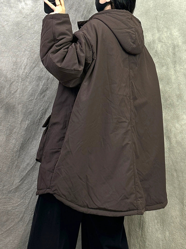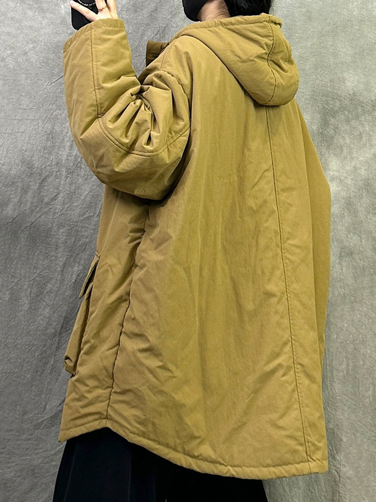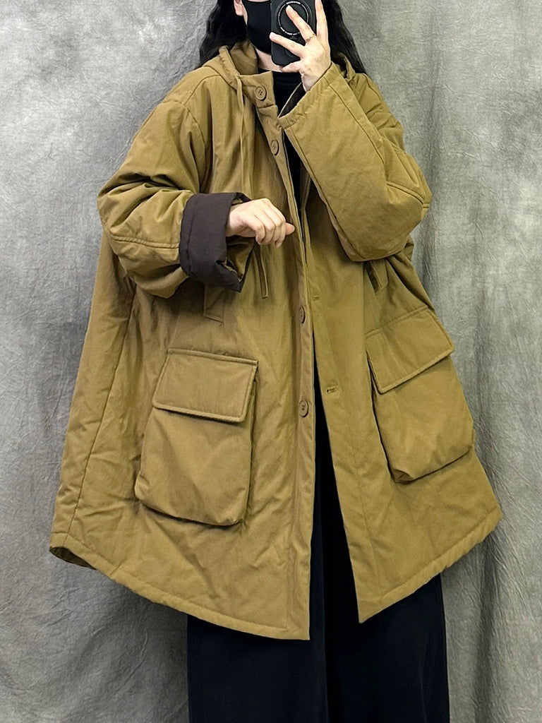 Casaco acolchoado com capuz feminino casual de cor lisa para o inverno