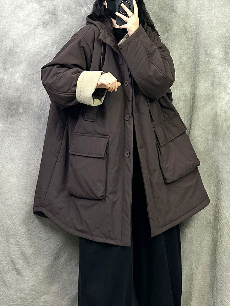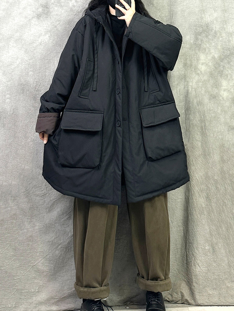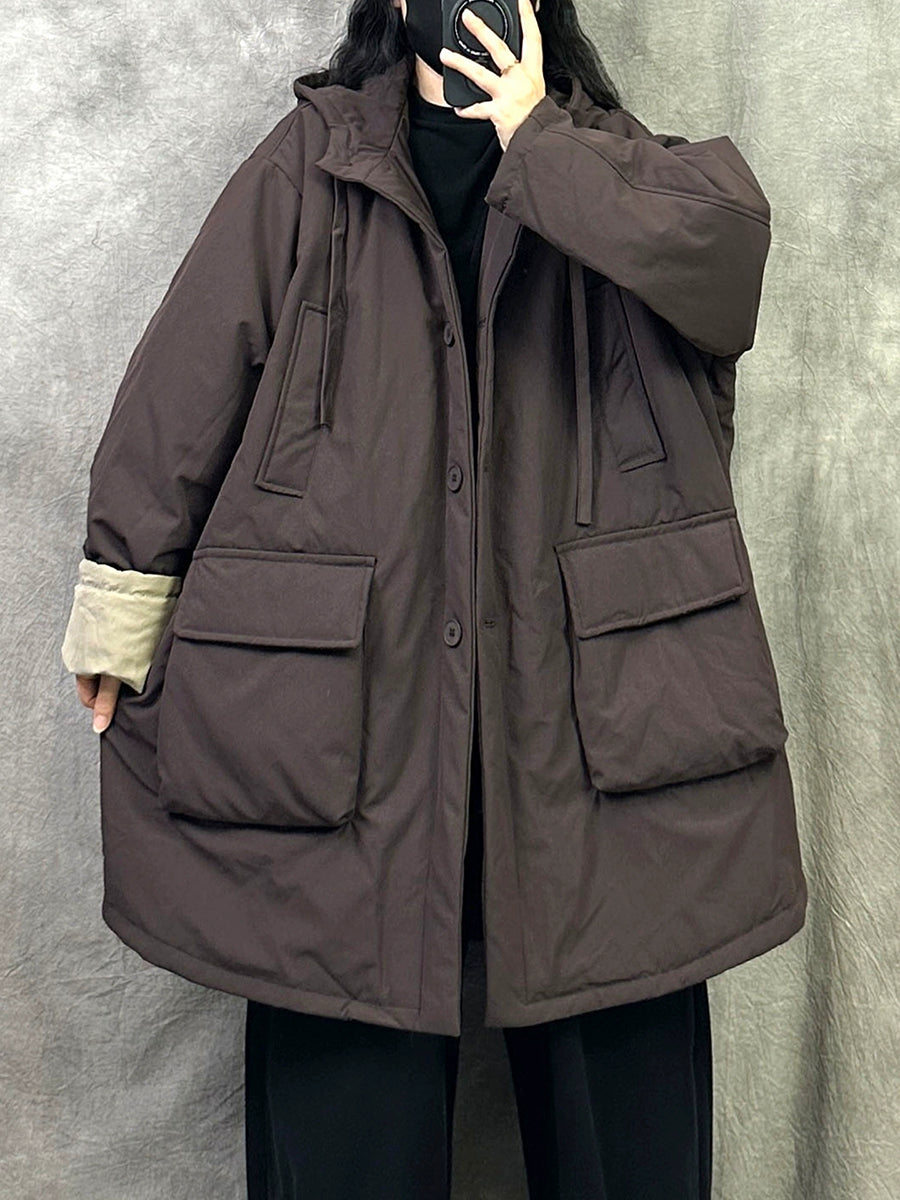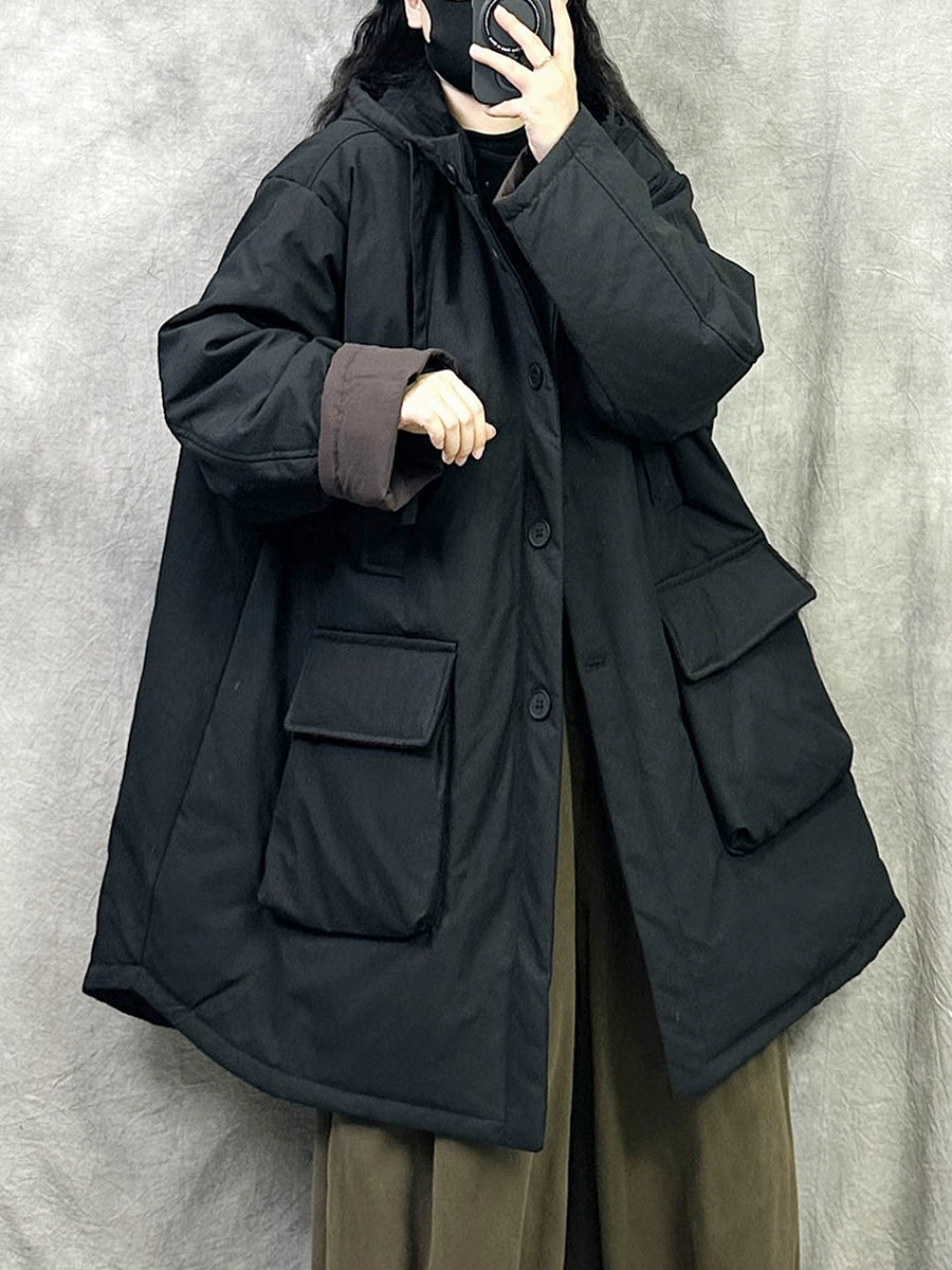 Casaco acolchoado com capuz feminino casual de cor lisa para o inverno