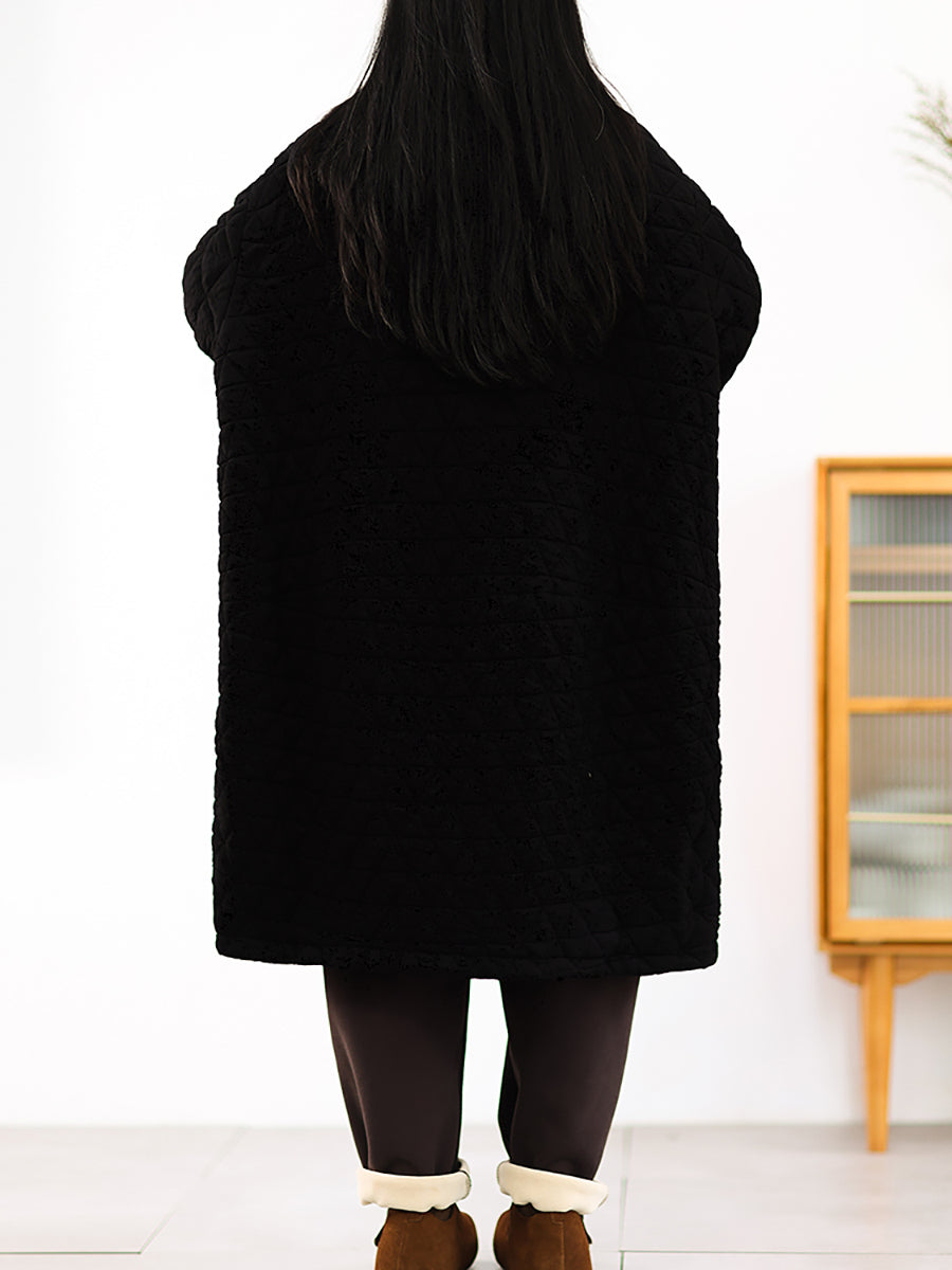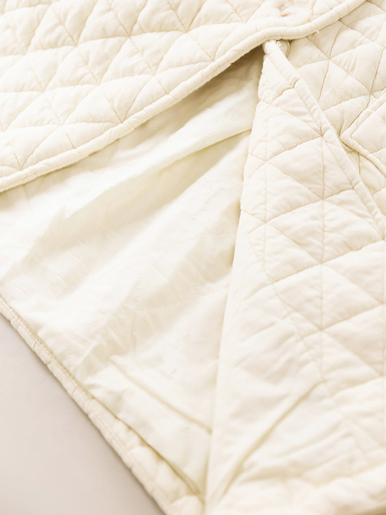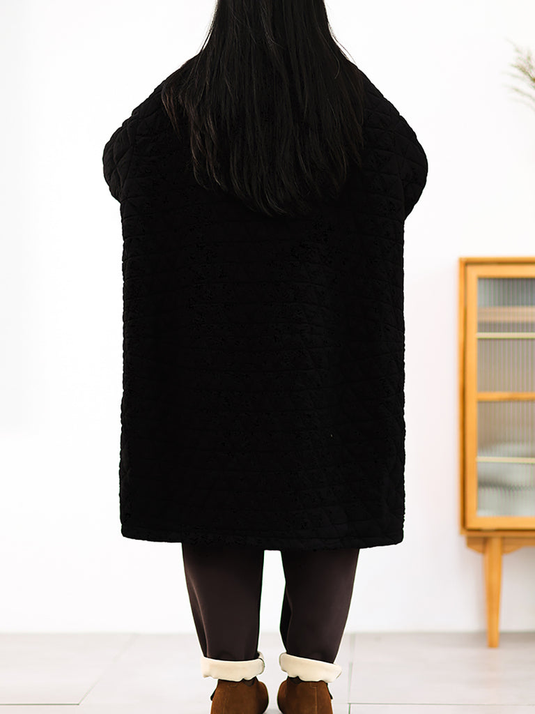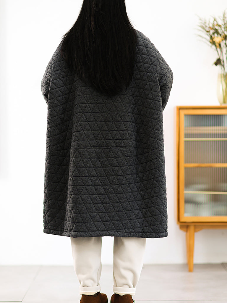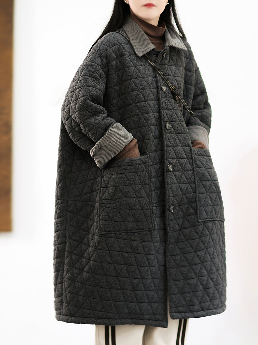 Casaco longo acolchoado feminino de inverno, cor lisa, com gola dobrável.