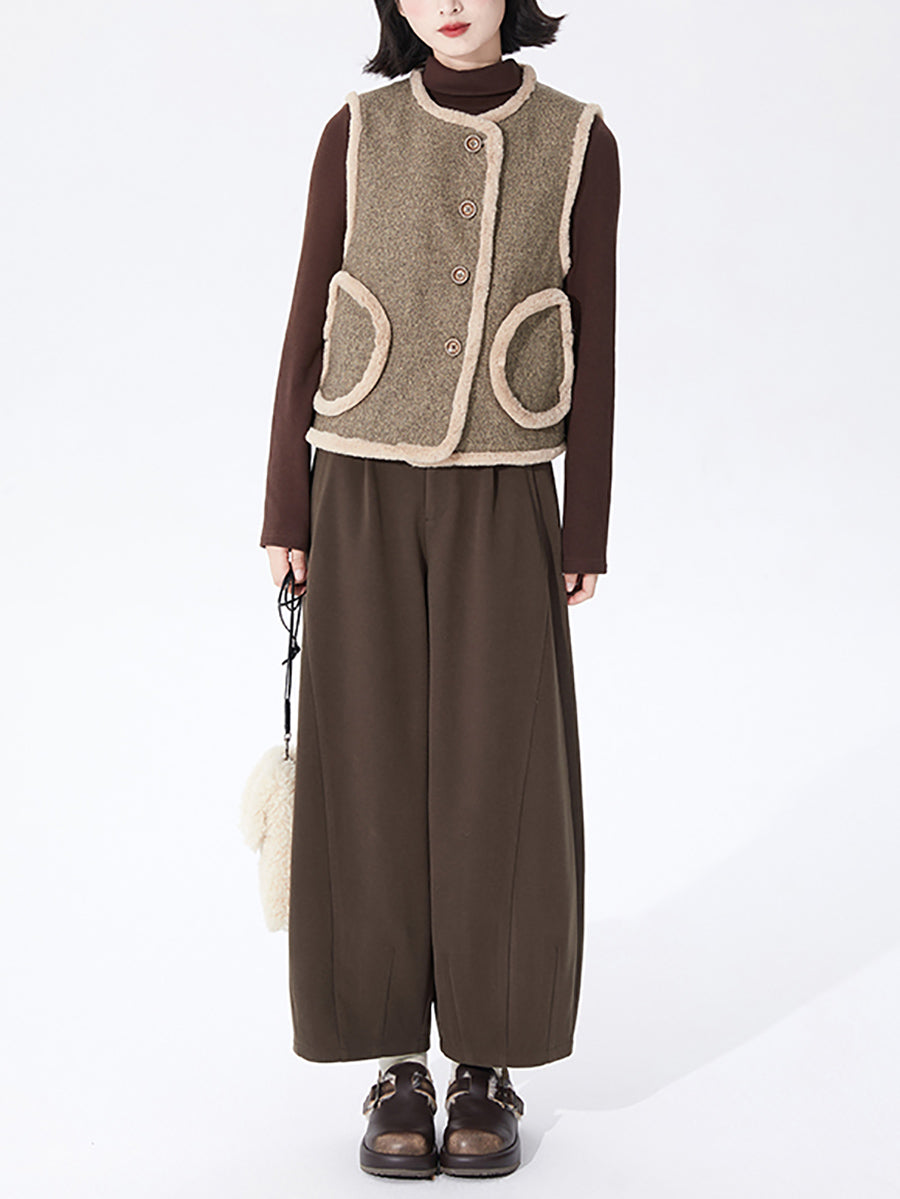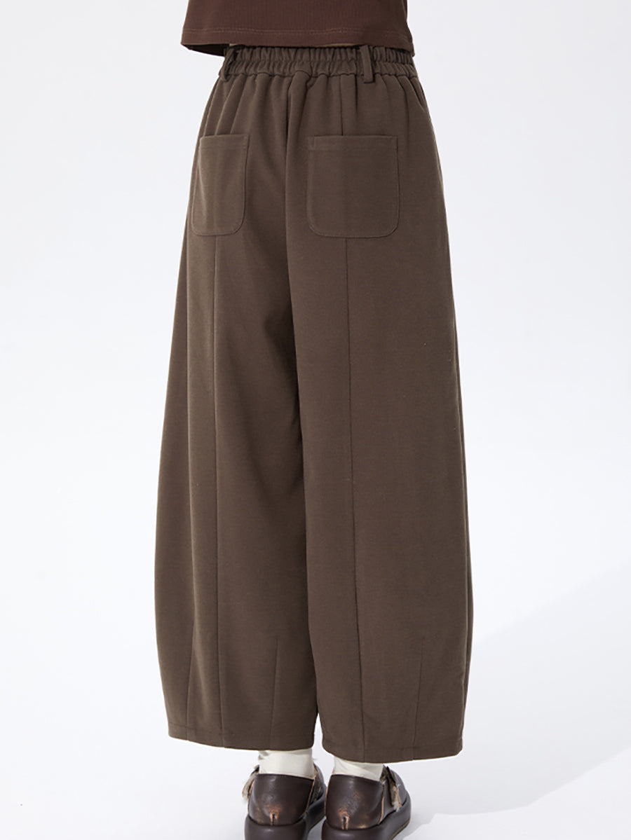 Calça feminina casual de inverno, cor lisa, pernas largas