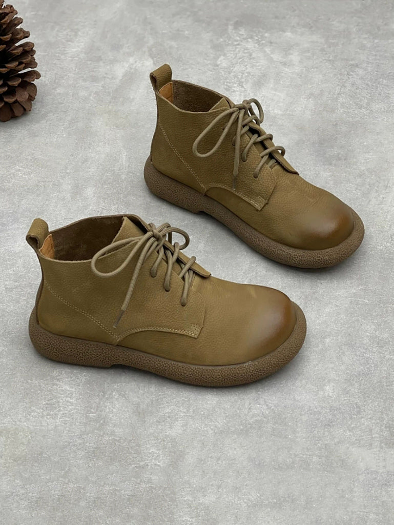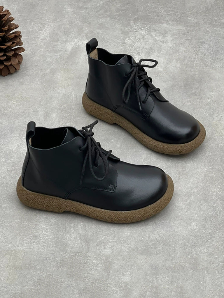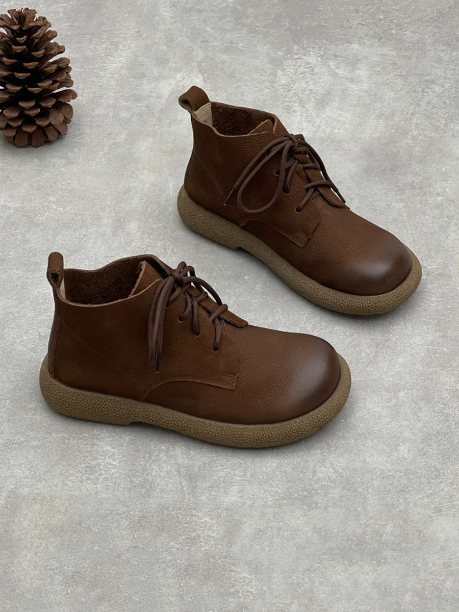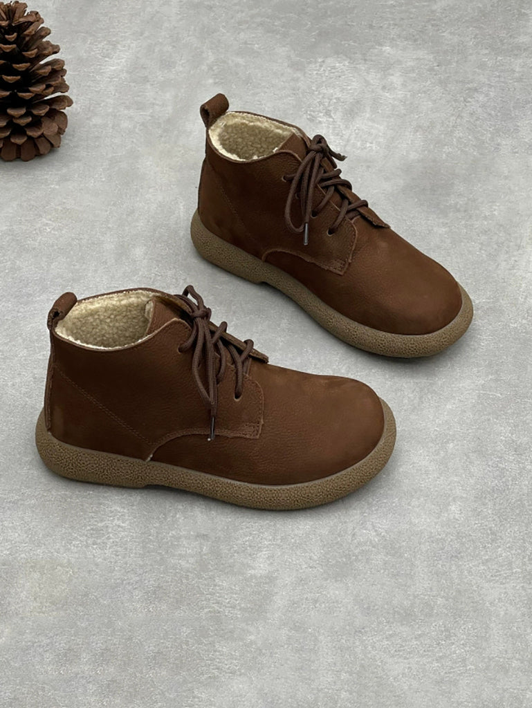 Botas de cano curto femininas de inverno em couro legítimo com forro de lã