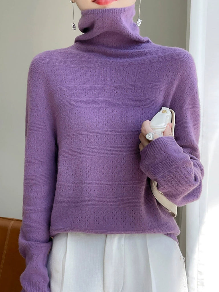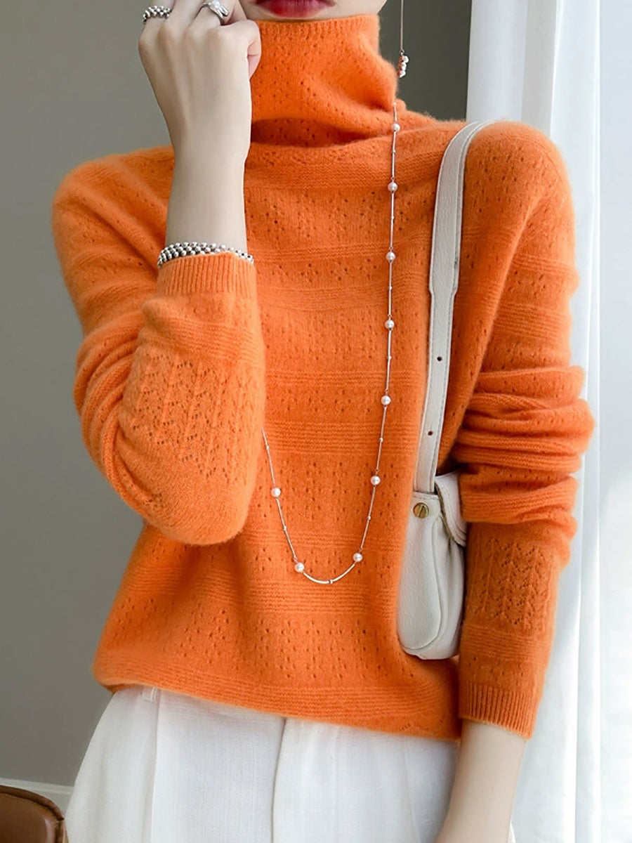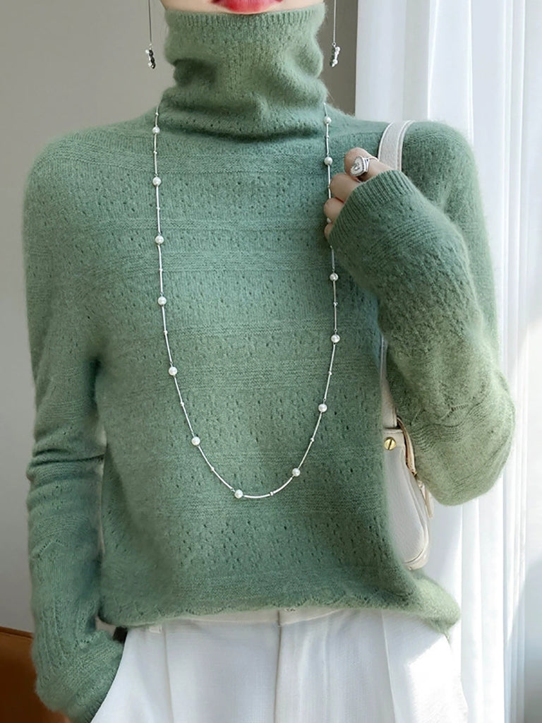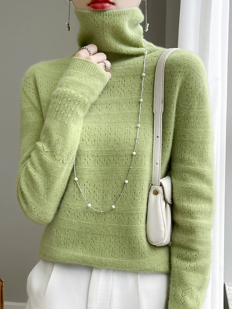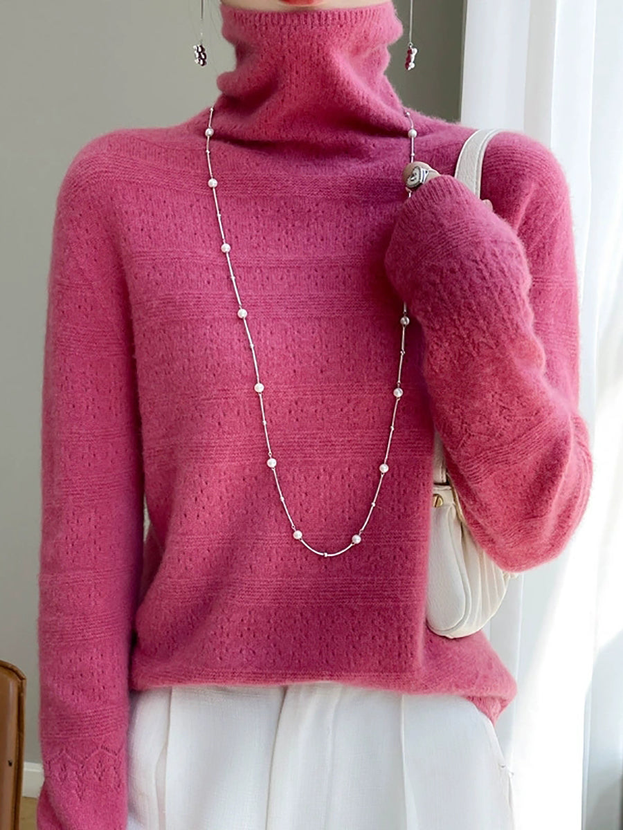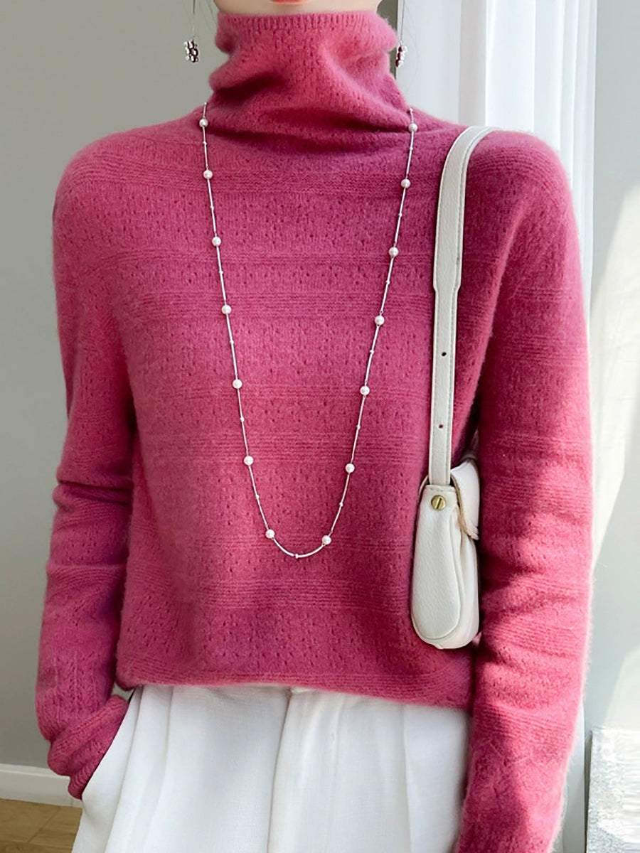 Suéter feminino de gola alta em lã de cor pura para o outono