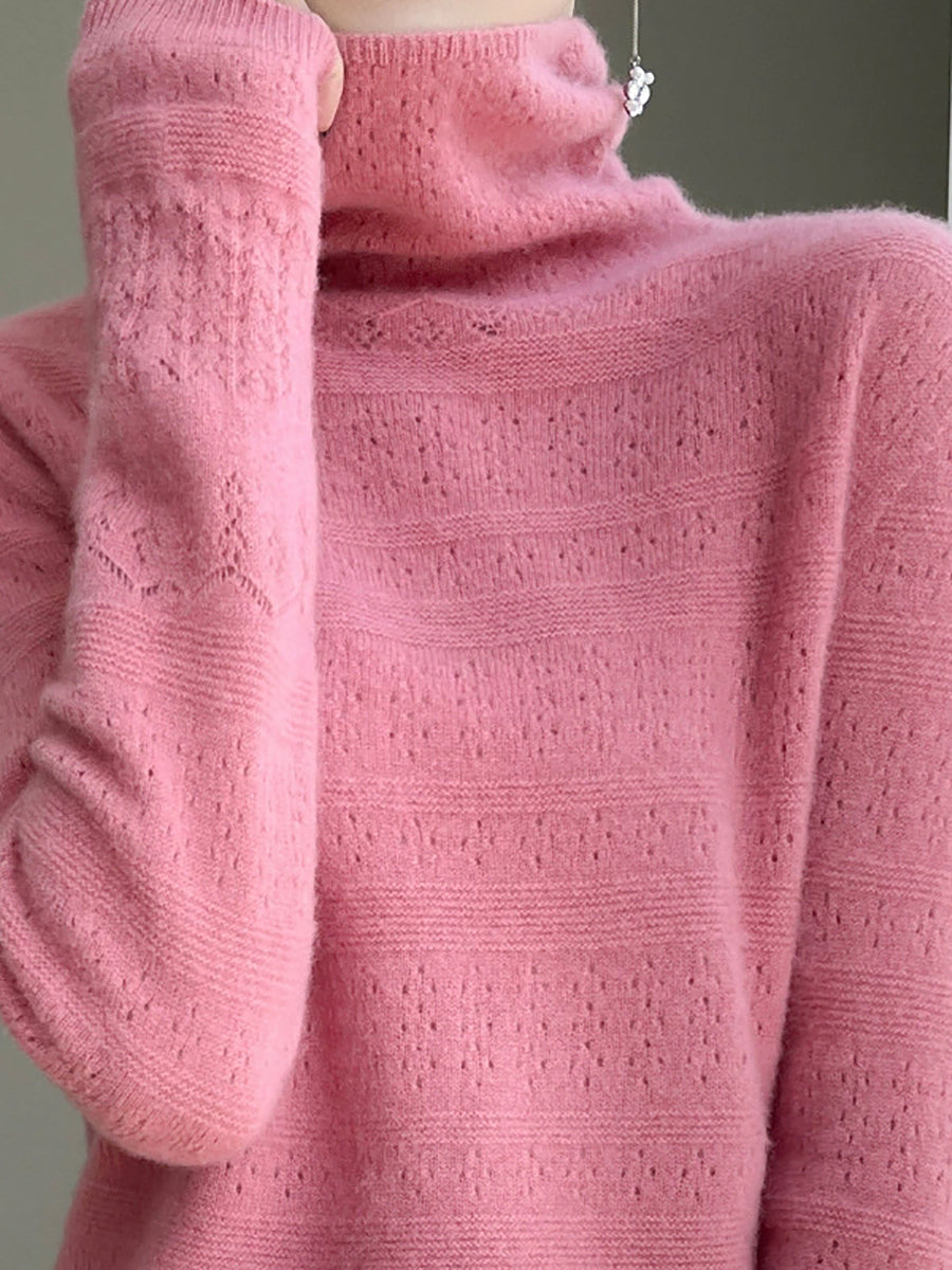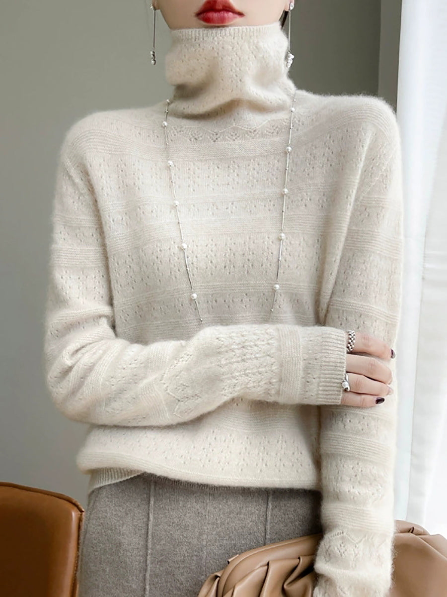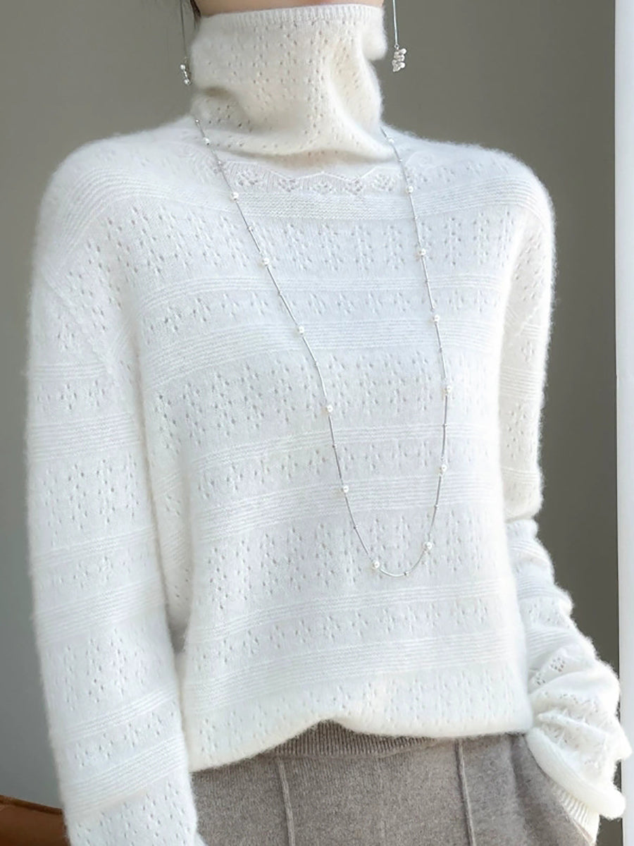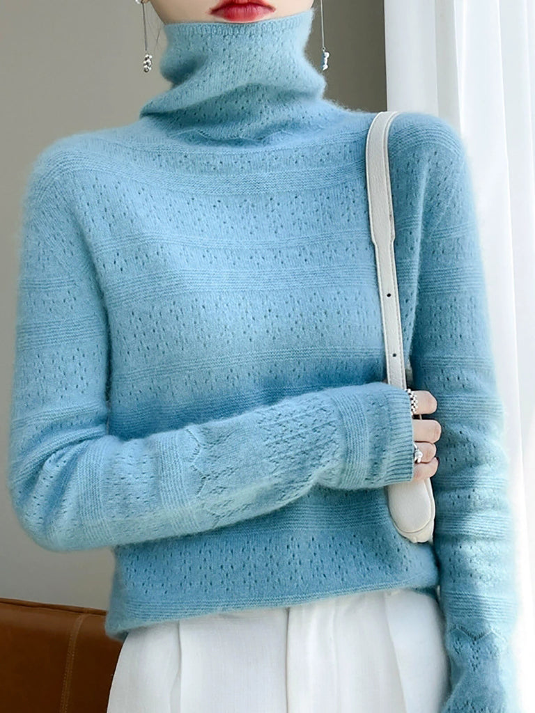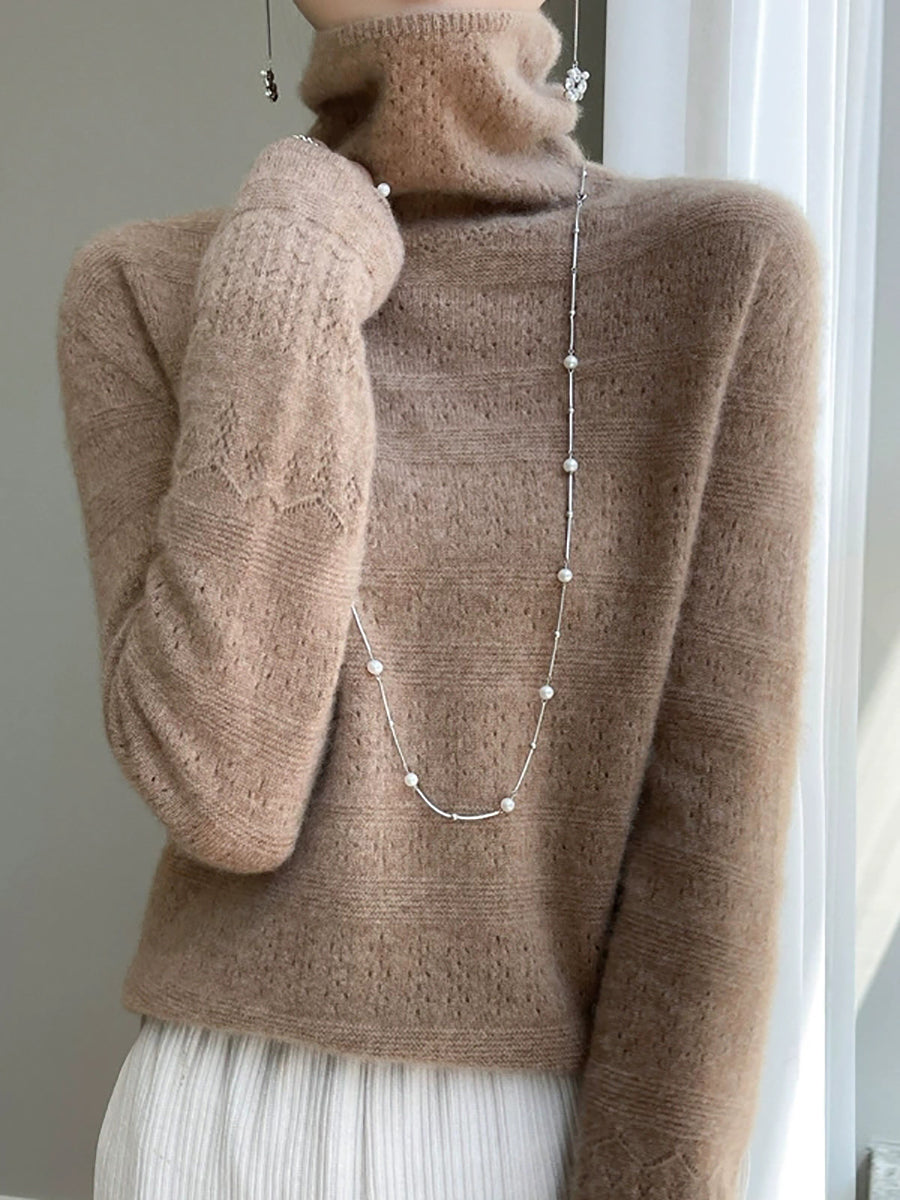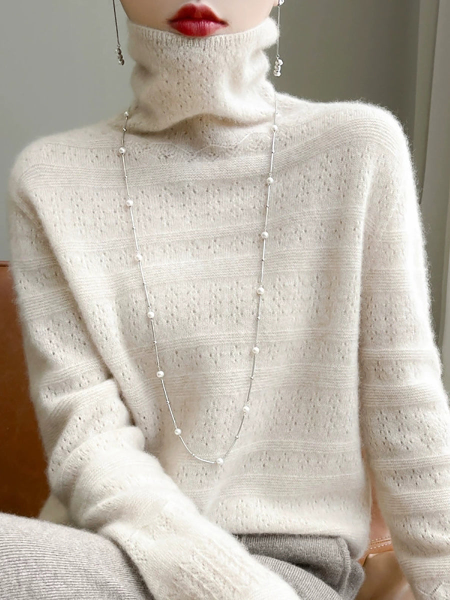 Suéter feminino de gola alta em lã de cor pura para o outono