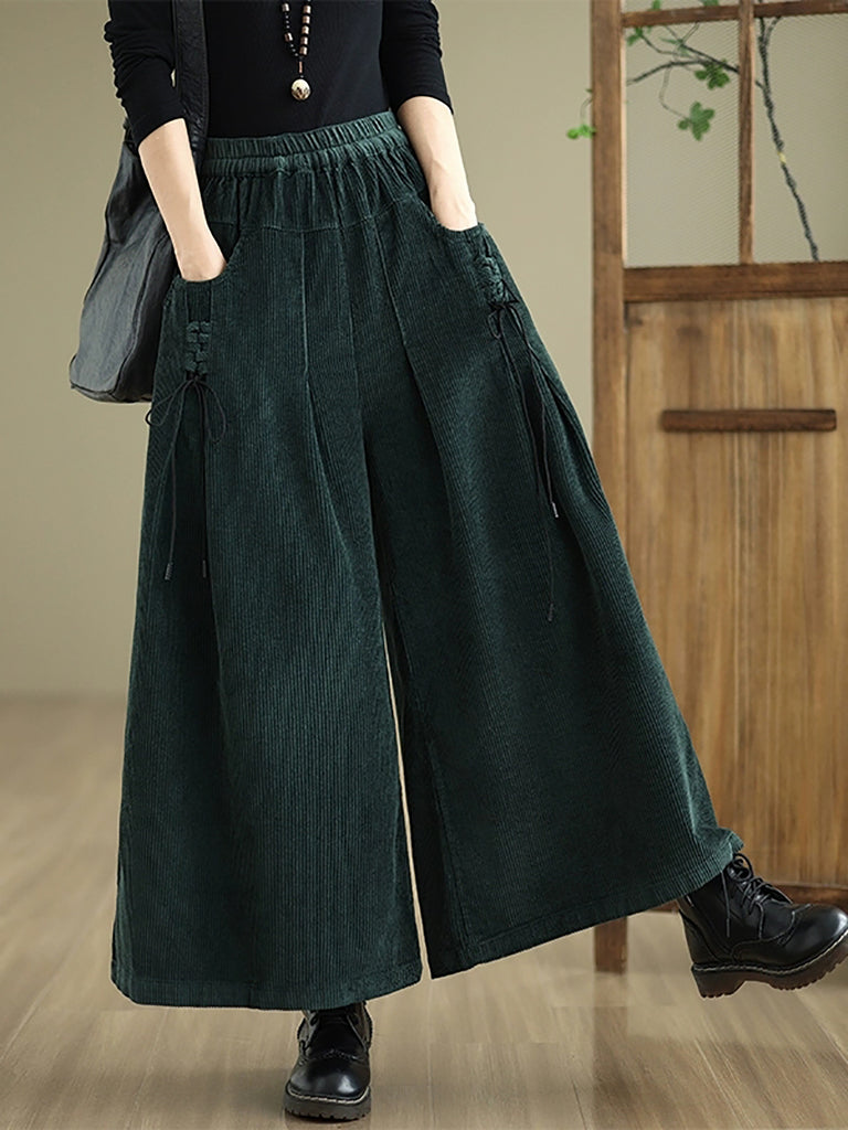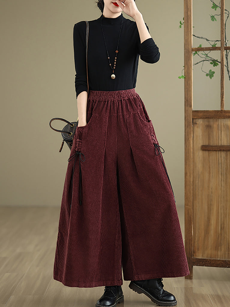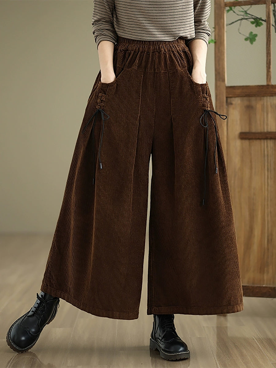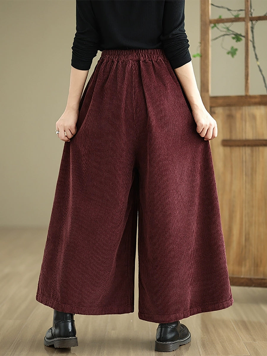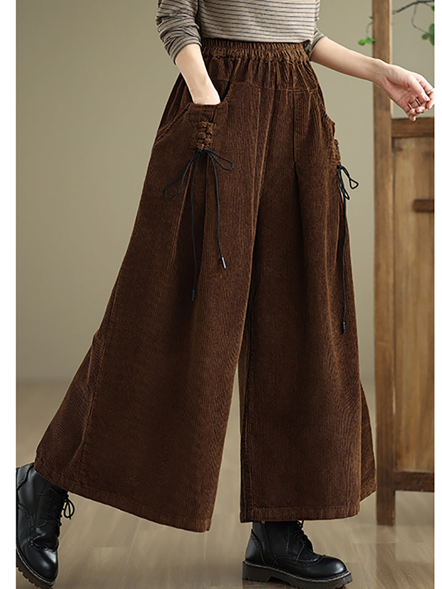 Calça feminina de veludo cotelê retrô de pernas largas para o outono