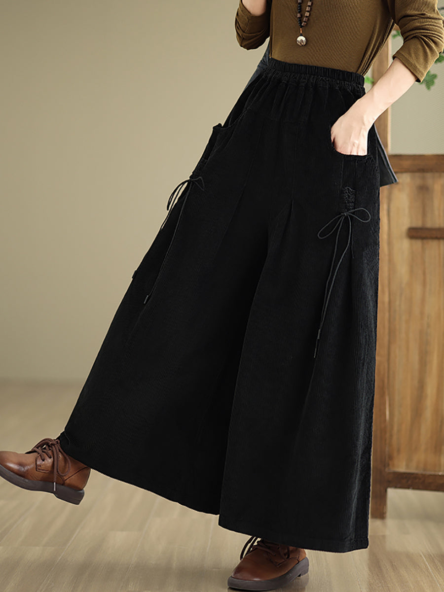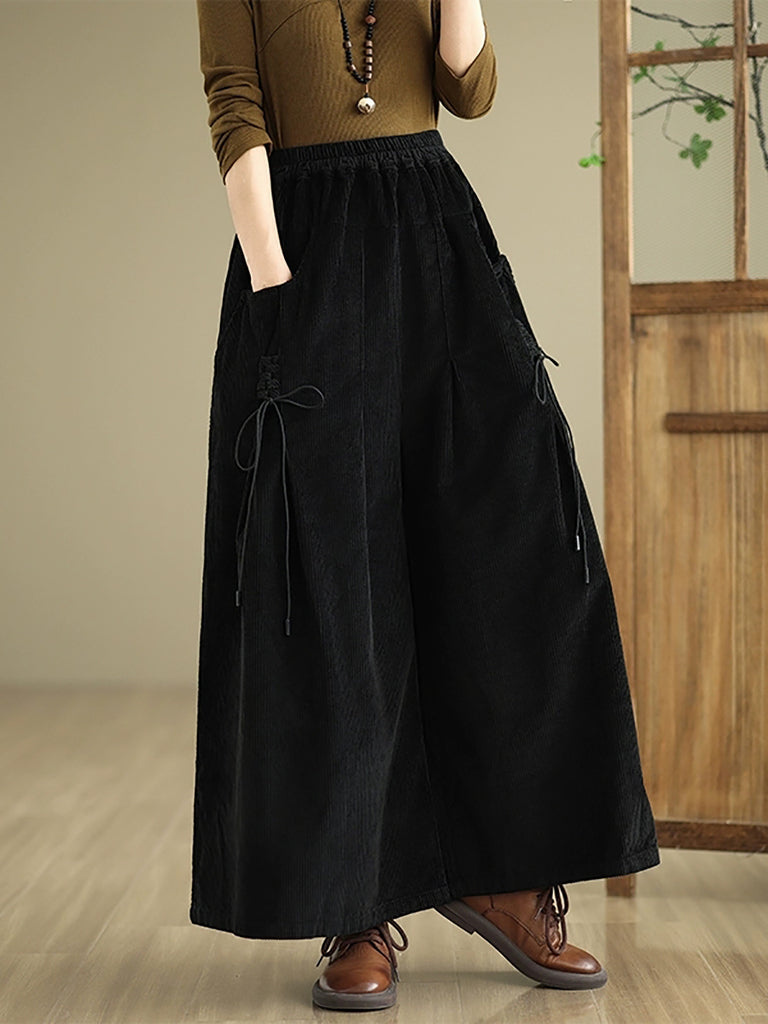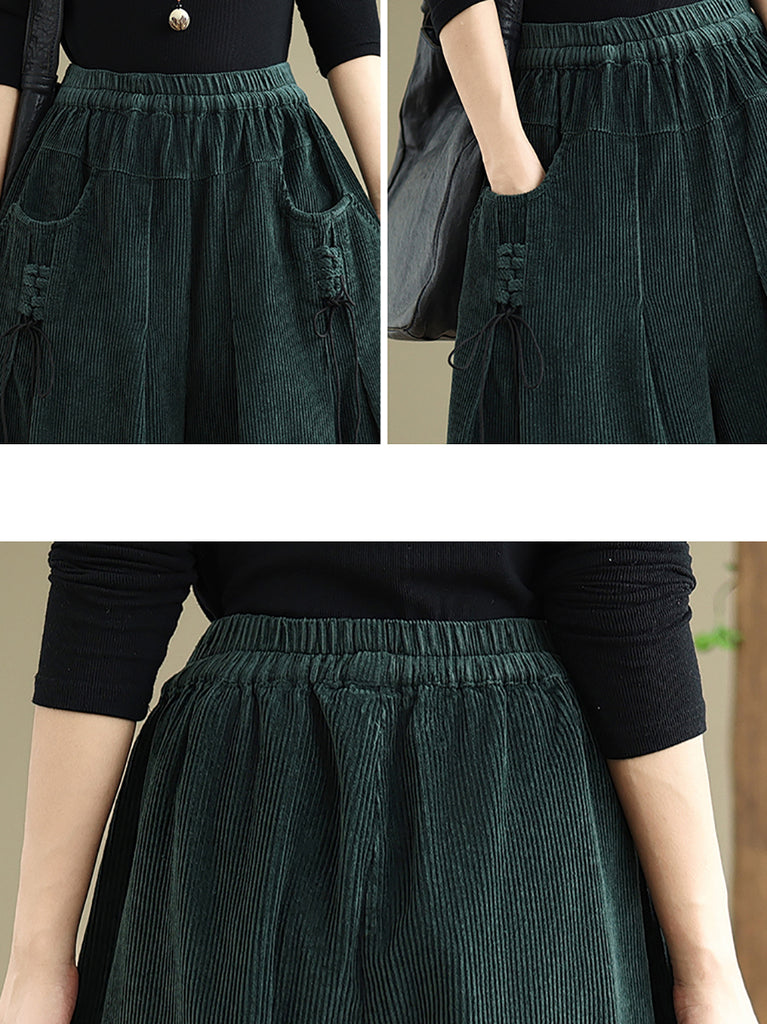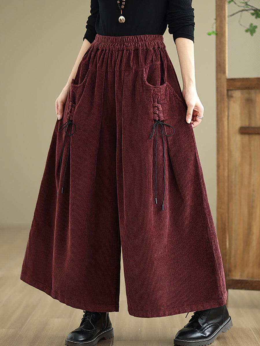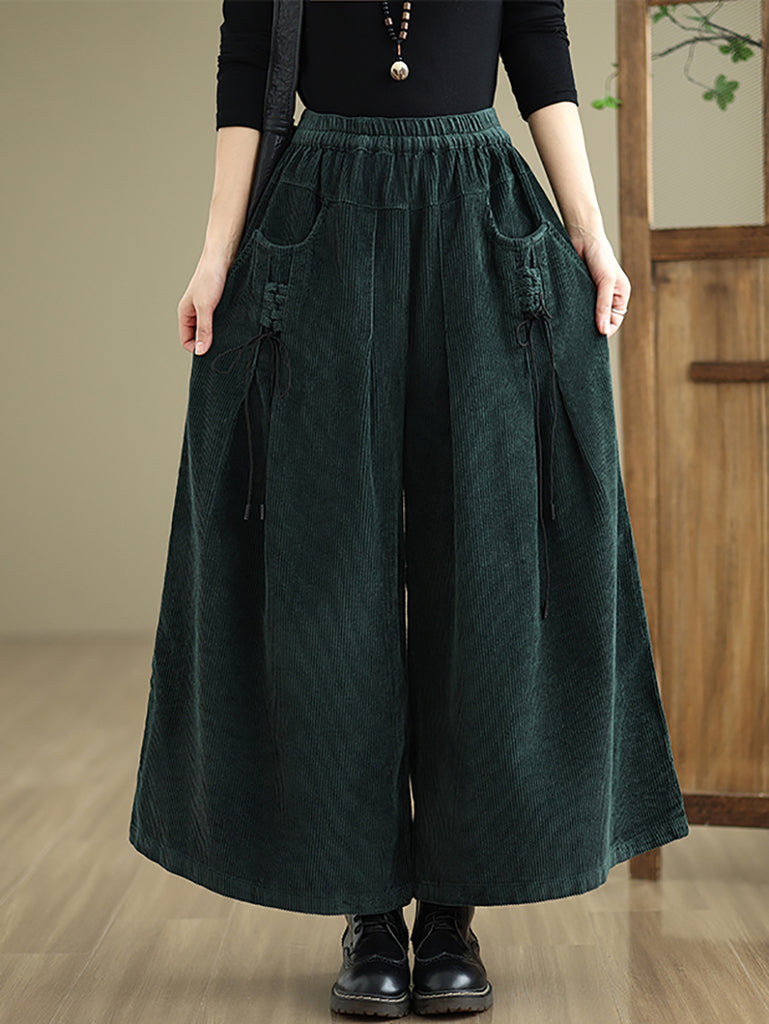 Calça feminina de veludo cotelê retrô de pernas largas para o outono