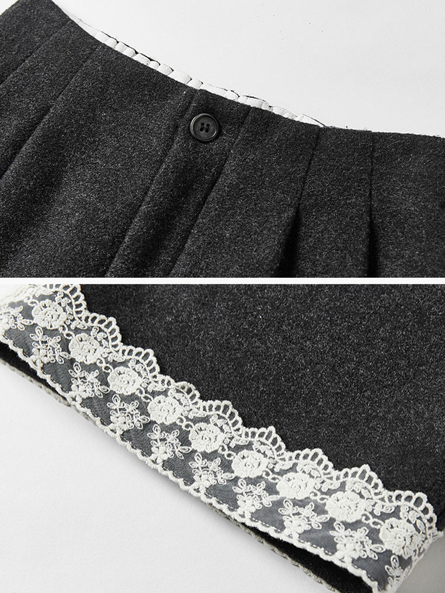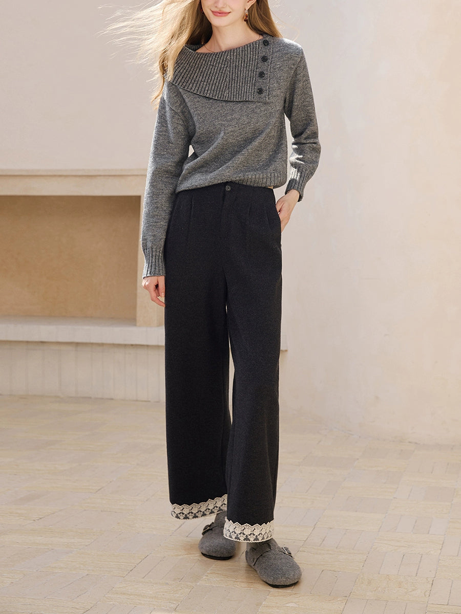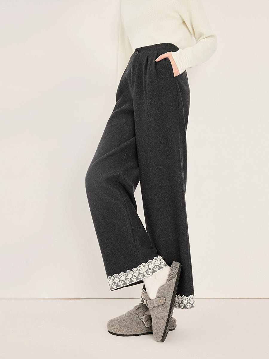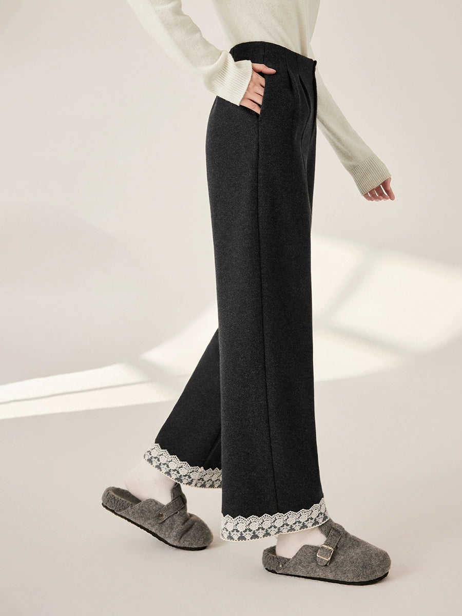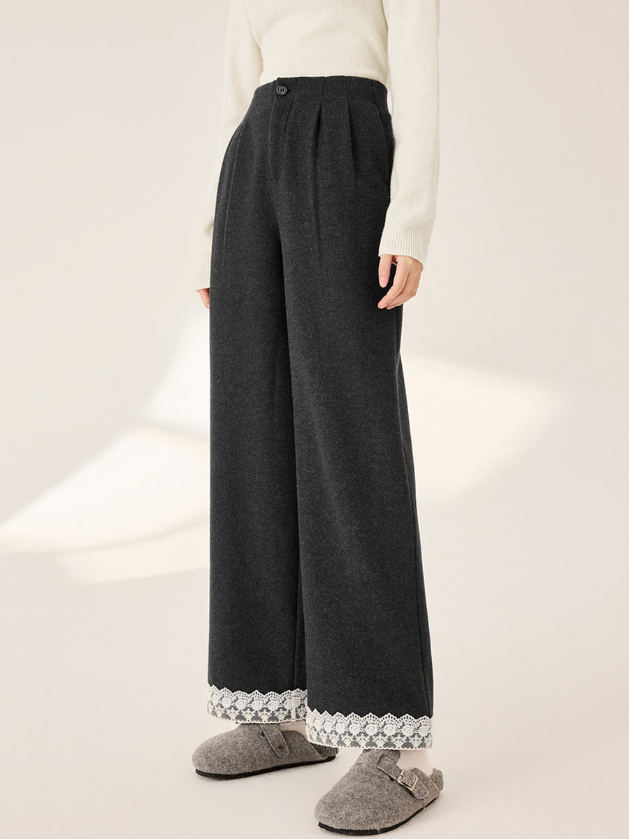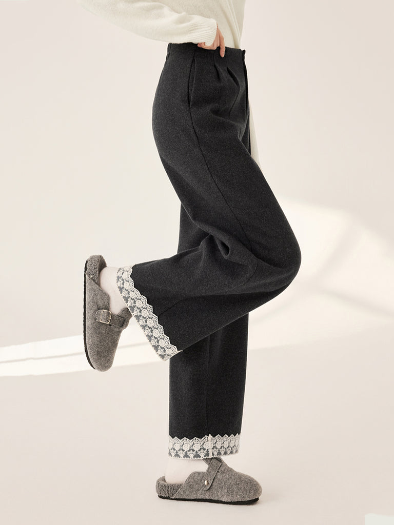 Calça reta feminina retrô de outono com detalhes em renda