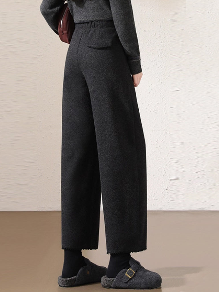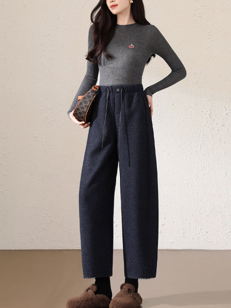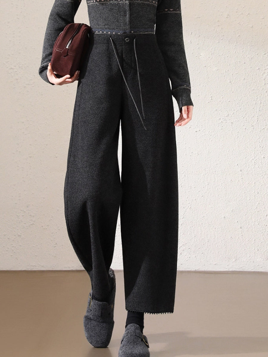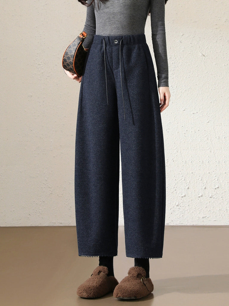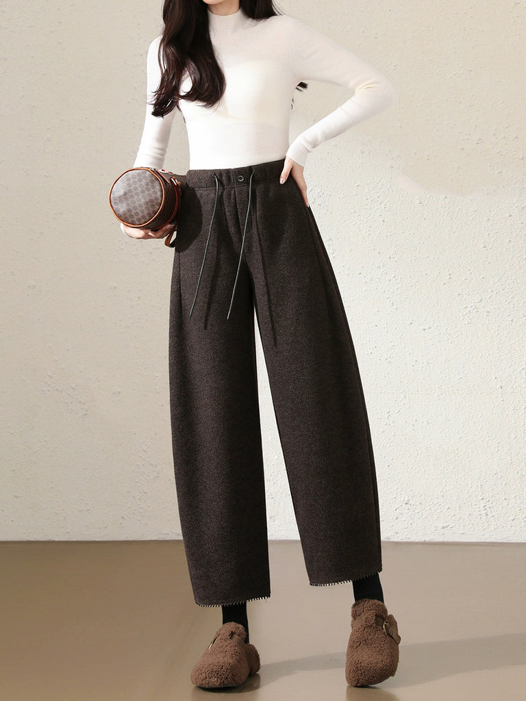 Calça Harem Feminina Casual de Outono em Cor Lisa e Grossa