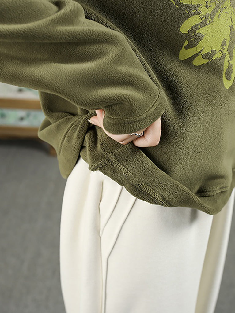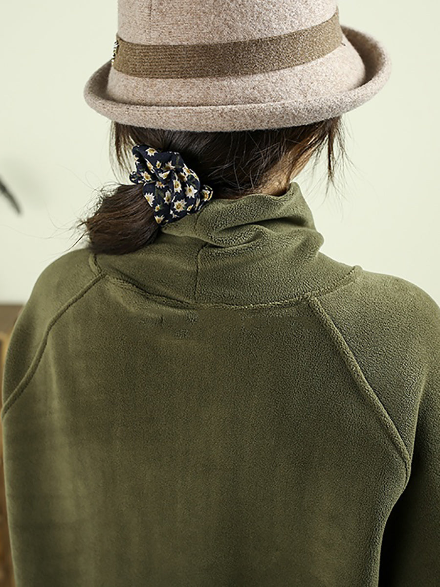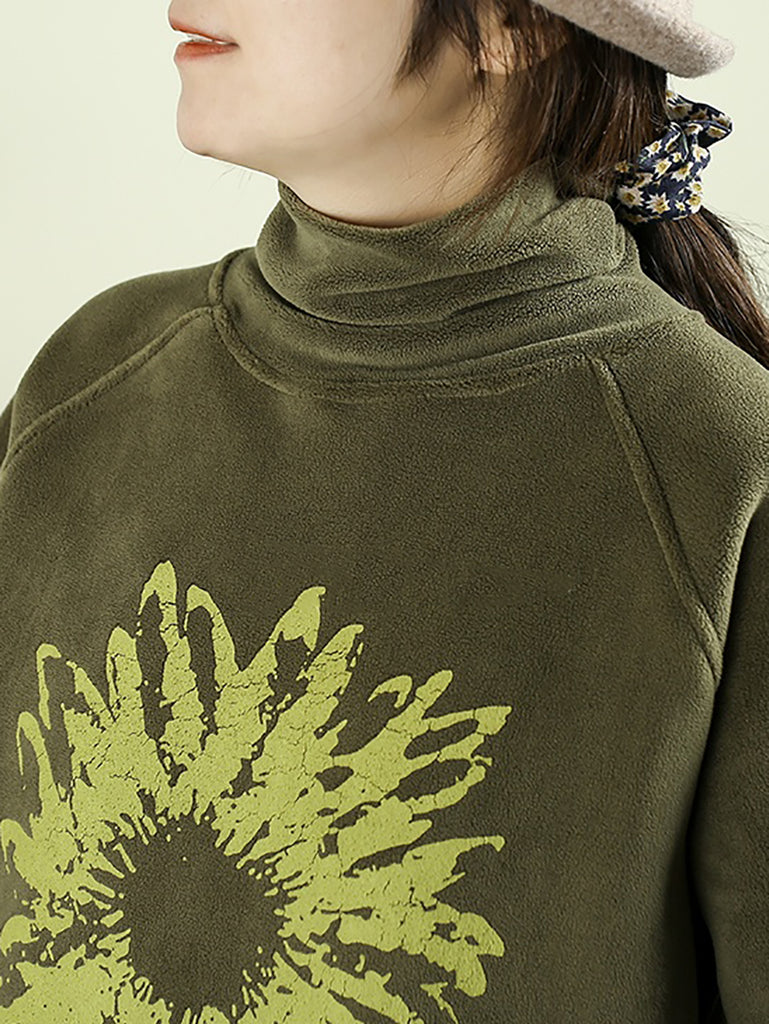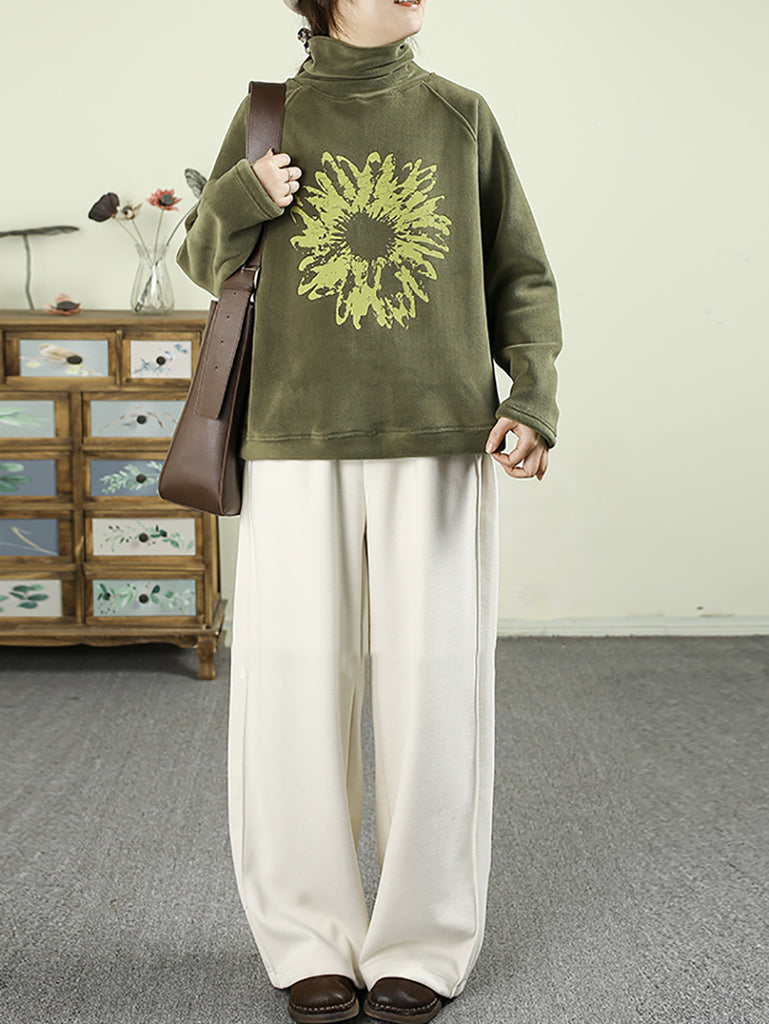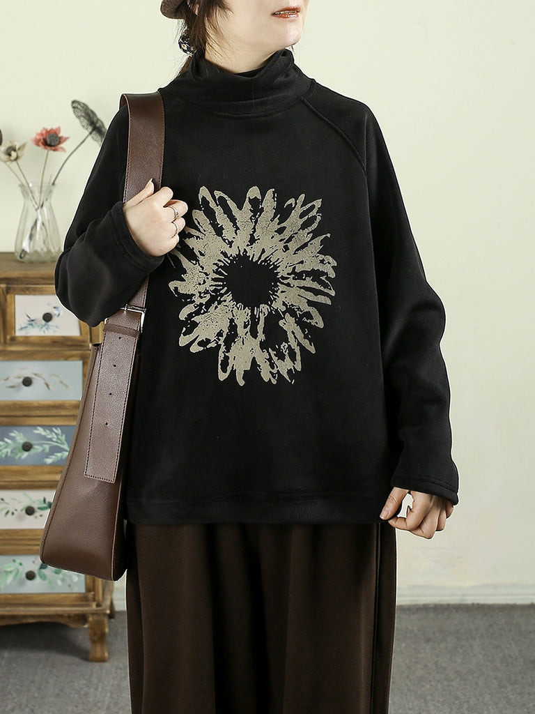 Blusa feminina vintage de gola alta com estampa floral outonal e forro de lã.