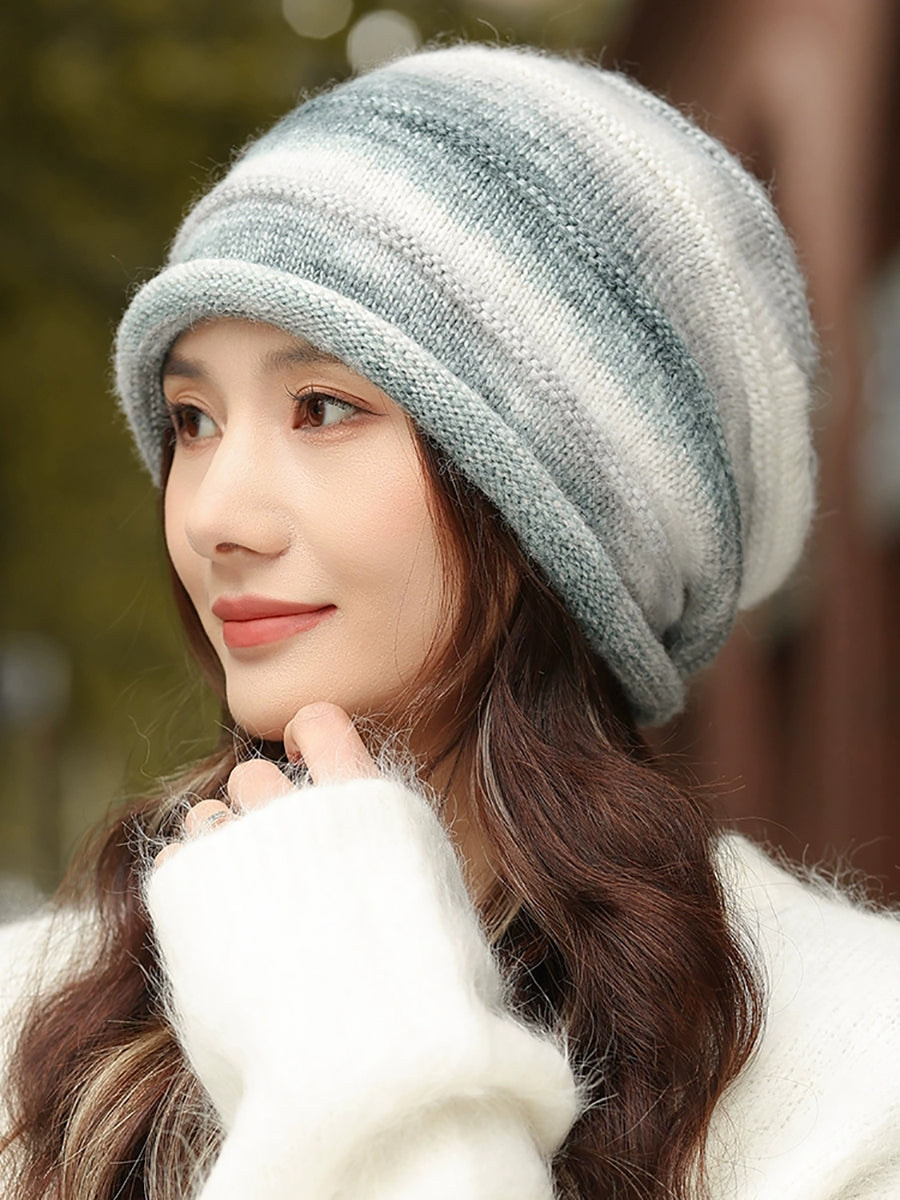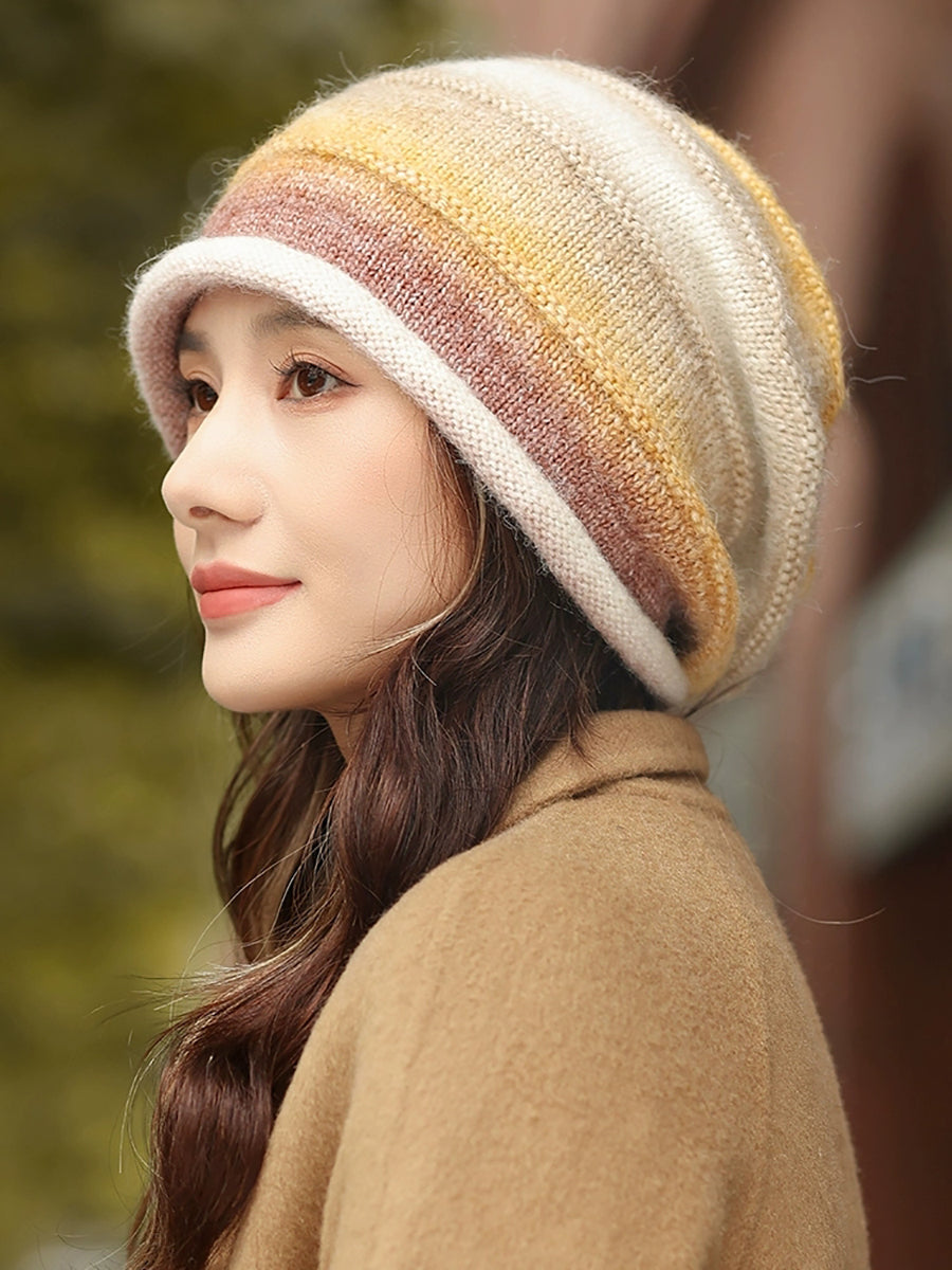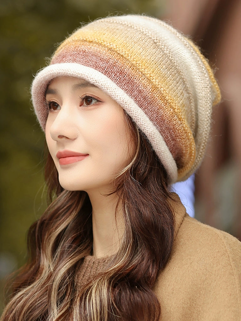 Gorro feminino de inverno em tricô com blocos de cores e estilo artístico