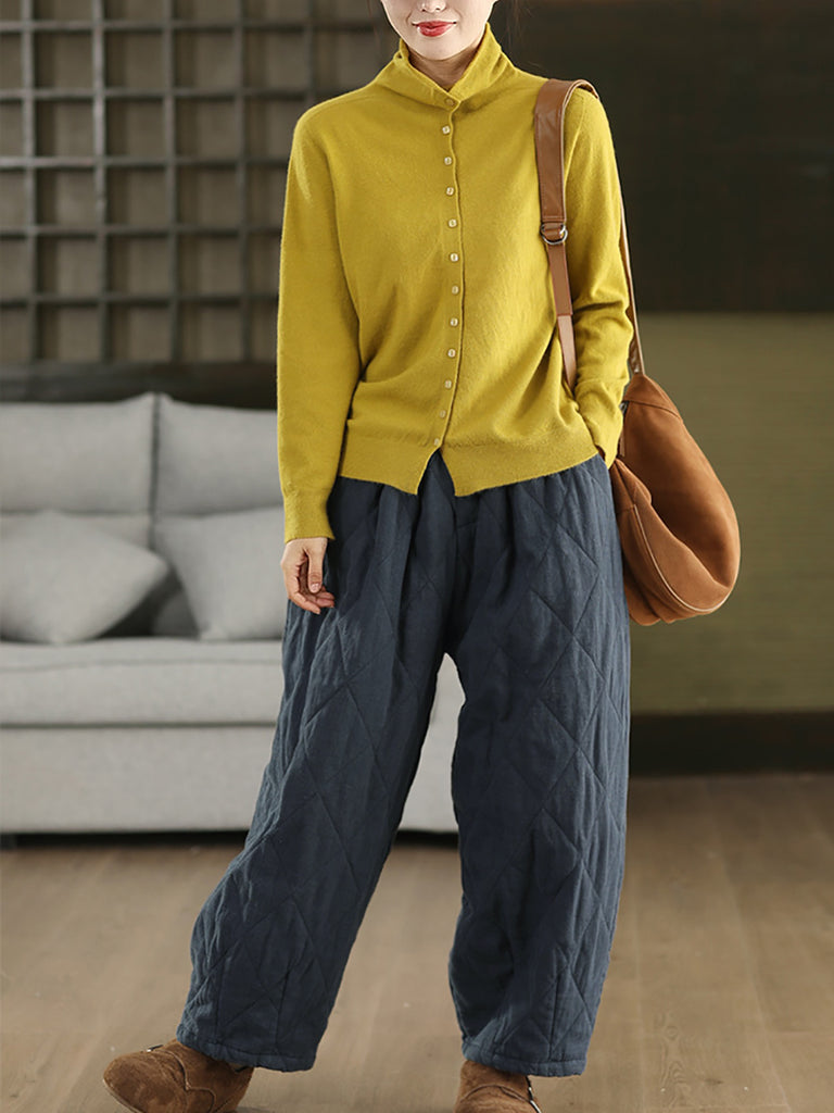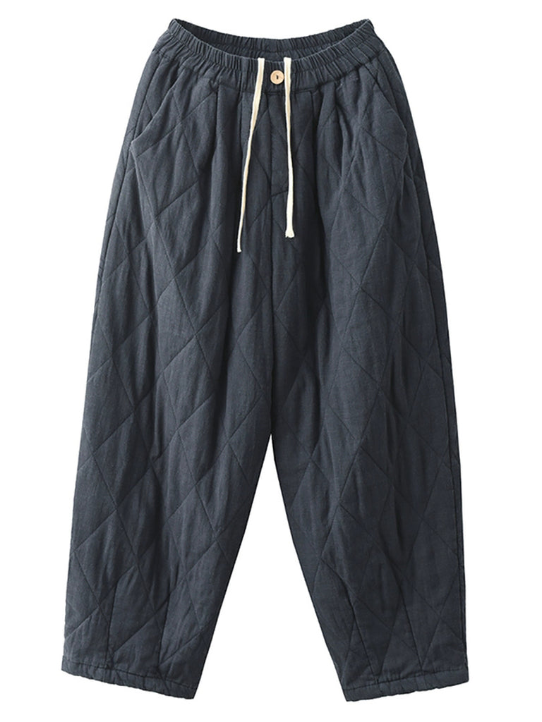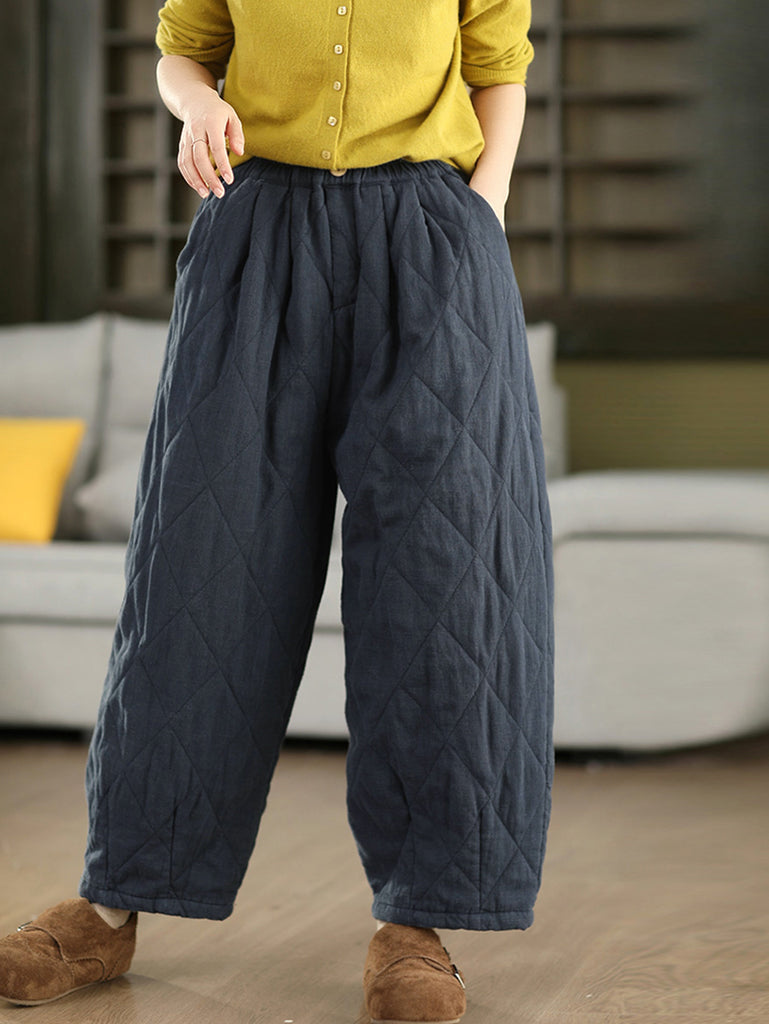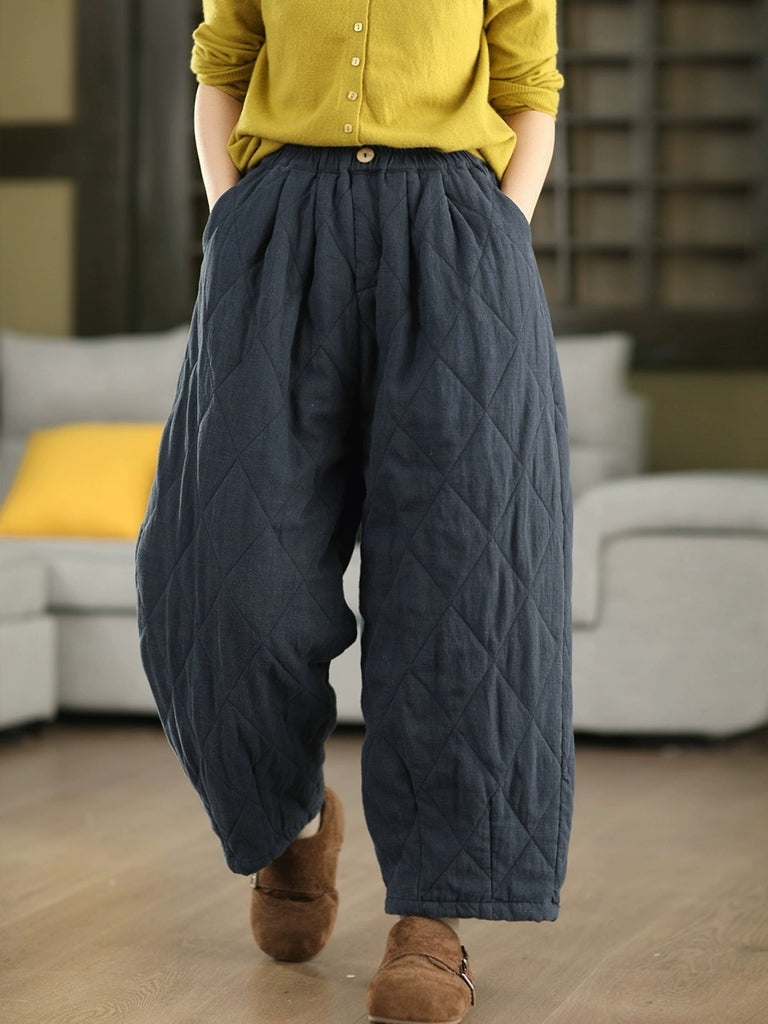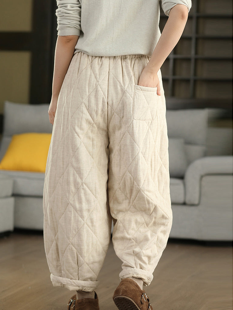 Calça Harem Acolchoada Feminina de Inverno em Cor Lisa 100% Cânhamo