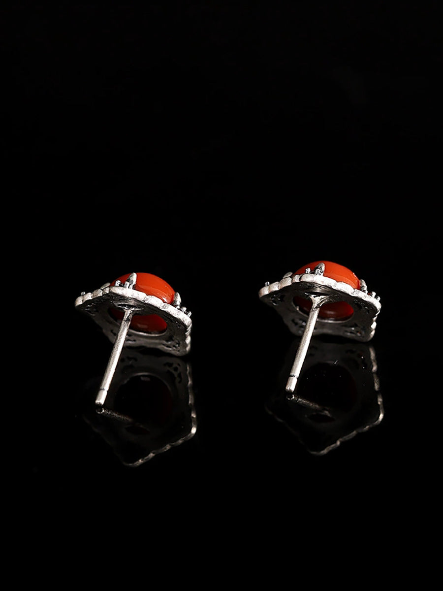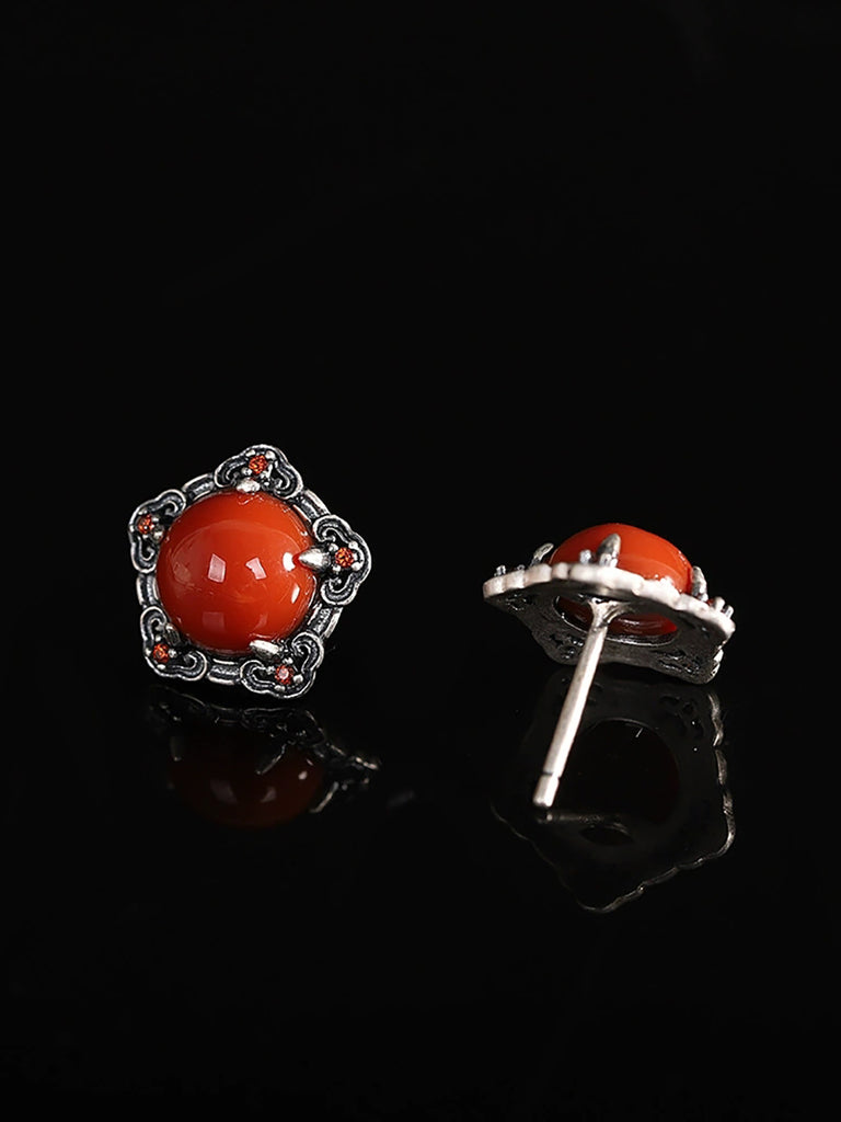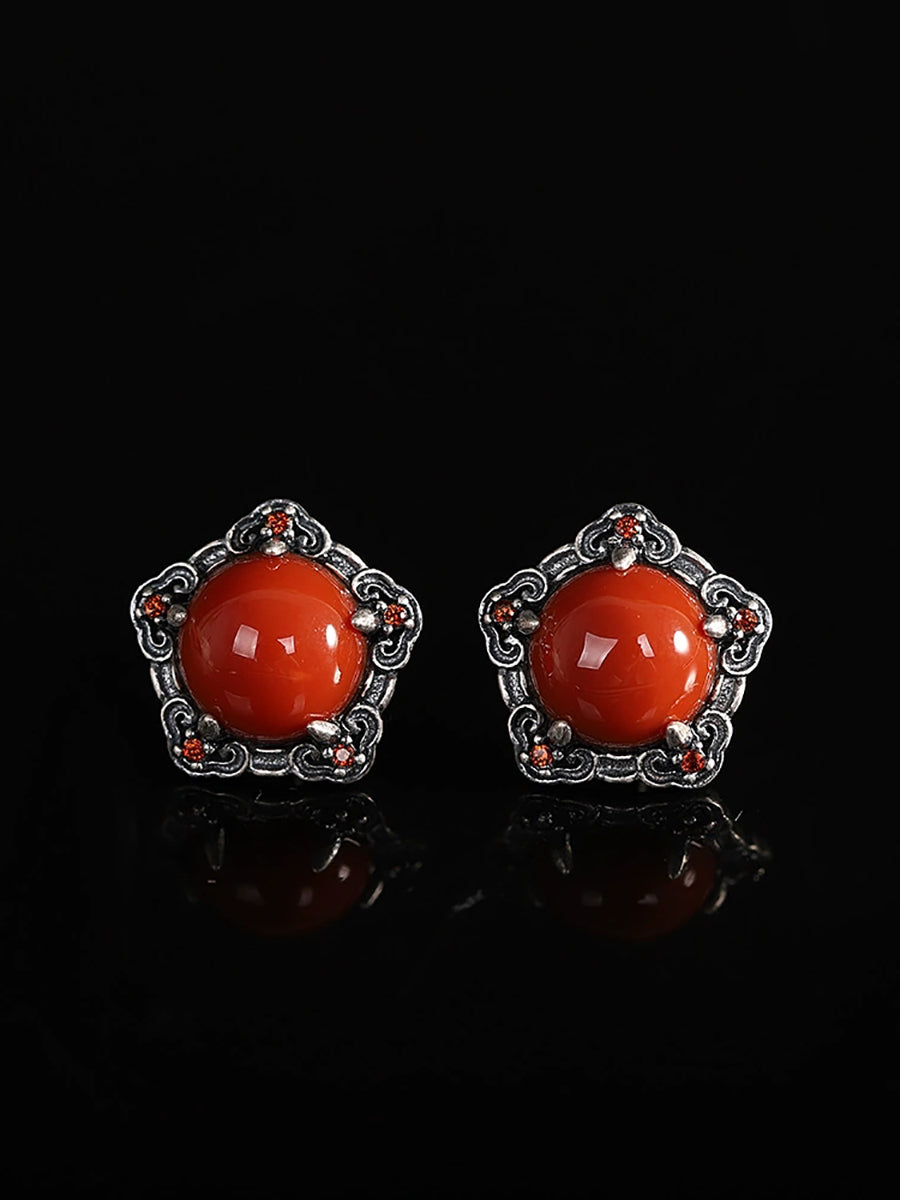 Brincos femininos vintage em prata S925 com ágata vermelha.