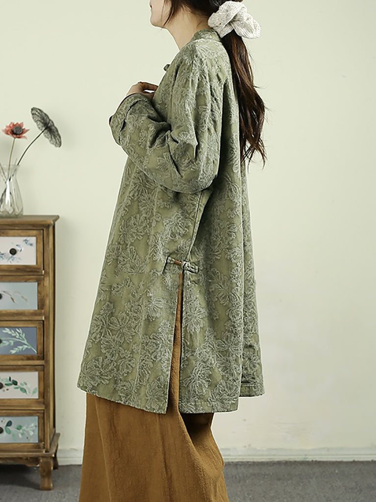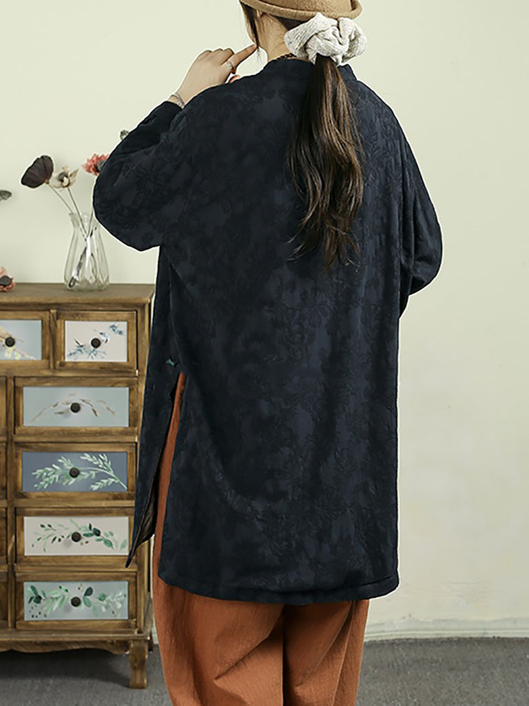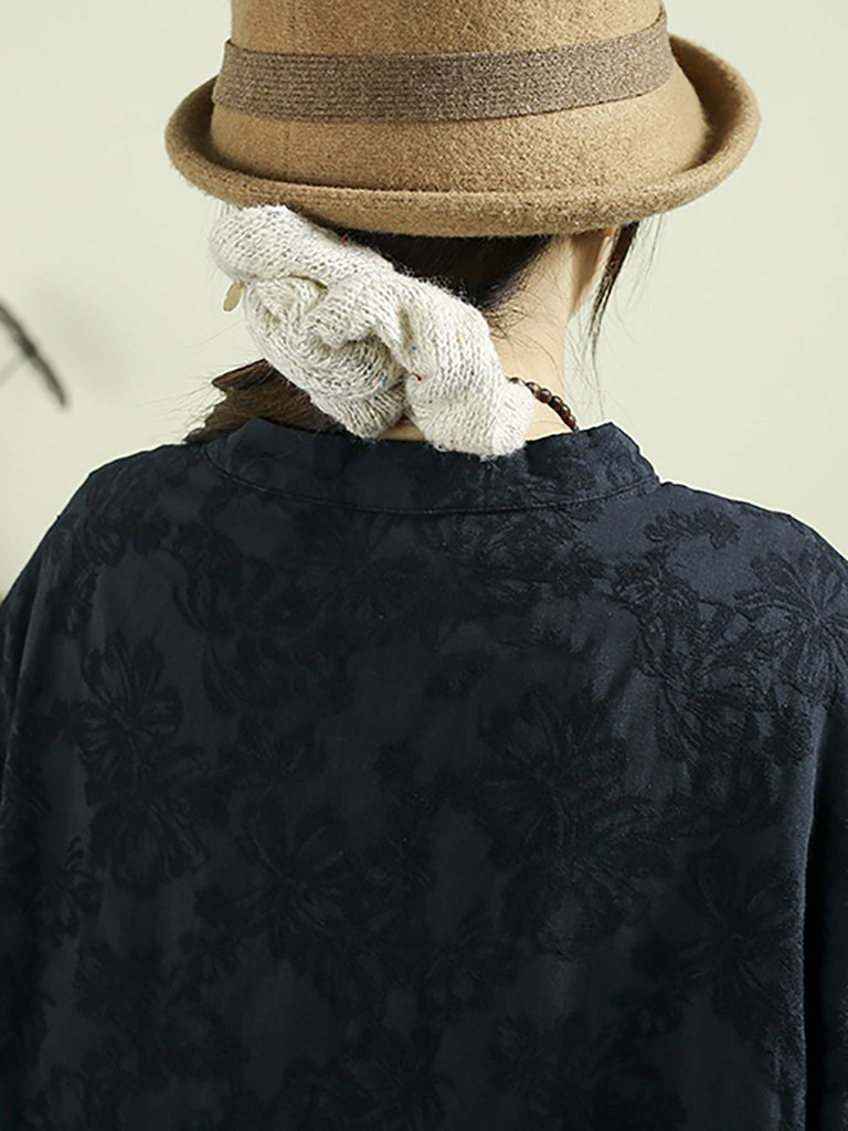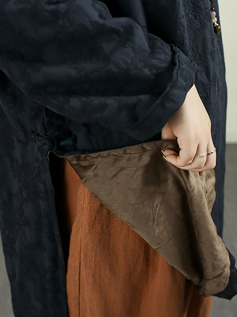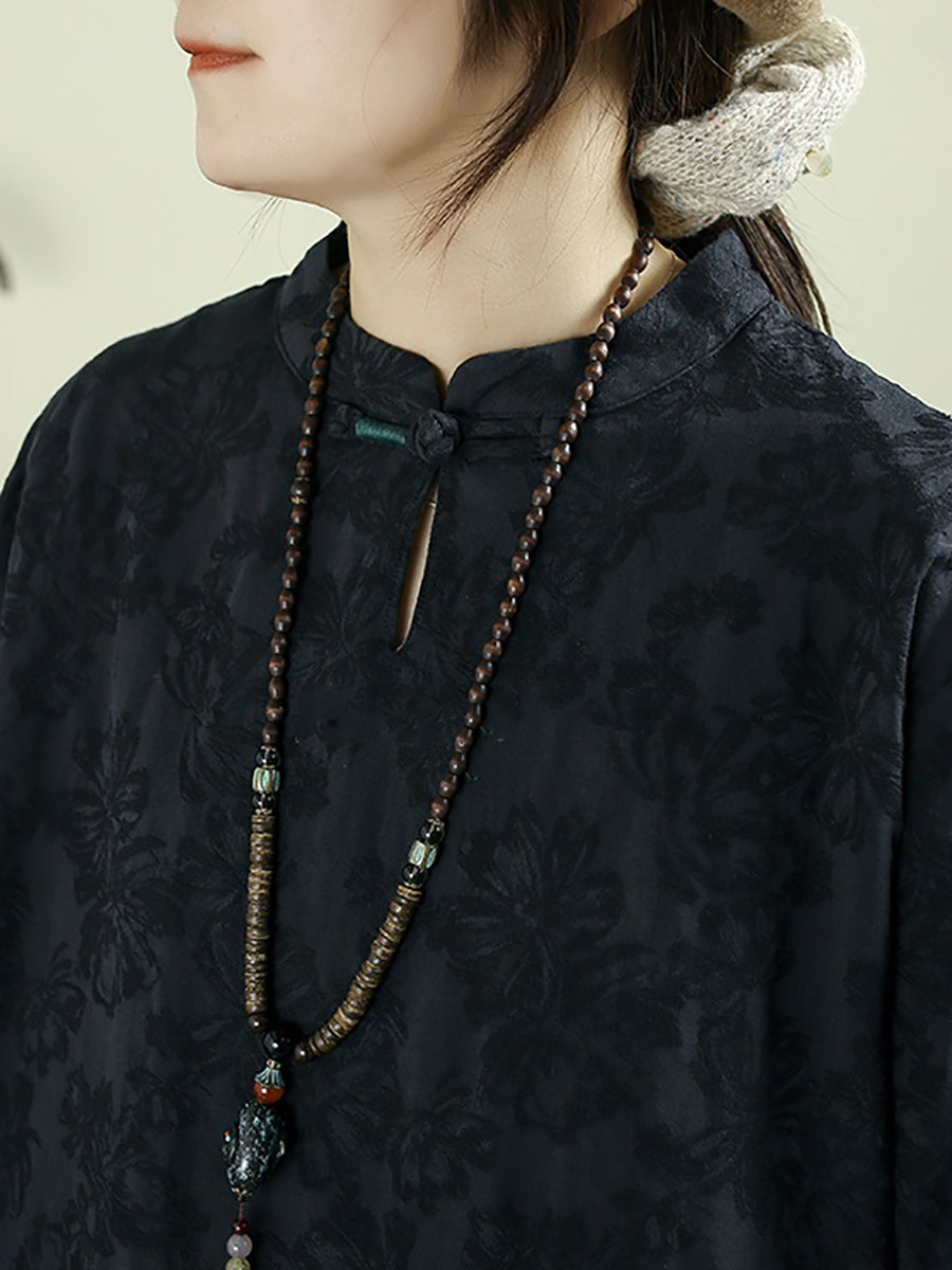 Camisa feminina de inverno retrô em jacquard, 100% linho, com forro de lã.