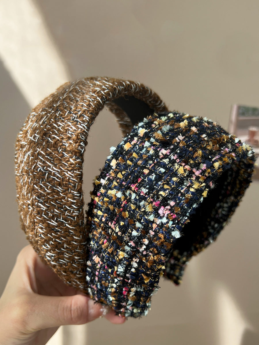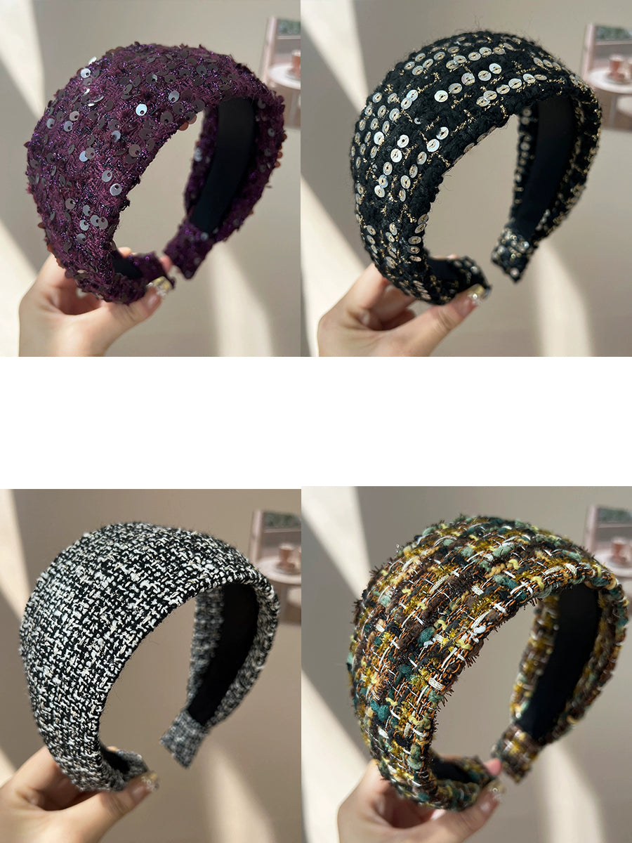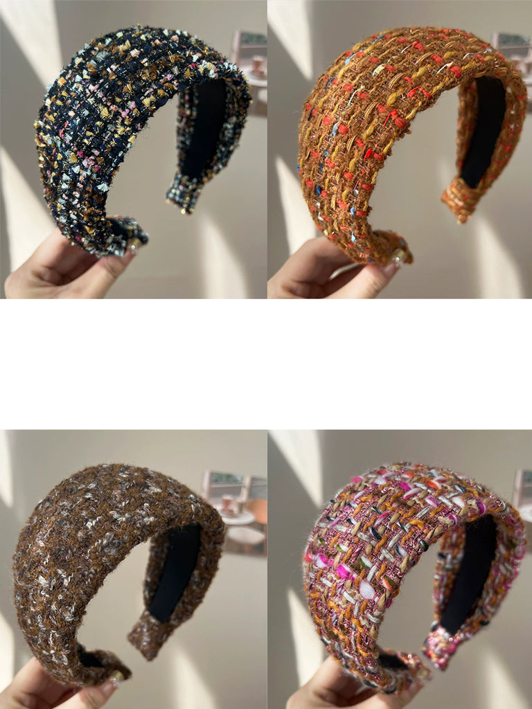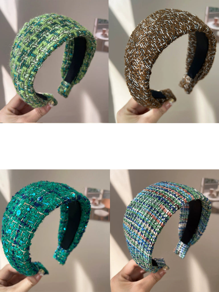 Conjunto de 4 faixas de cabelo largas xadrez para o inverno.