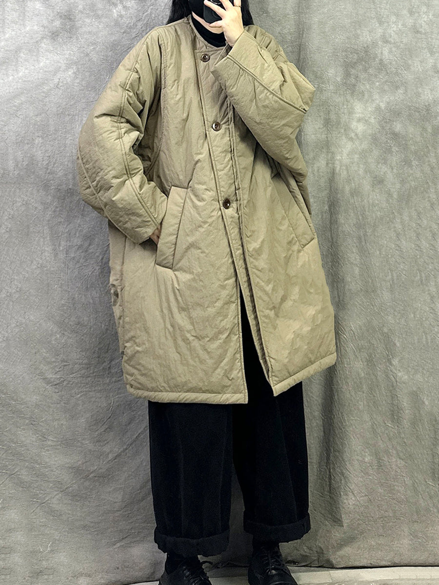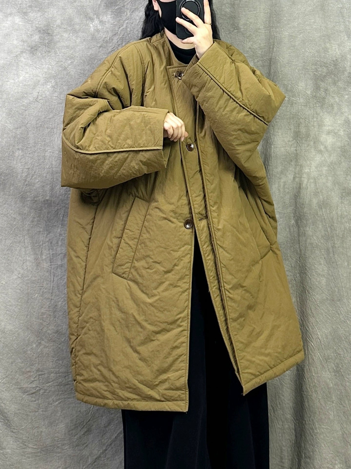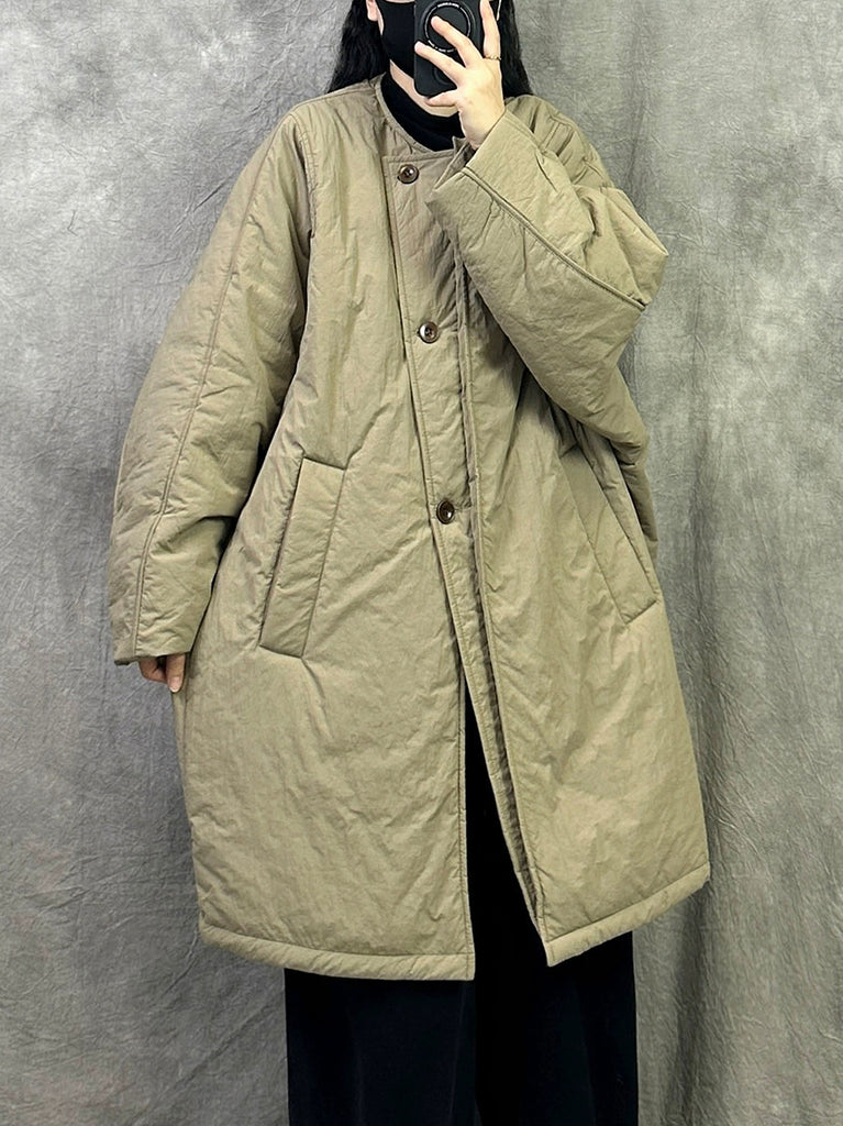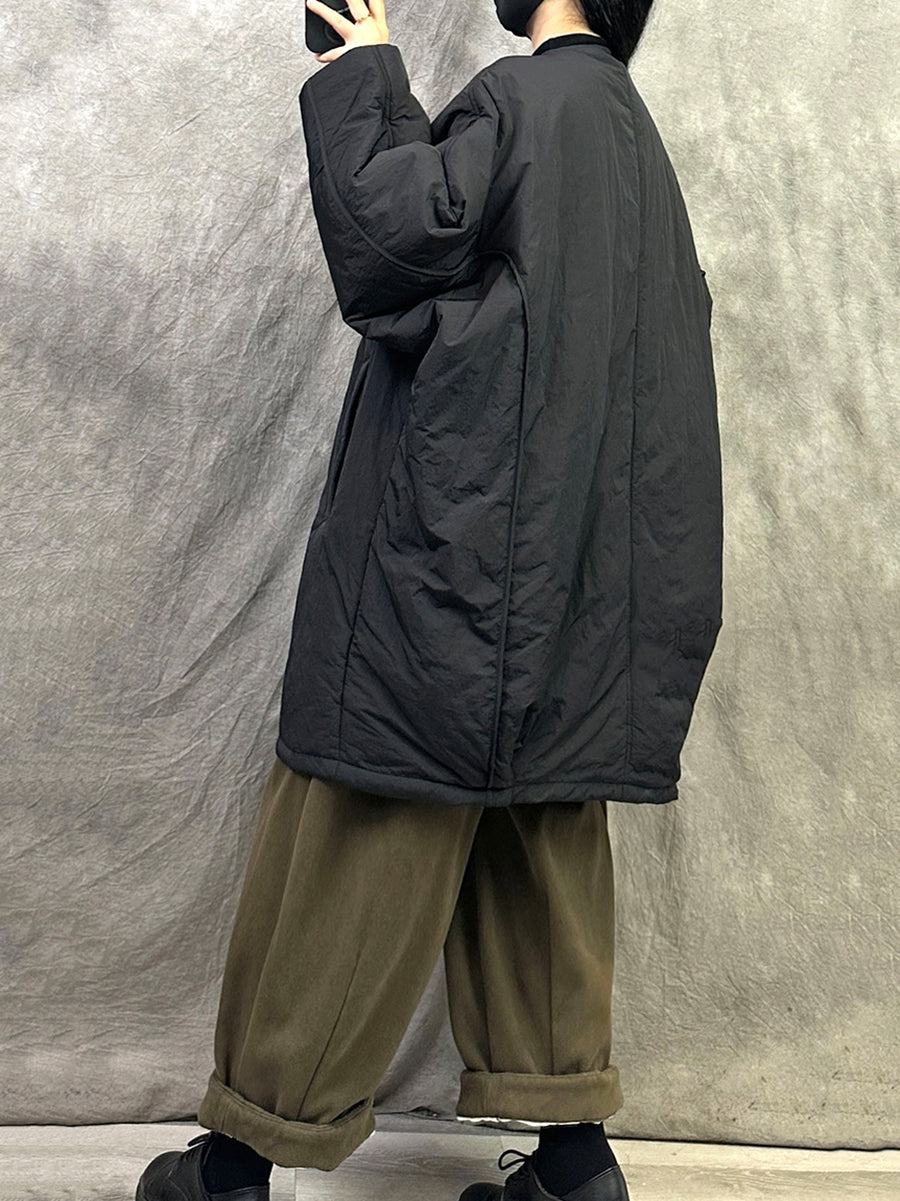 Casaco feminino casual de inverno, cor lisa, acolchoado e com gola redonda.
