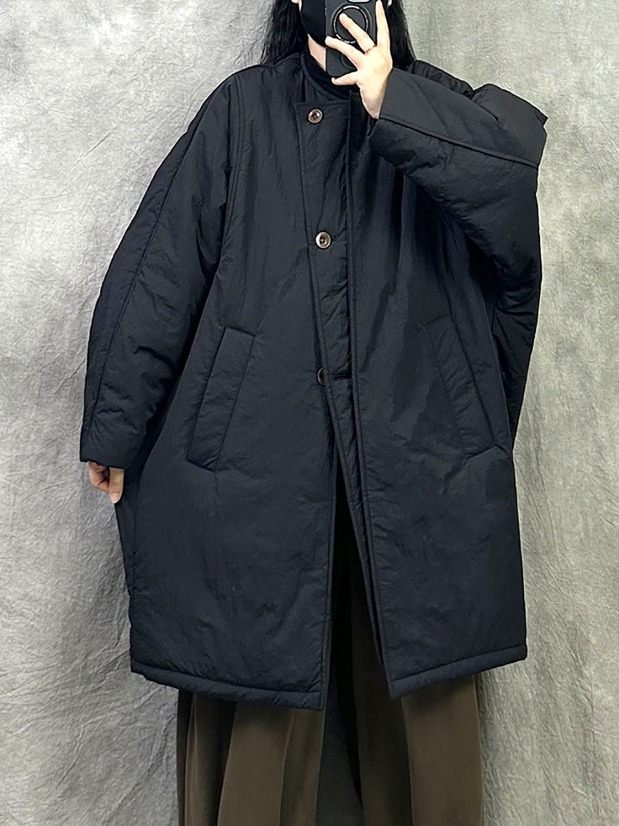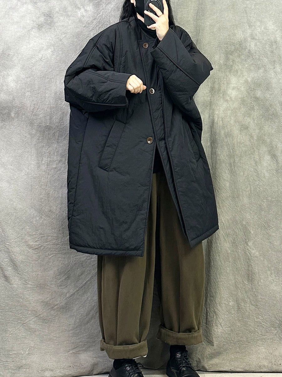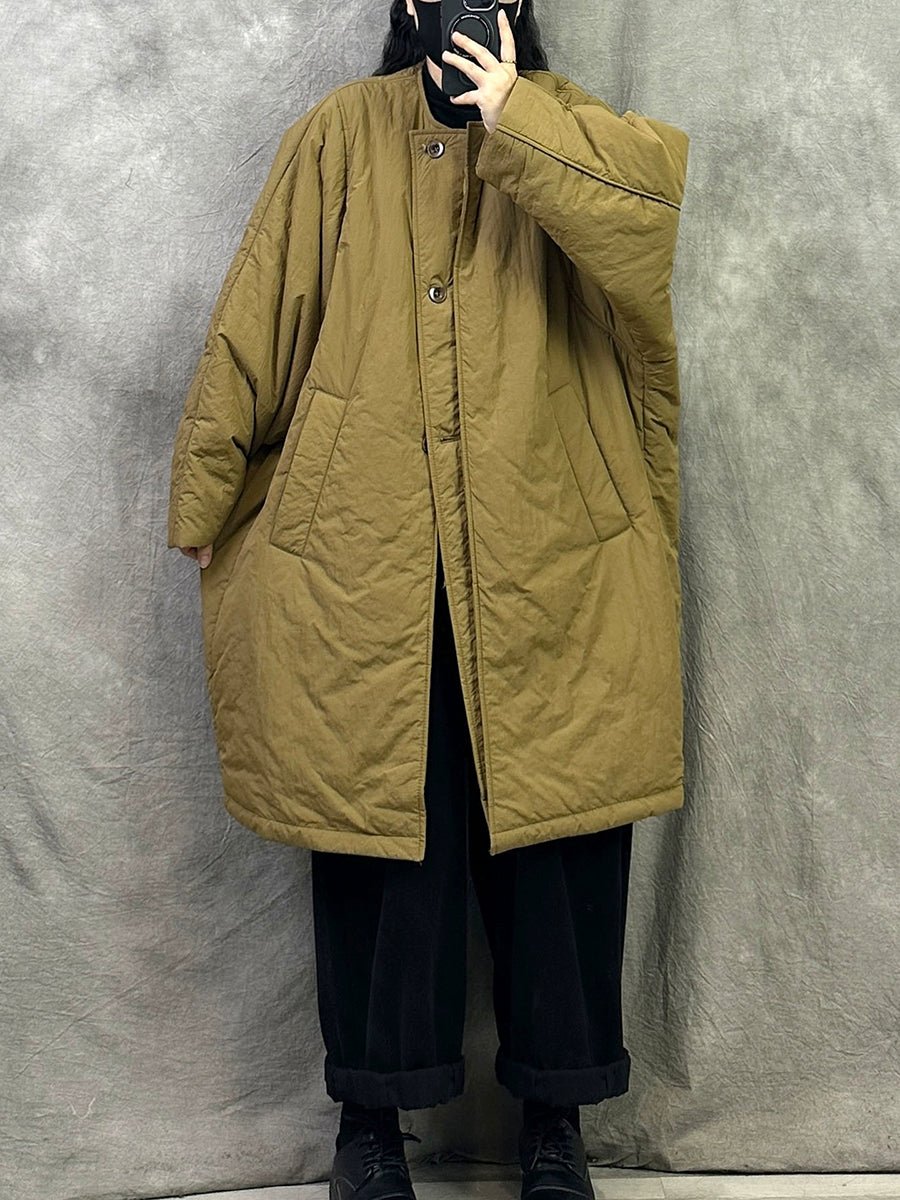 Casaco feminino casual de inverno, cor lisa, acolchoado e com gola redonda.