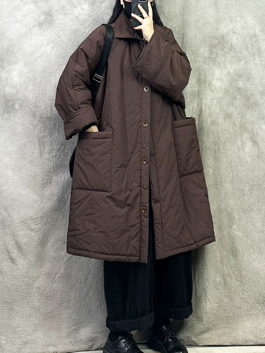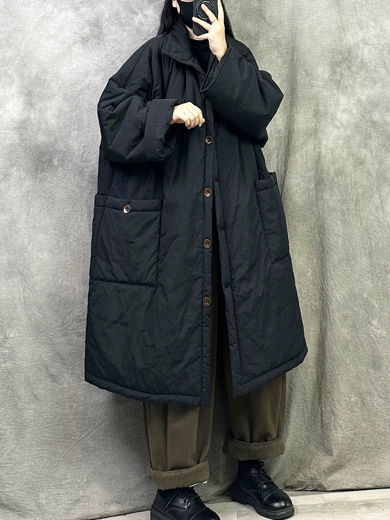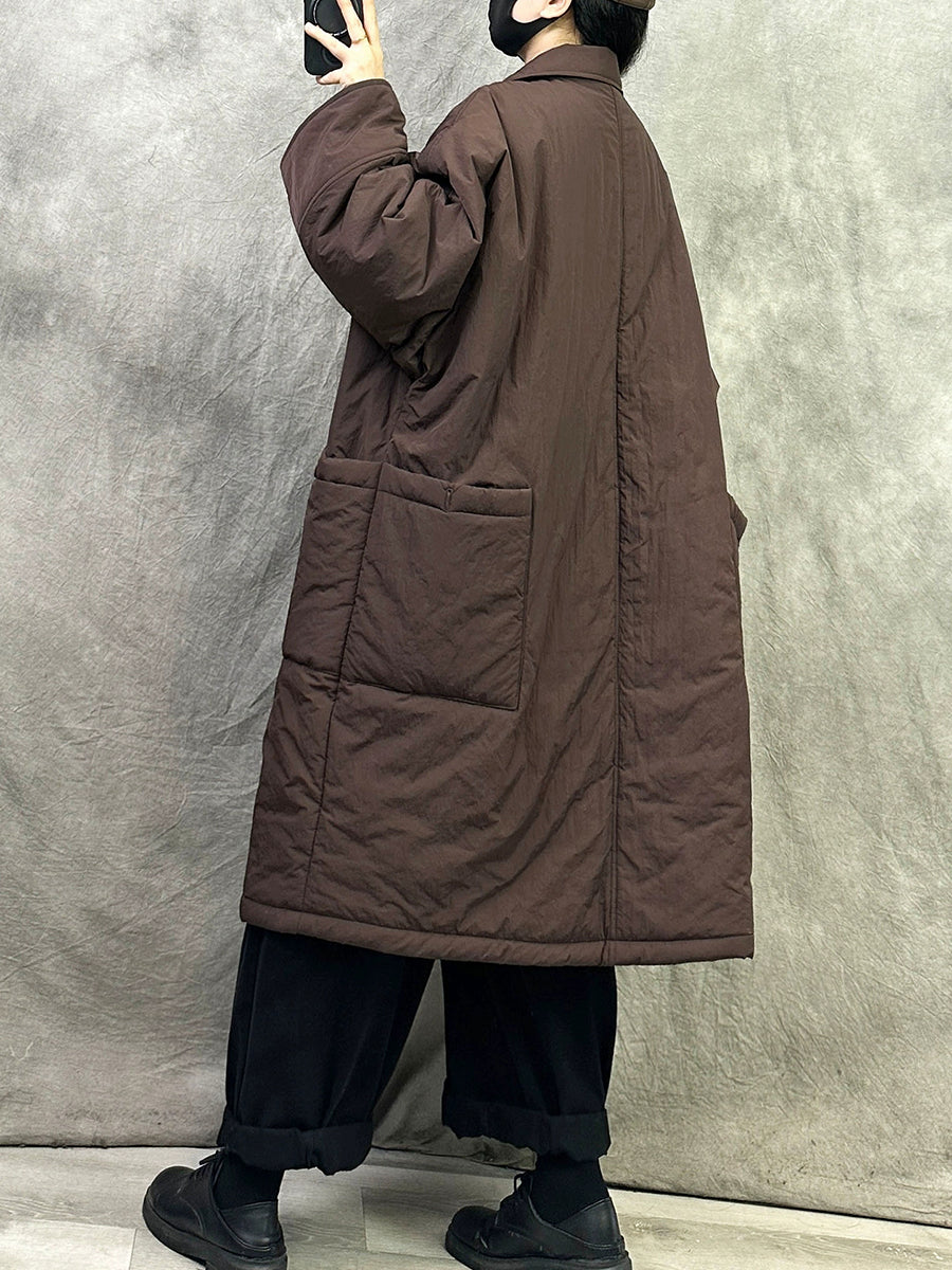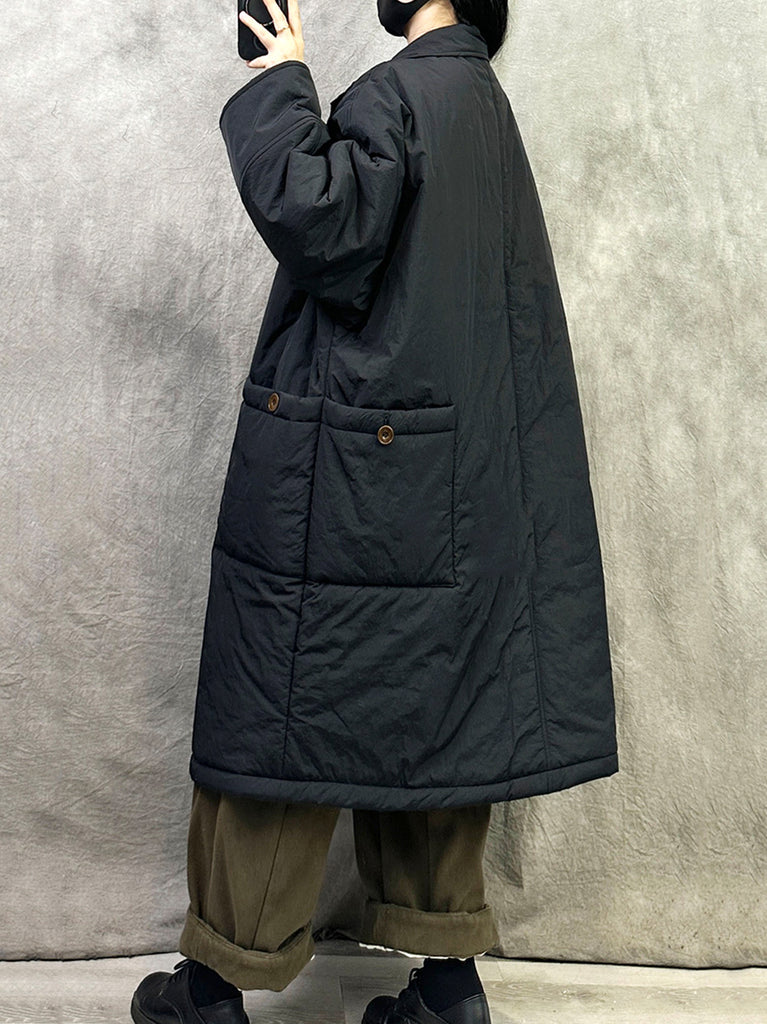 Casaco longo feminino casual de inverno, cor lisa, acolchoado e com gola redonda.