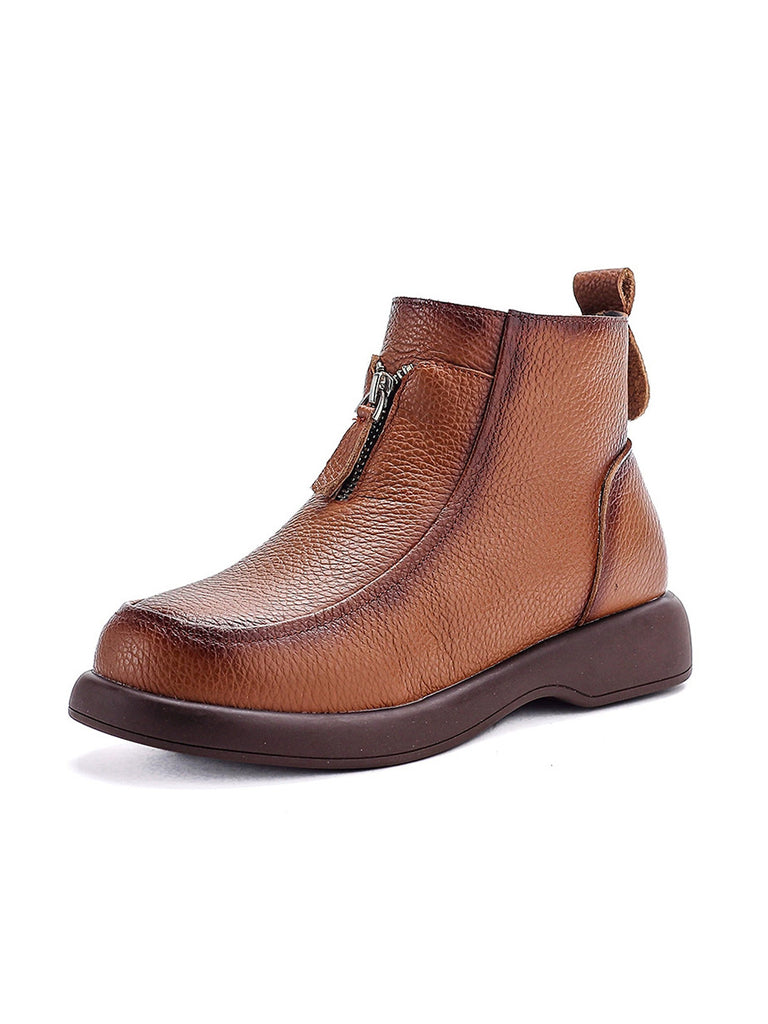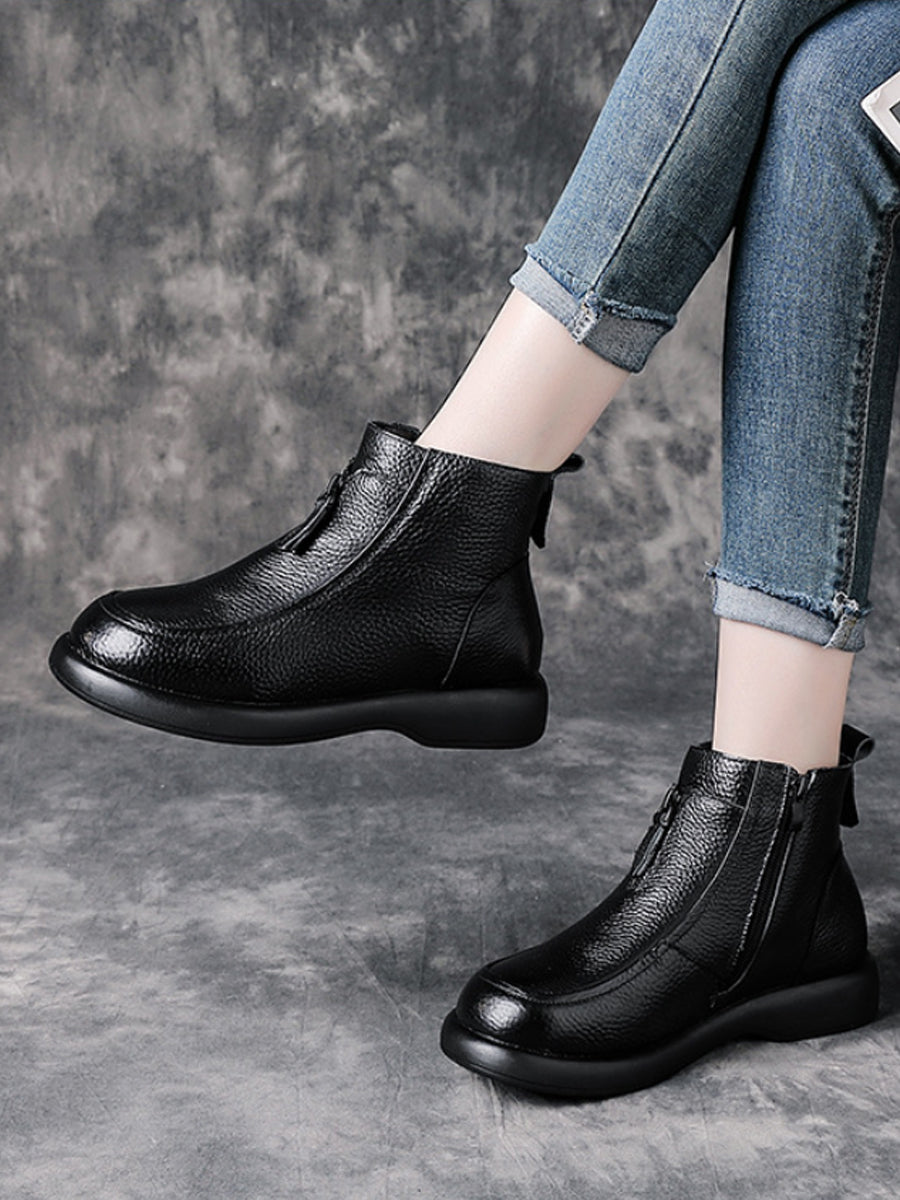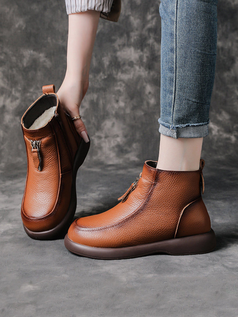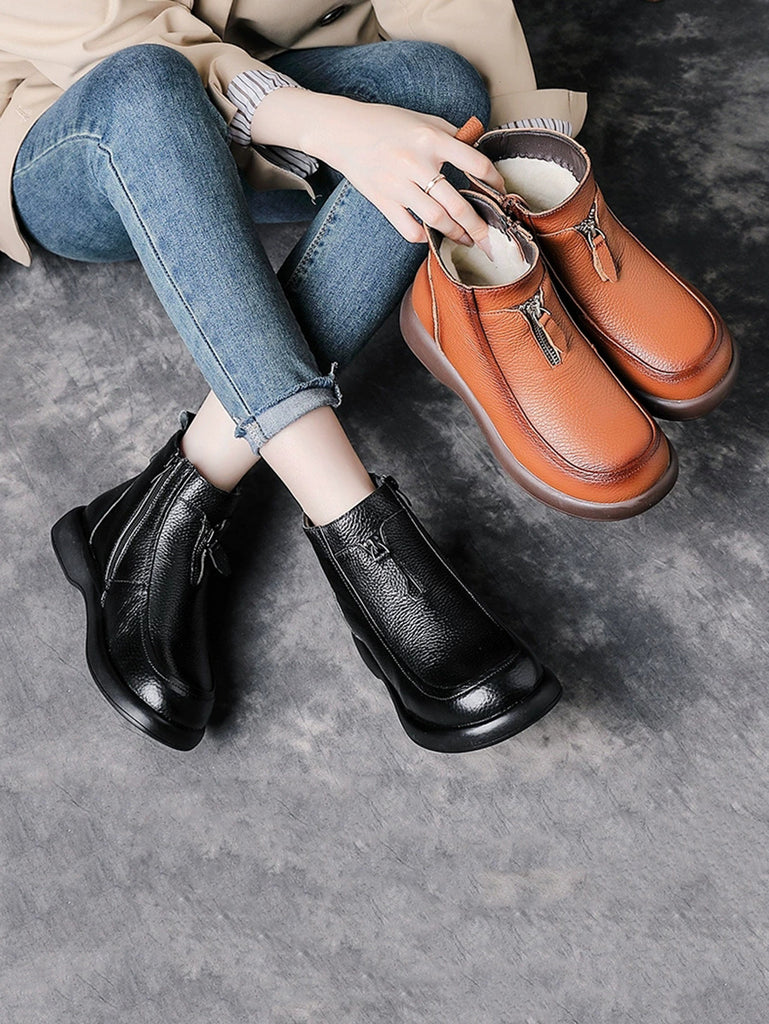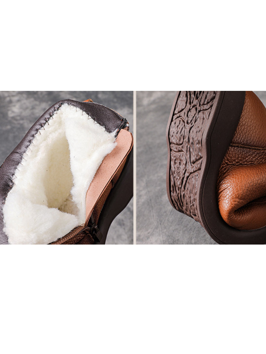 Botas de cano curto femininas de inverno em couro legítimo com forro de lã