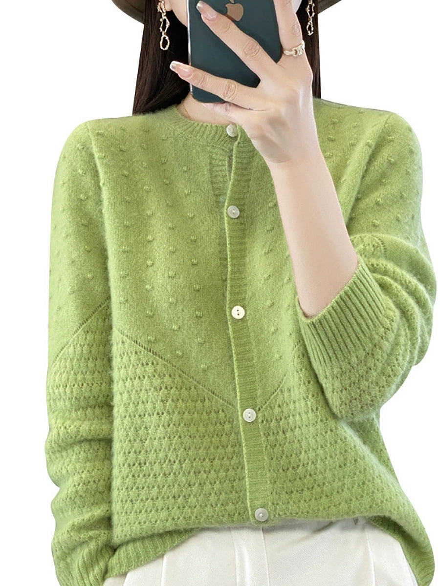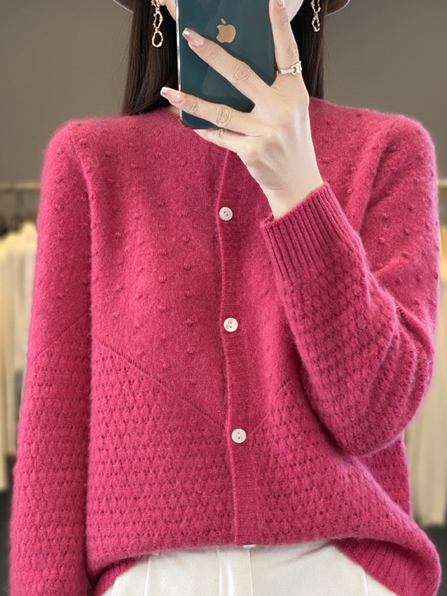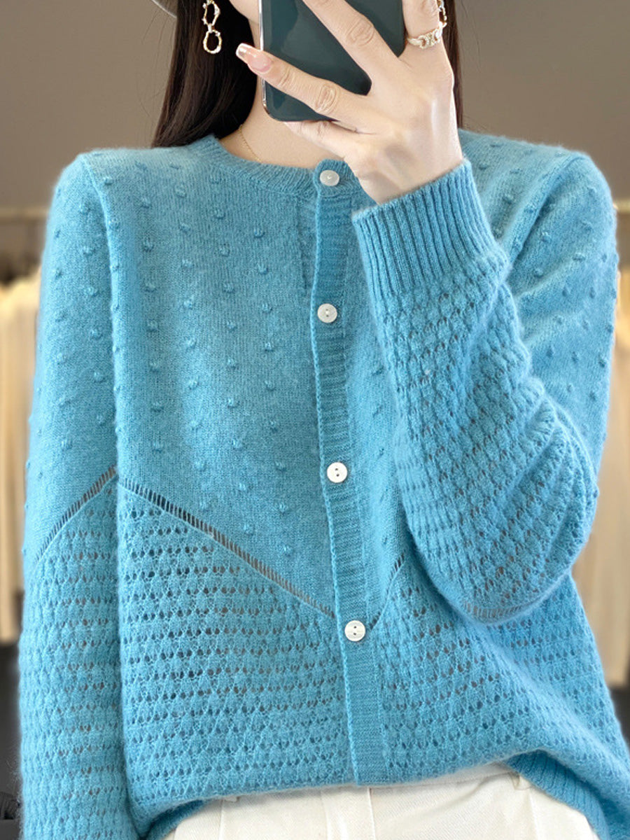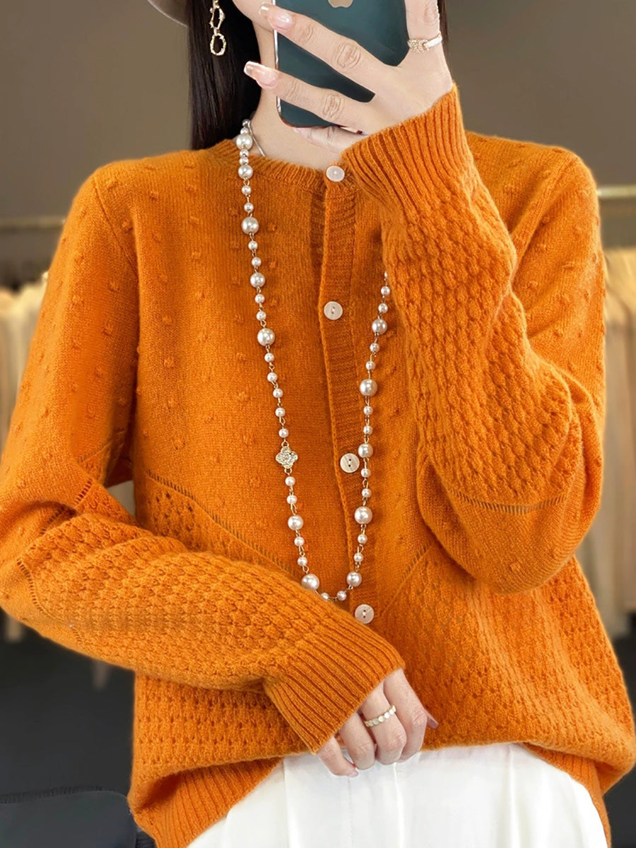 Suéter feminino de lã com gola redonda, cor lisa, estilo casual de outono.