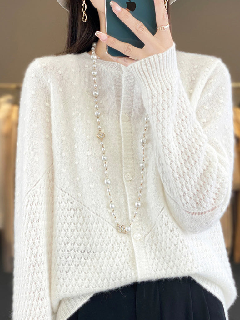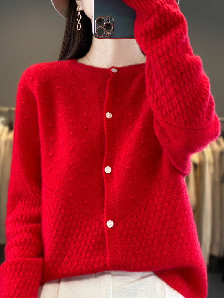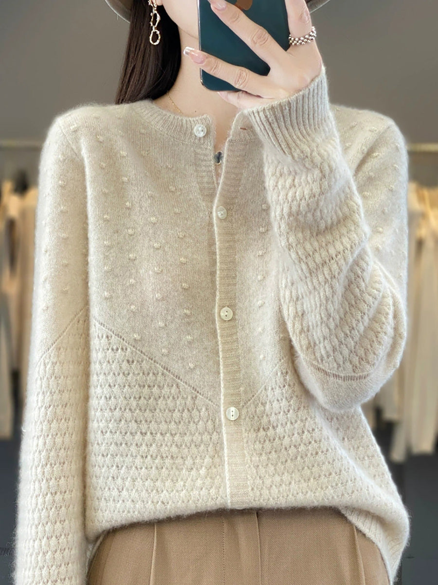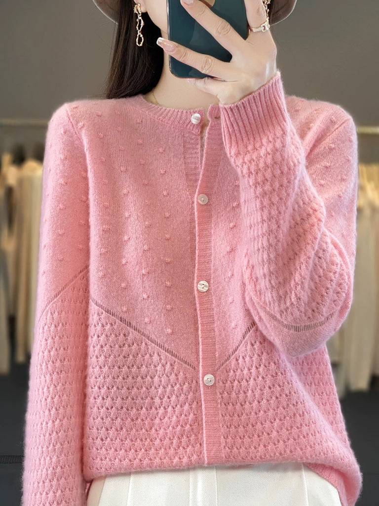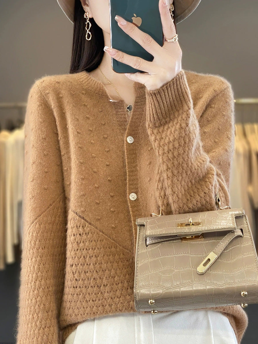 Suéter feminino de lã com gola redonda, cor lisa, estilo casual de outono.