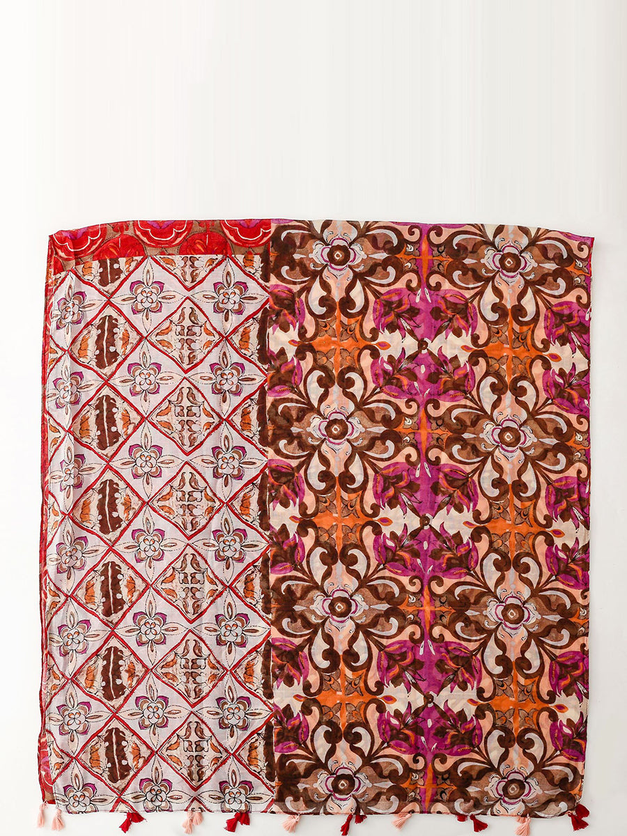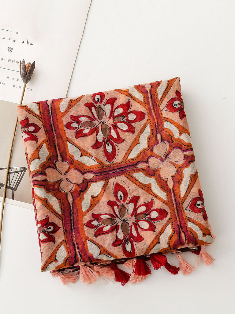 Mulheres étnicas flor emendado borla xale cachecol