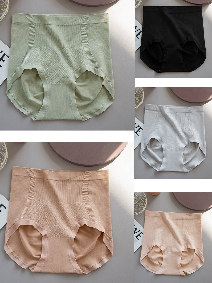 Conjunto de 5 peças de calcinhas modeladoras femininas de cor lisa, com efeito levanta quadril e cintura alta.