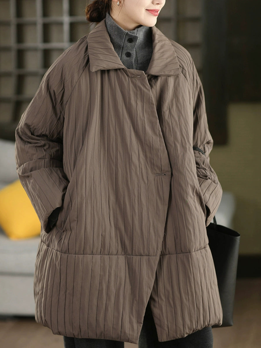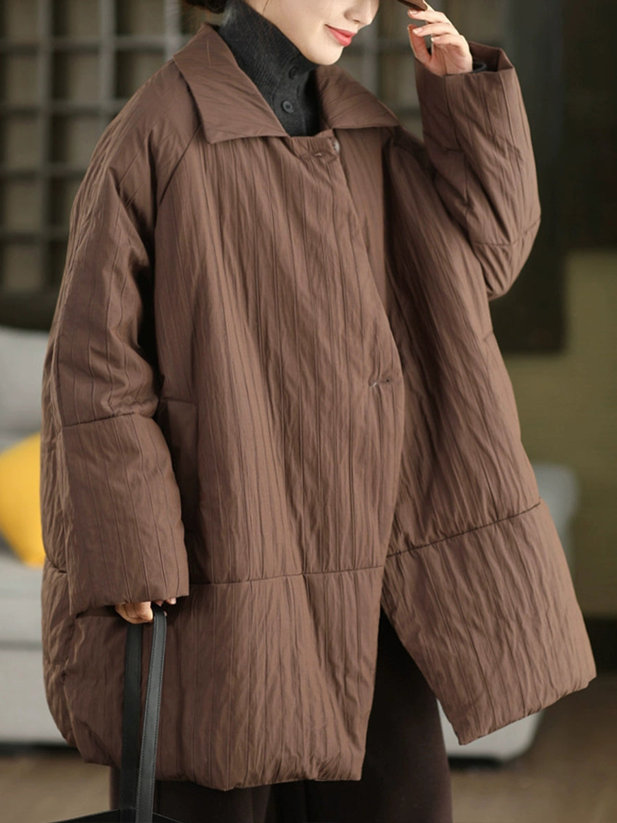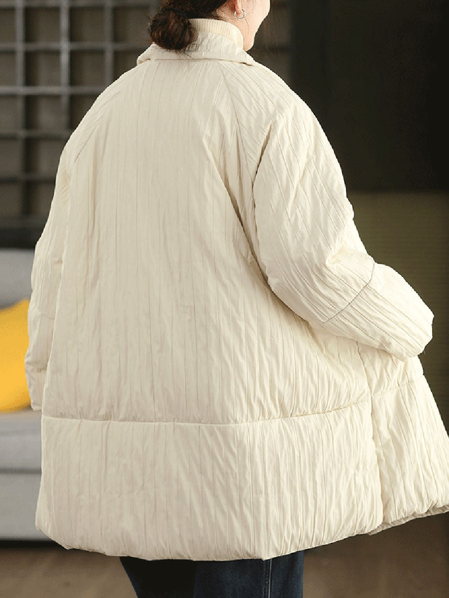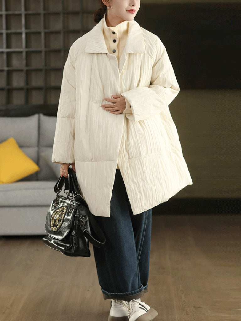 Casaco feminino de inverno em cor lisa com gola dobrável e enchimento de plumas.