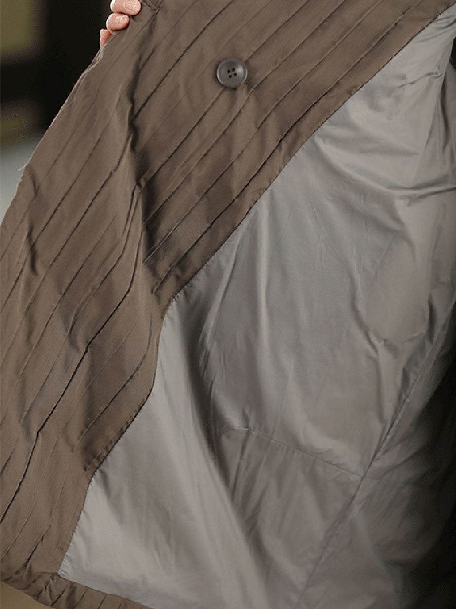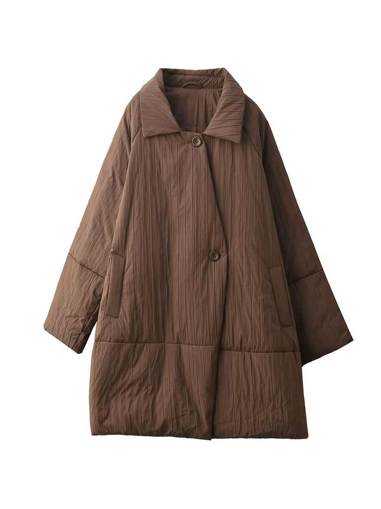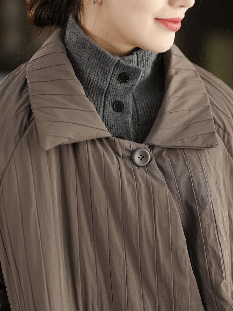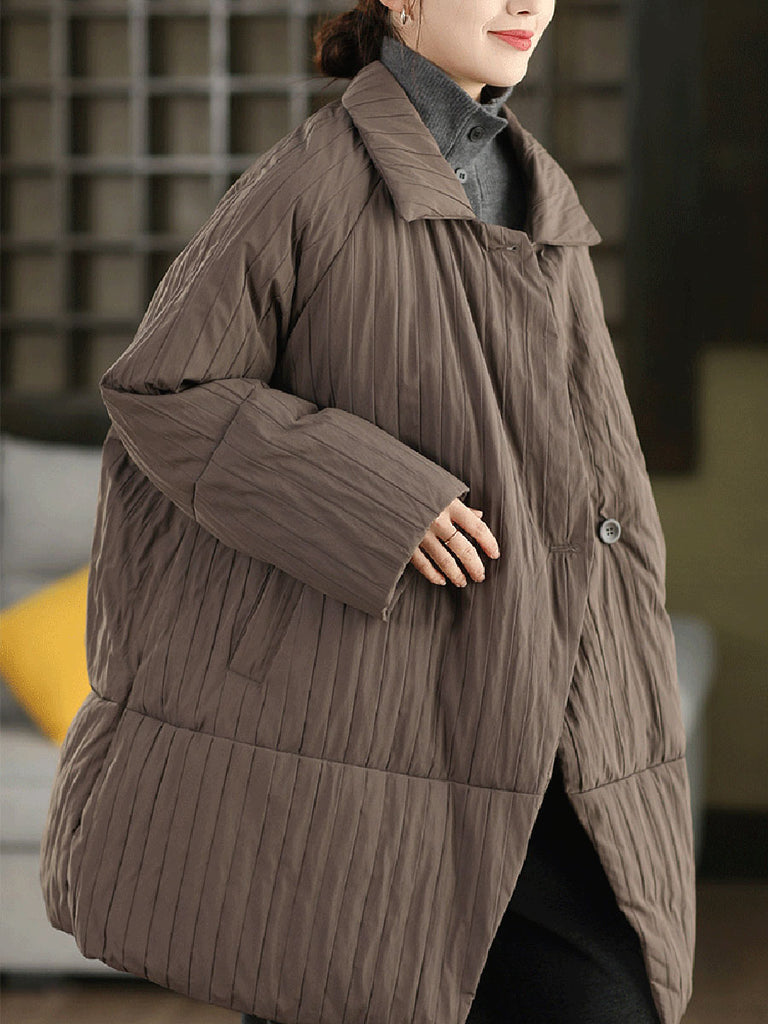 Casaco feminino de inverno em cor lisa com gola dobrável e enchimento de plumas.