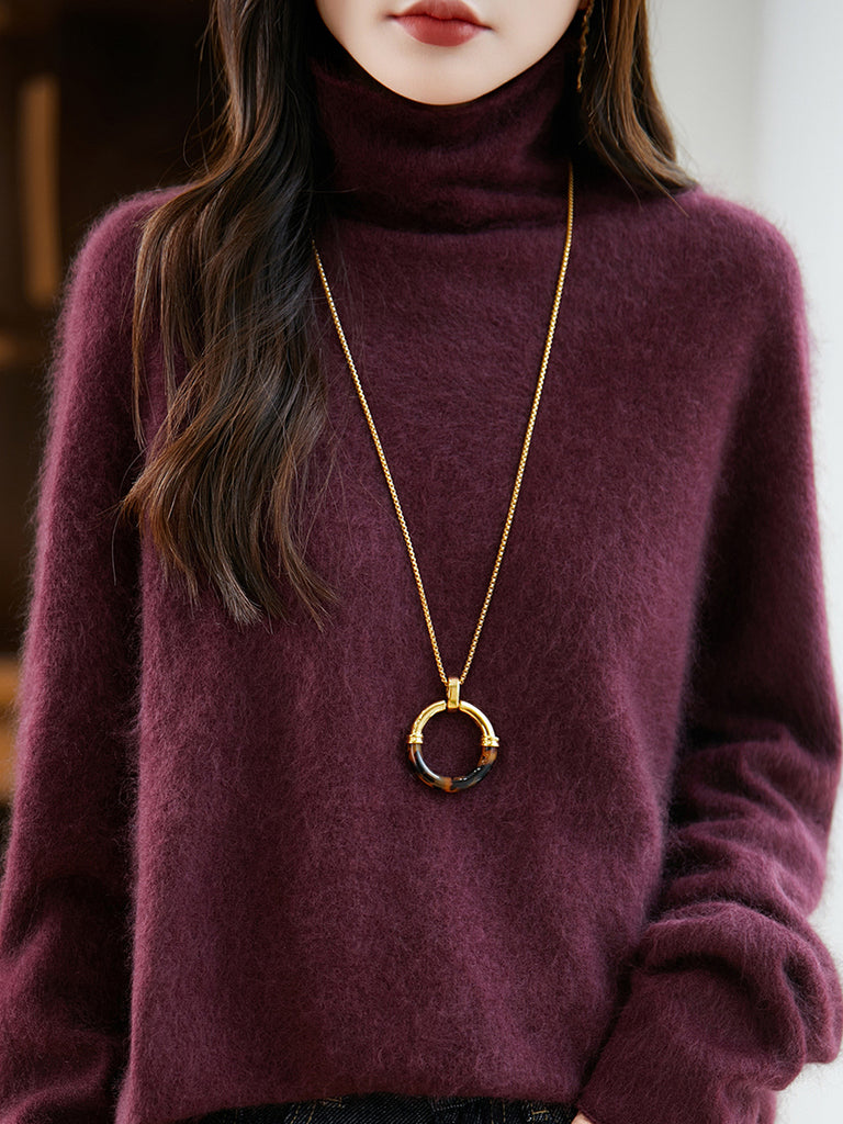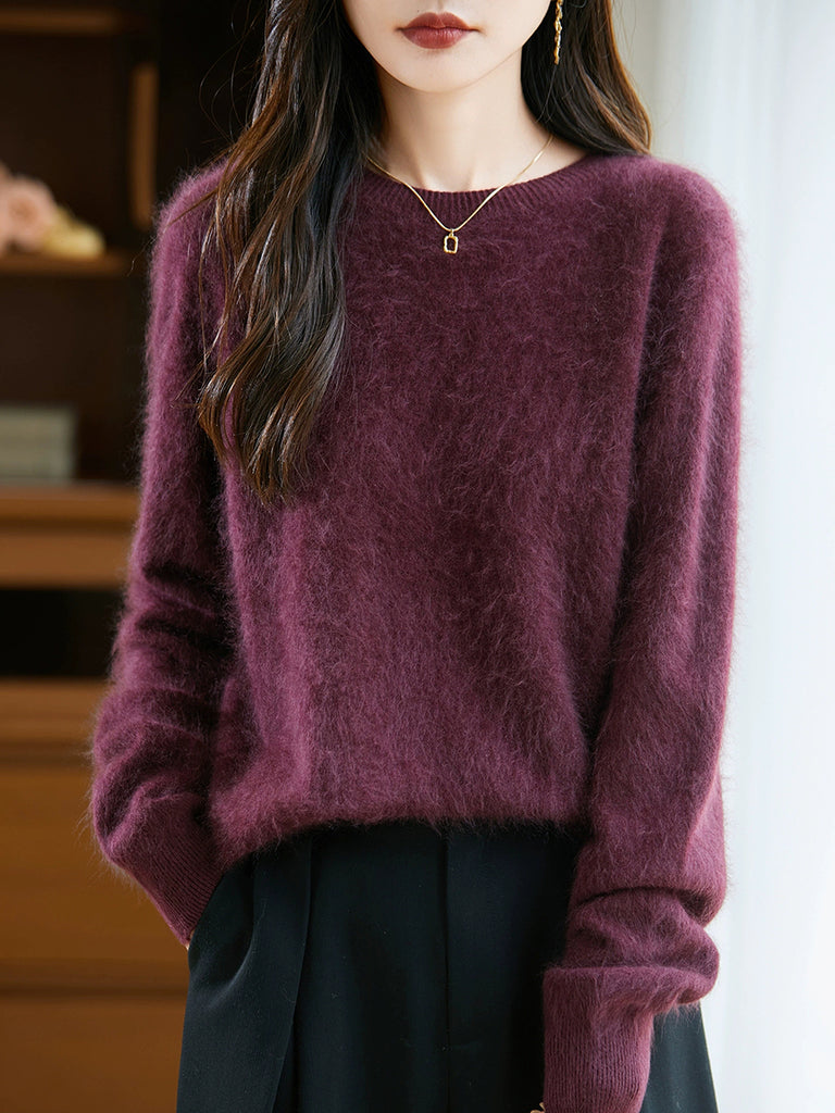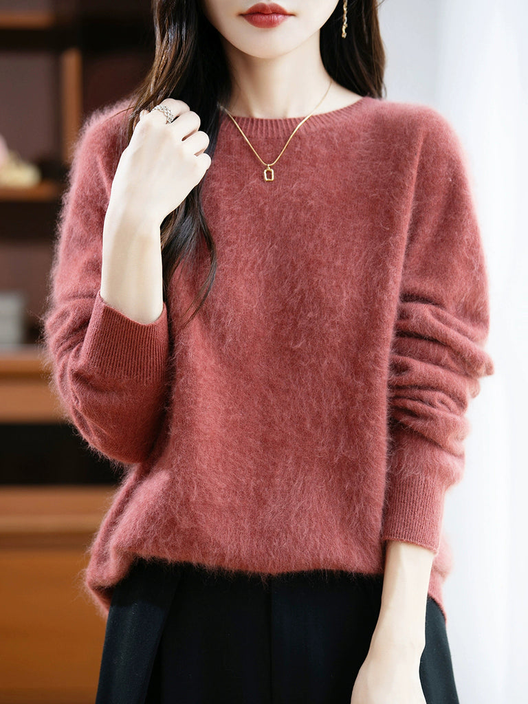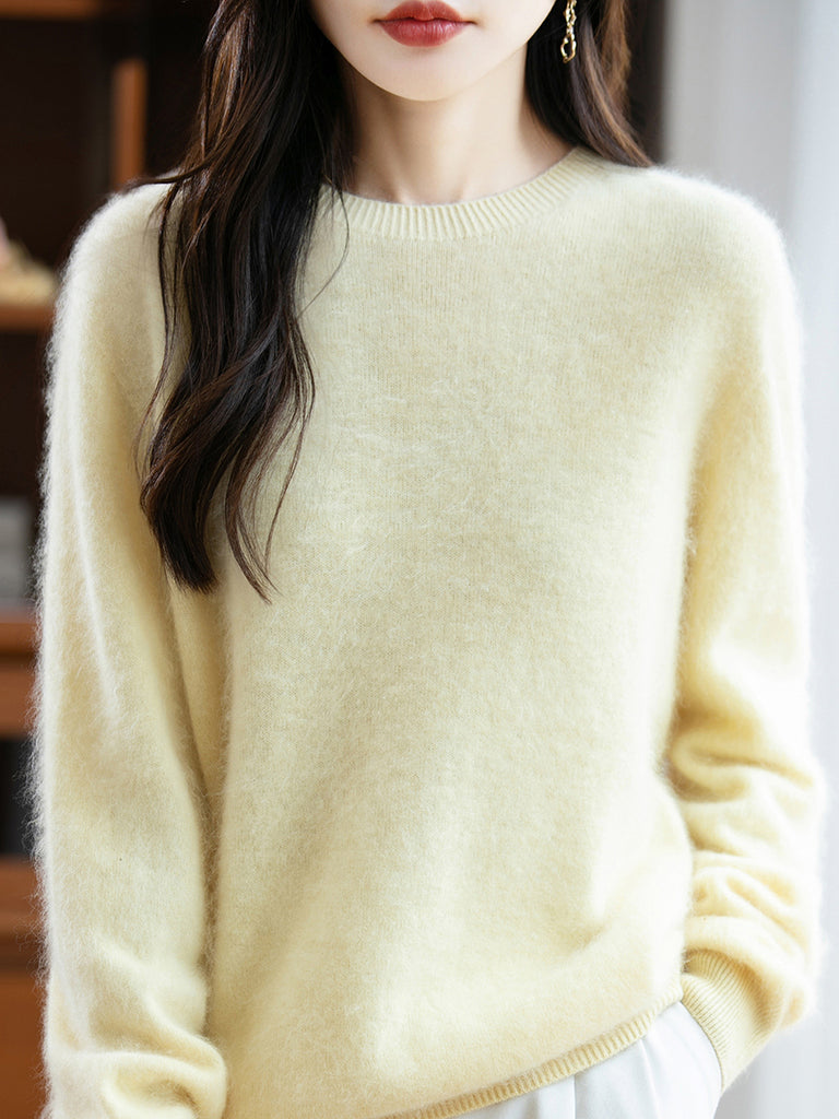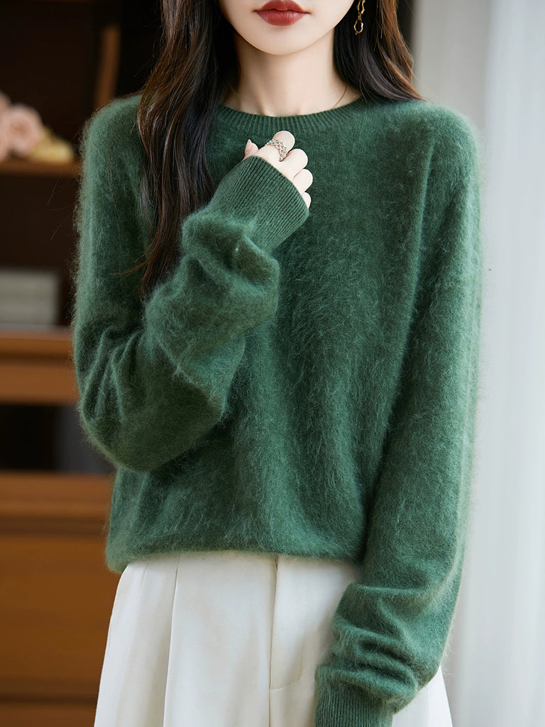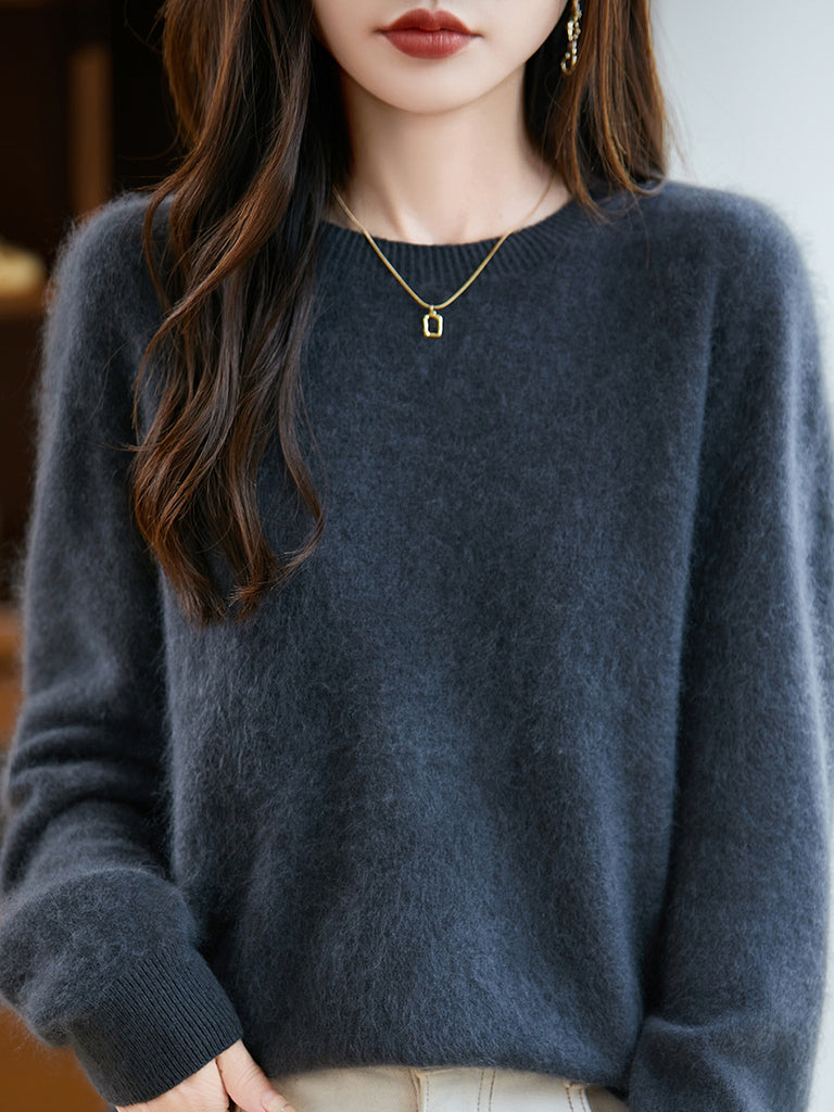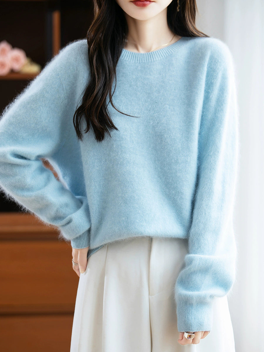 Suéter feminino de lã com gola redonda e cor lisa para o inverno