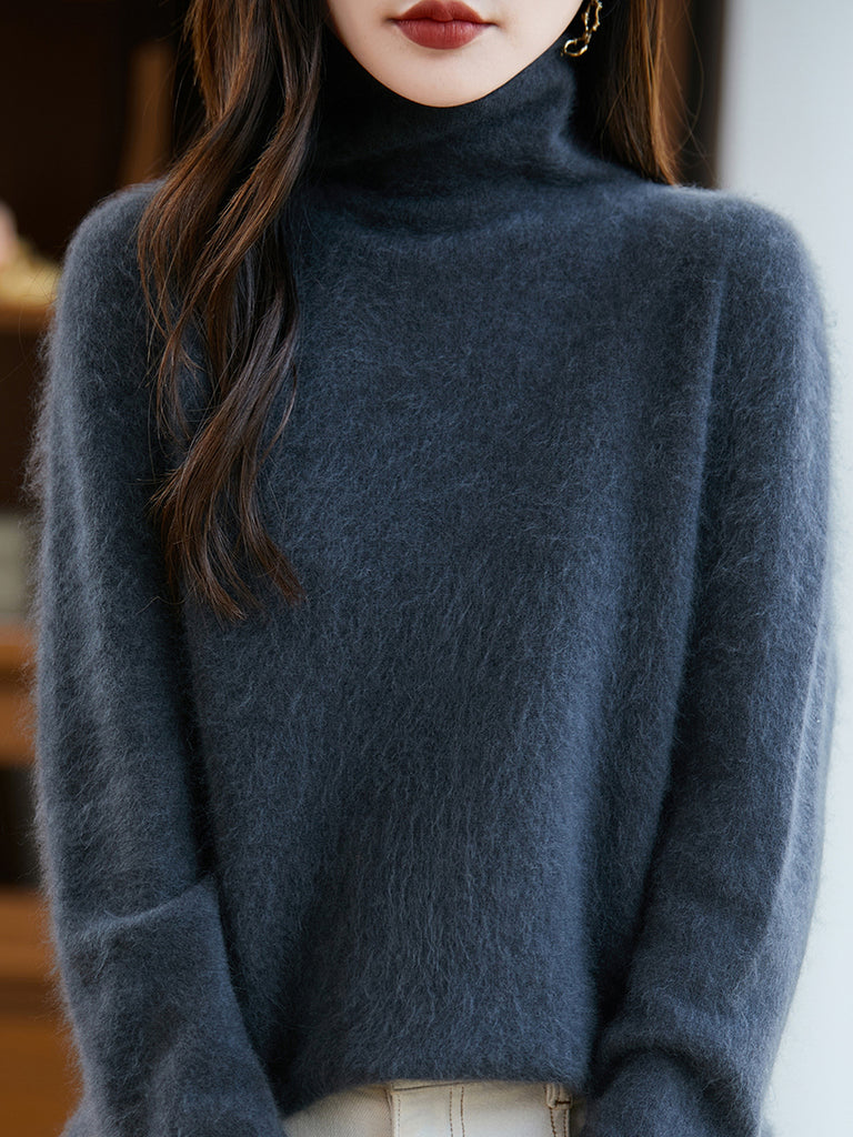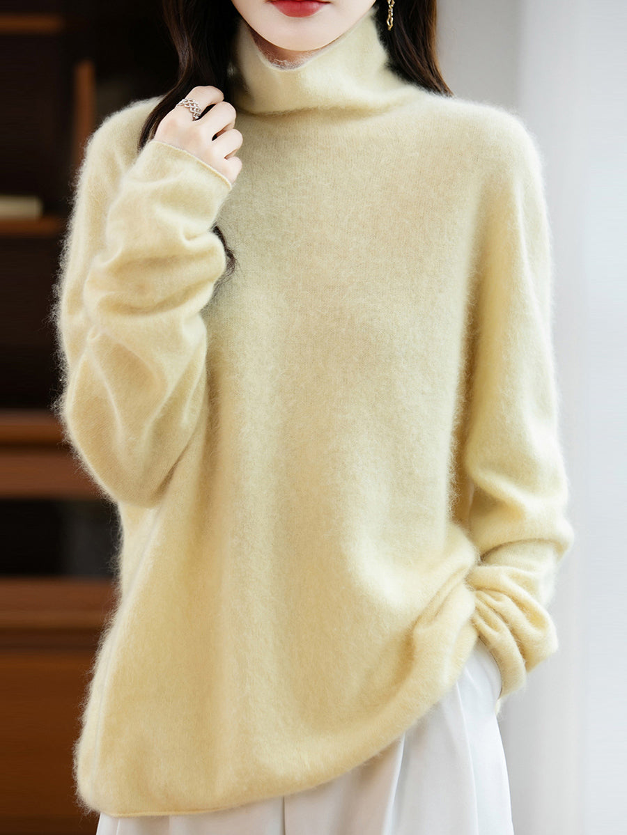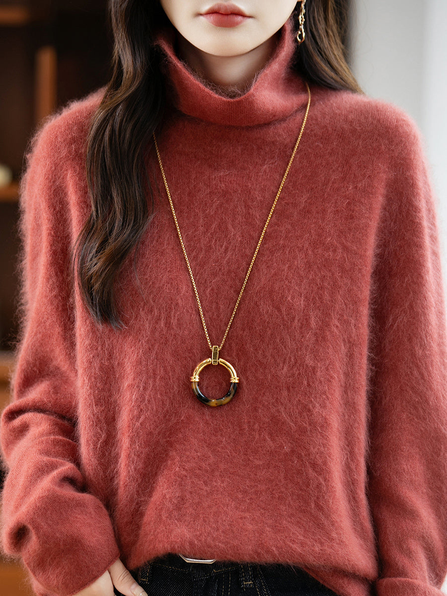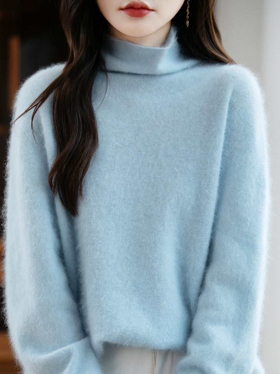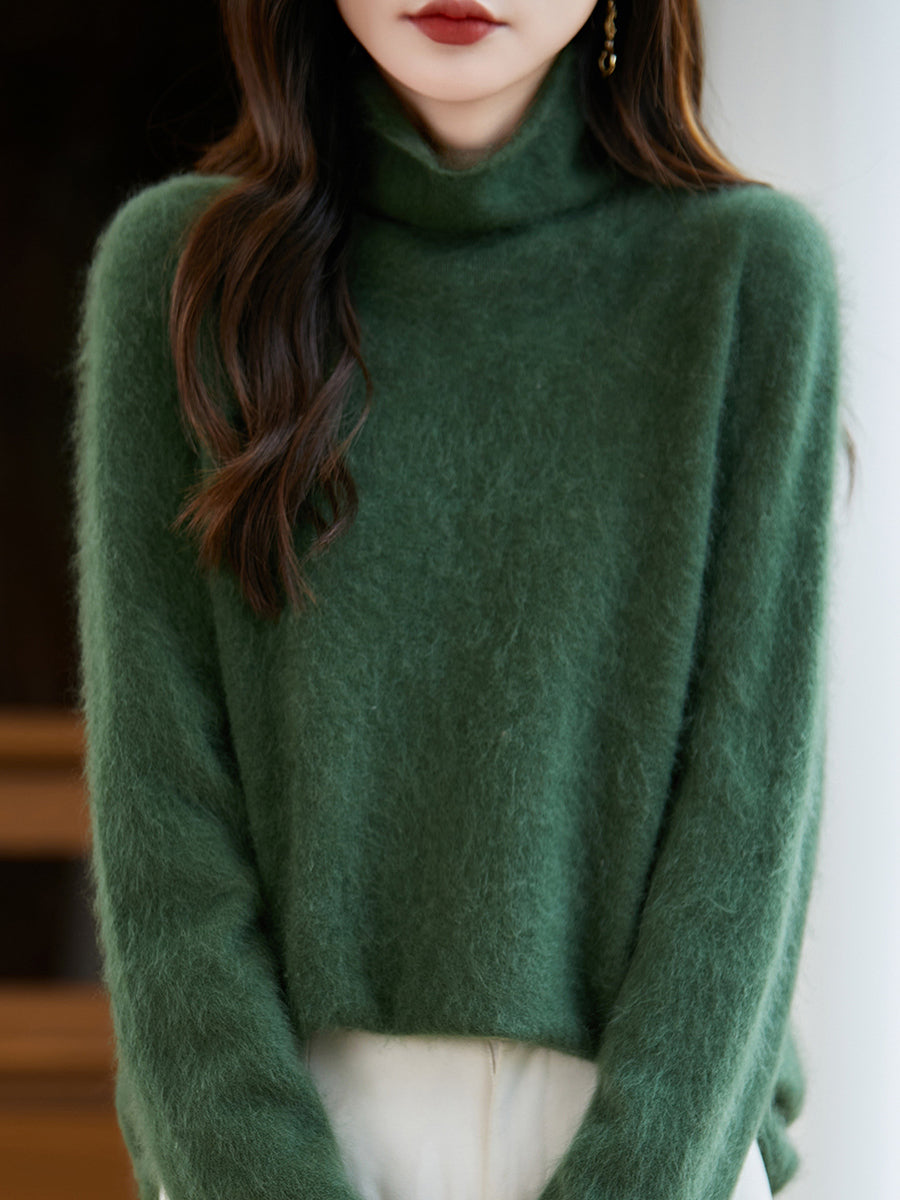 Suéter feminino de lã com gola redonda e cor lisa para o inverno