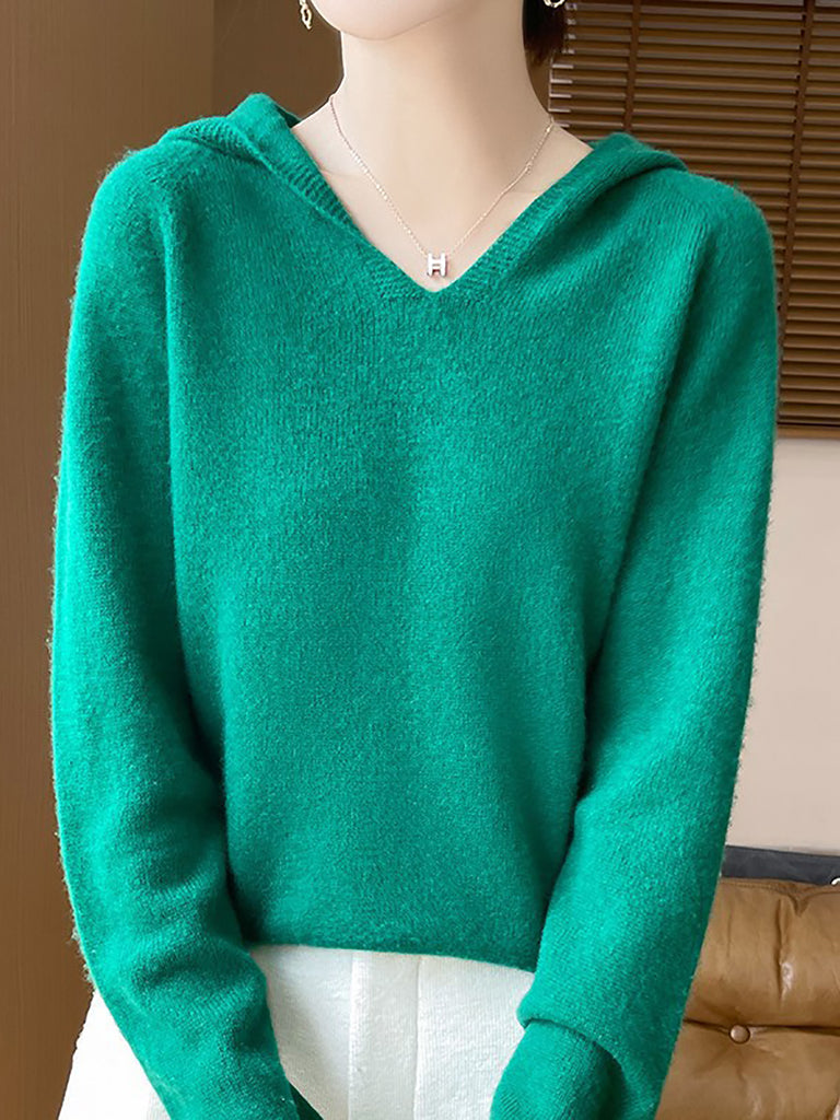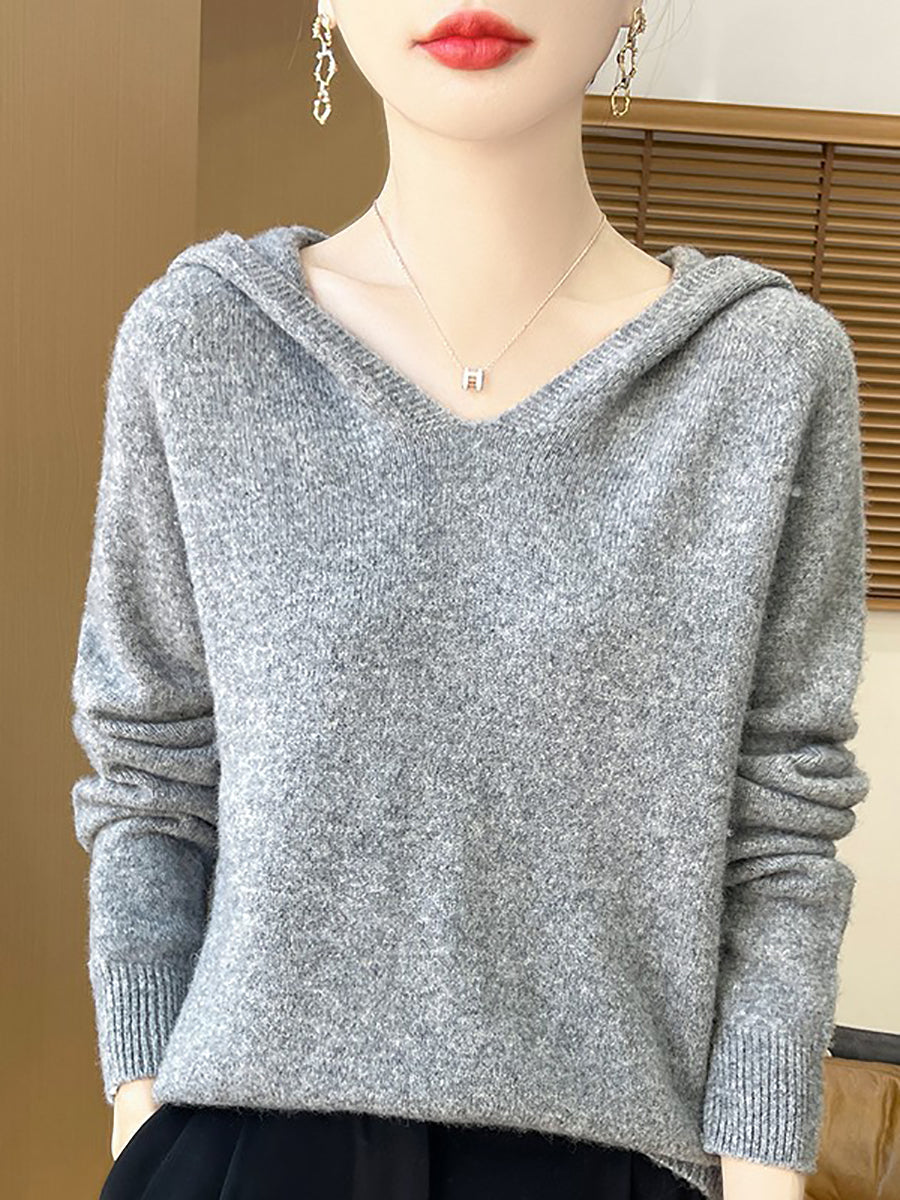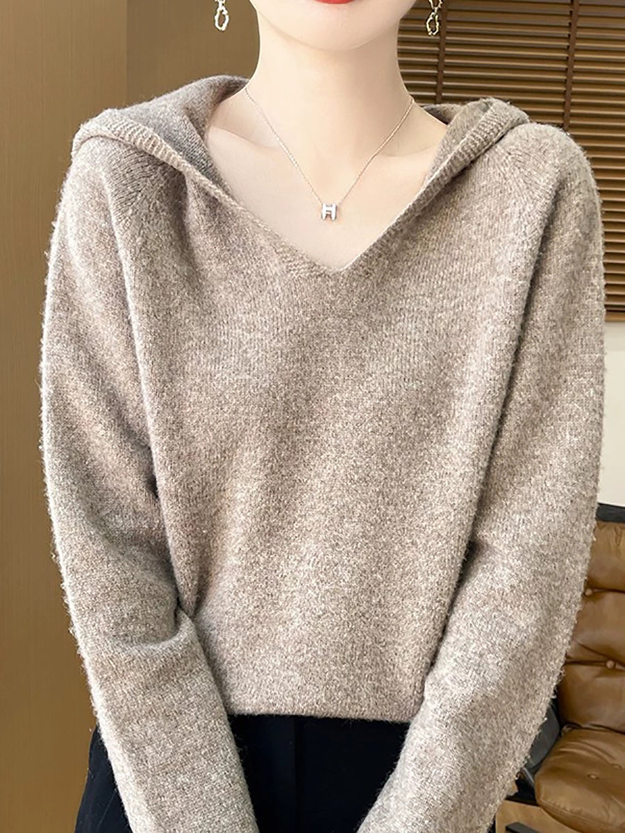 Suéter feminino com capuz em cores puras e estilo artístico para o outono.