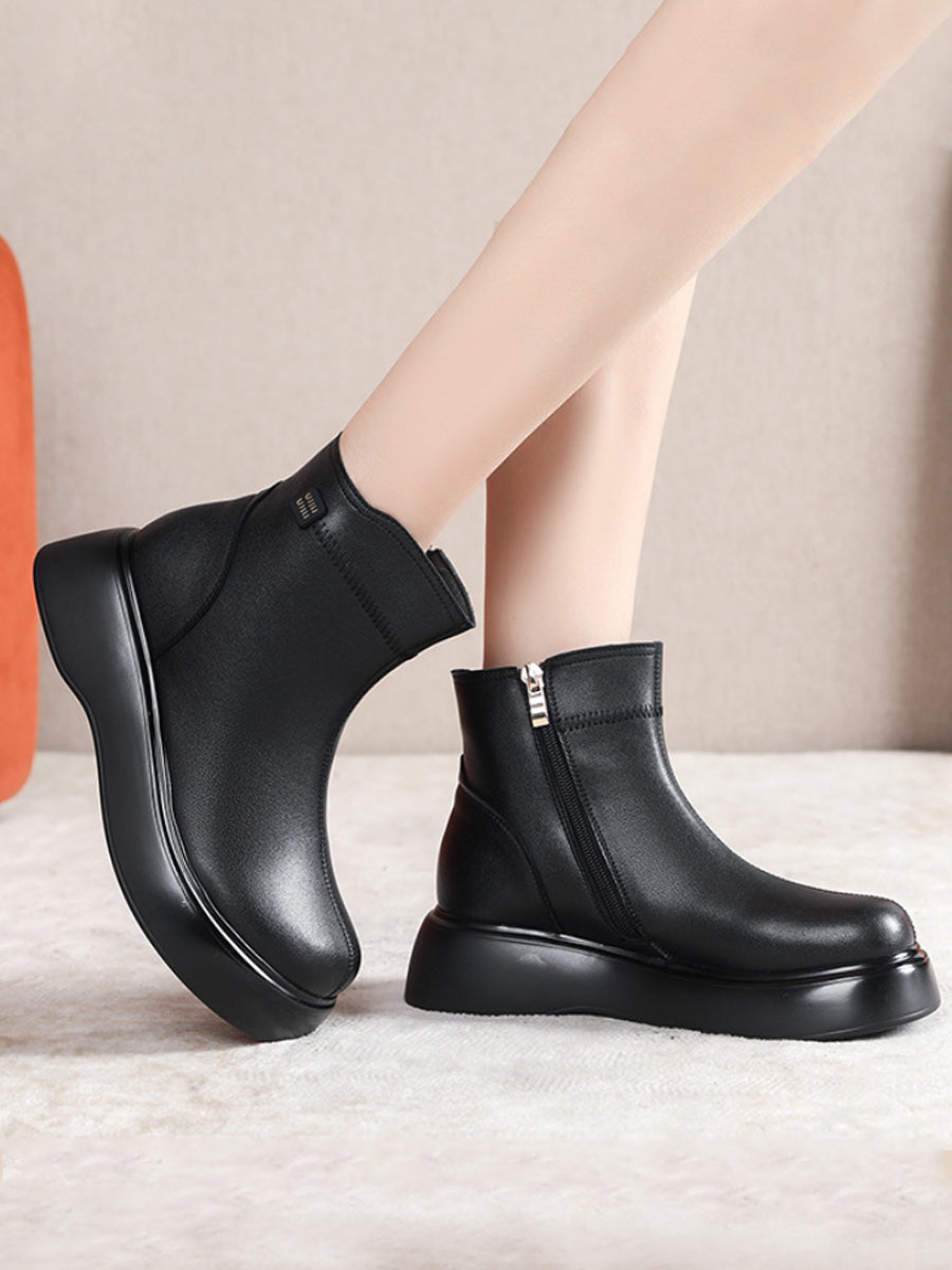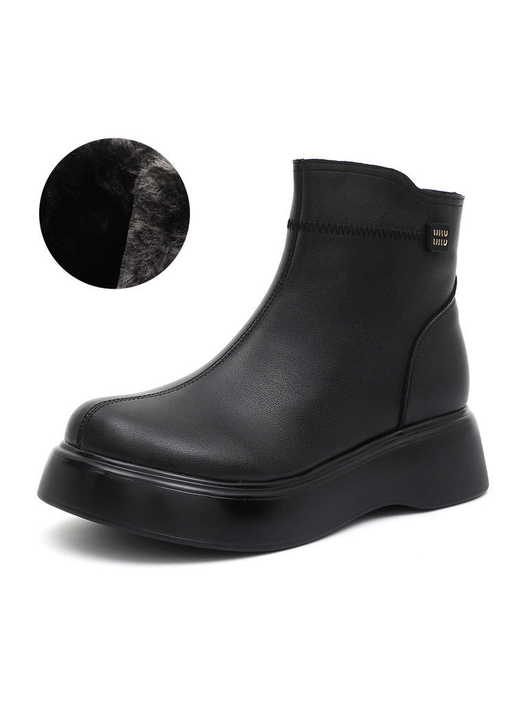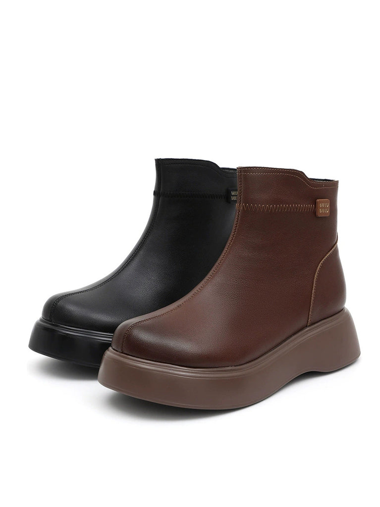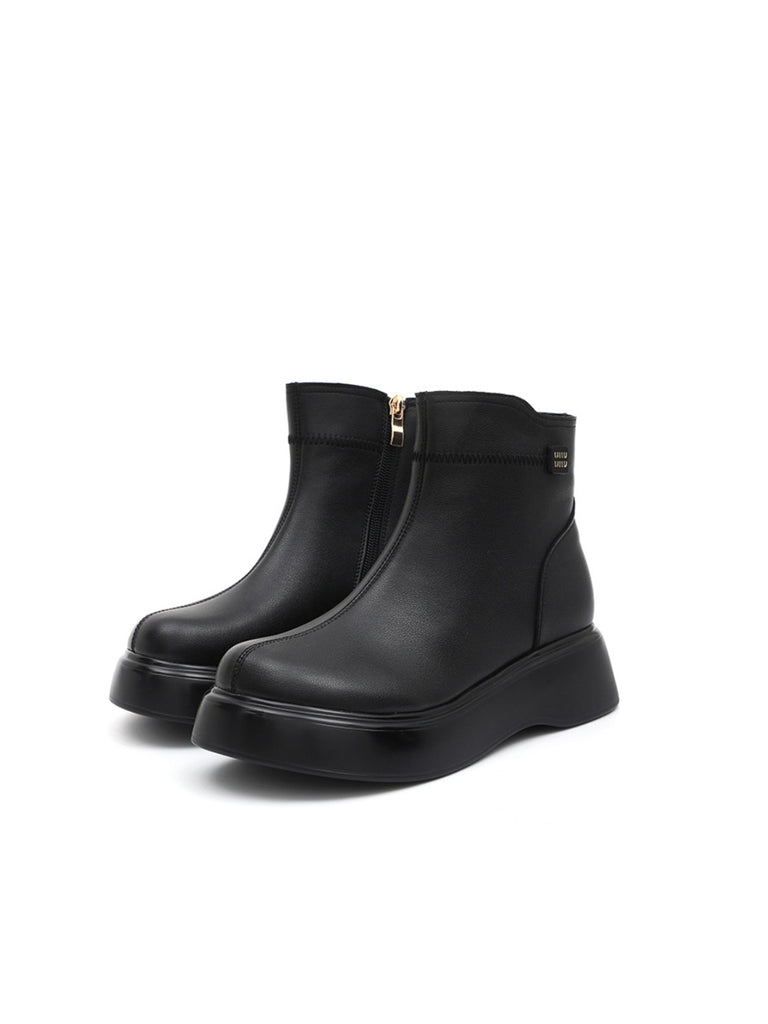 Botas de cano curto femininas casuais de cor lisa com plataforma e detalhes em patchwork.