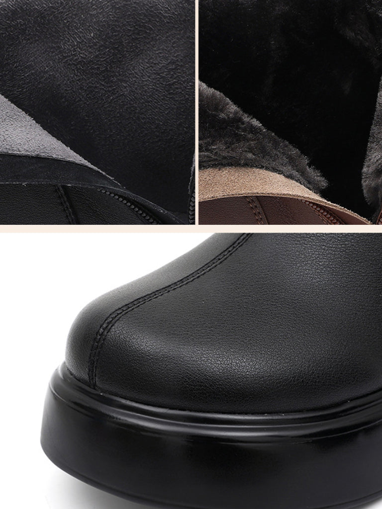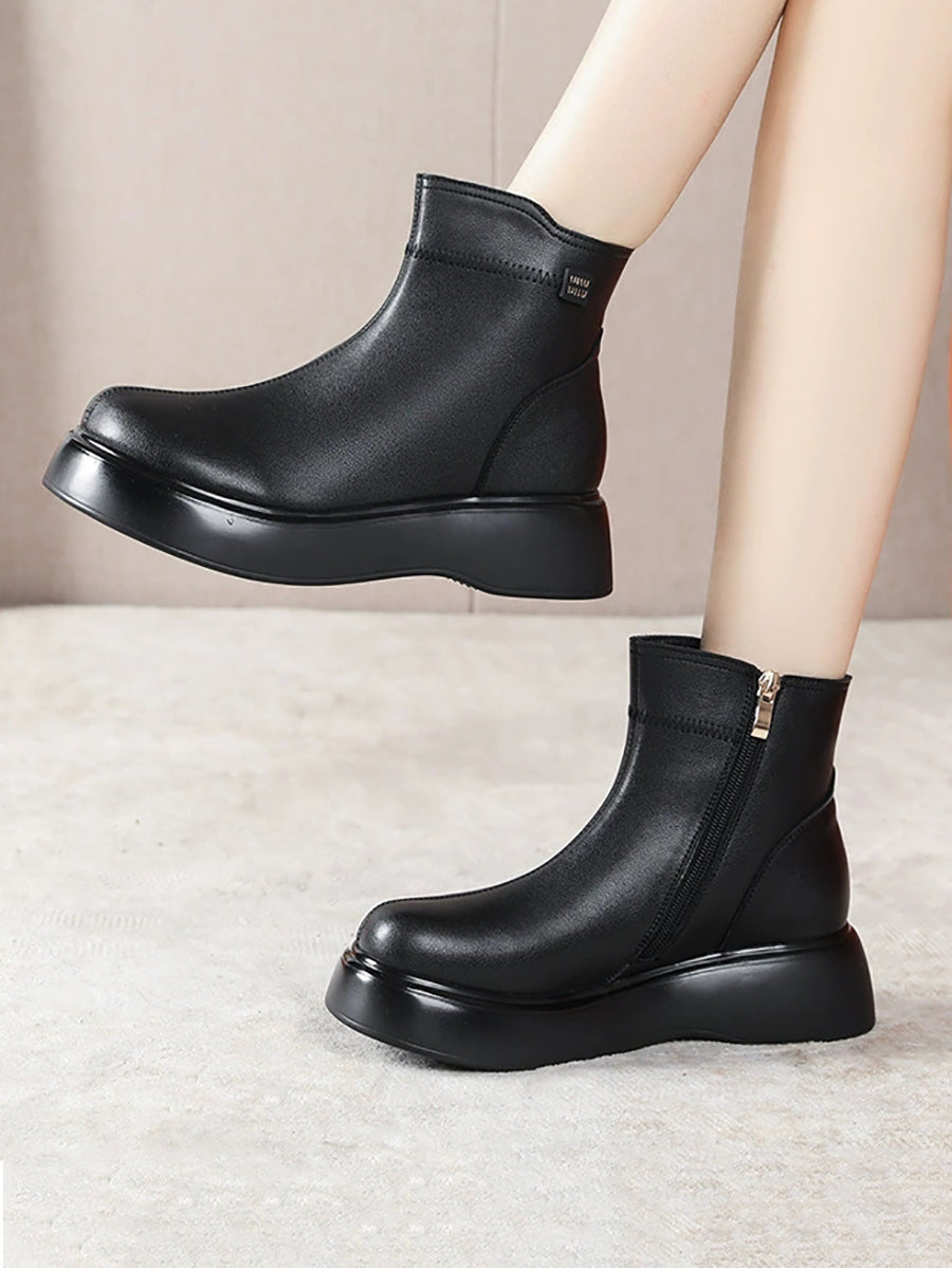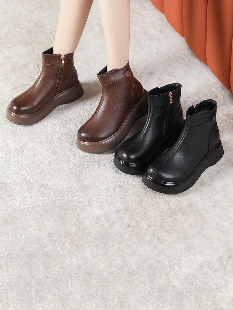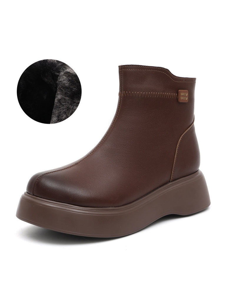 Botas de cano curto femininas casuais de cor lisa com plataforma e detalhes em patchwork.