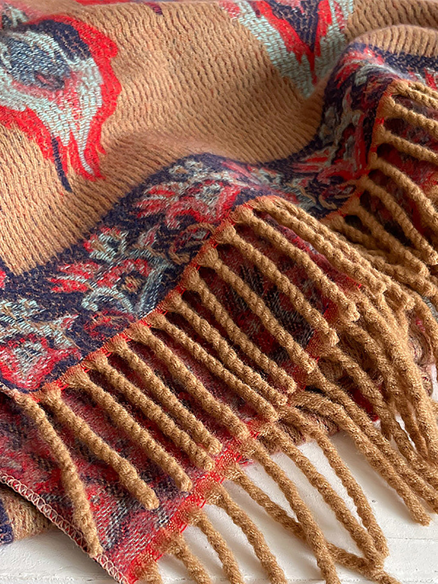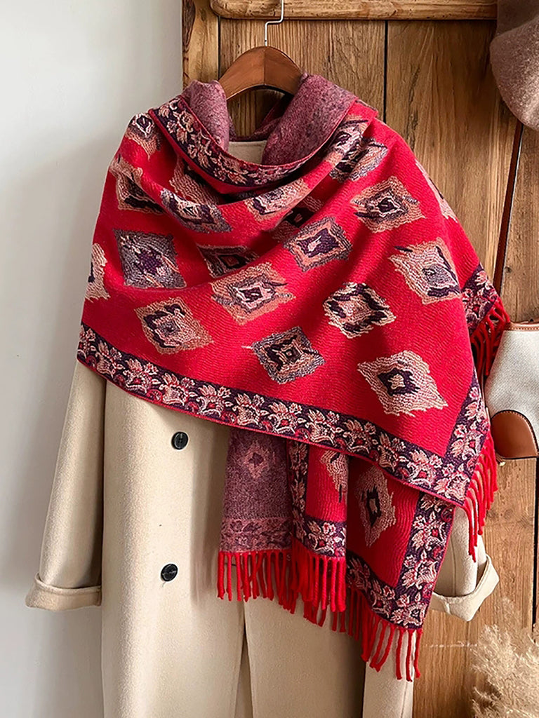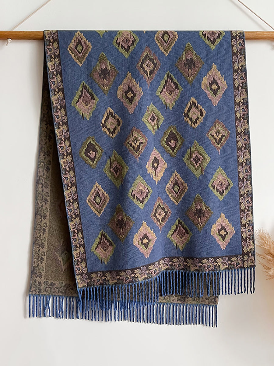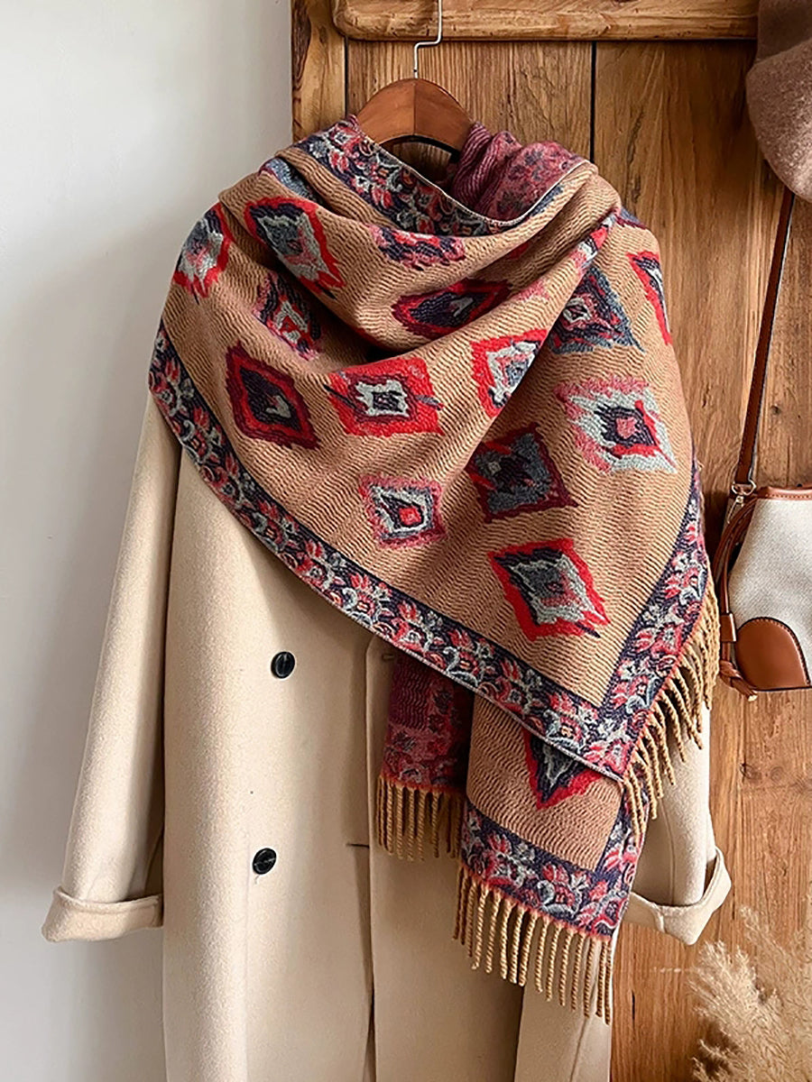 Xale/Cachecol Feminino Étnico com Borlas em Formato de Losangos