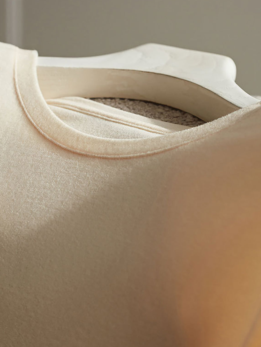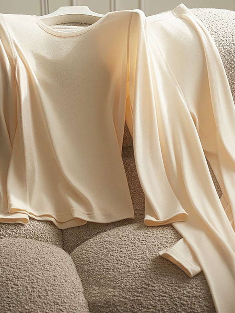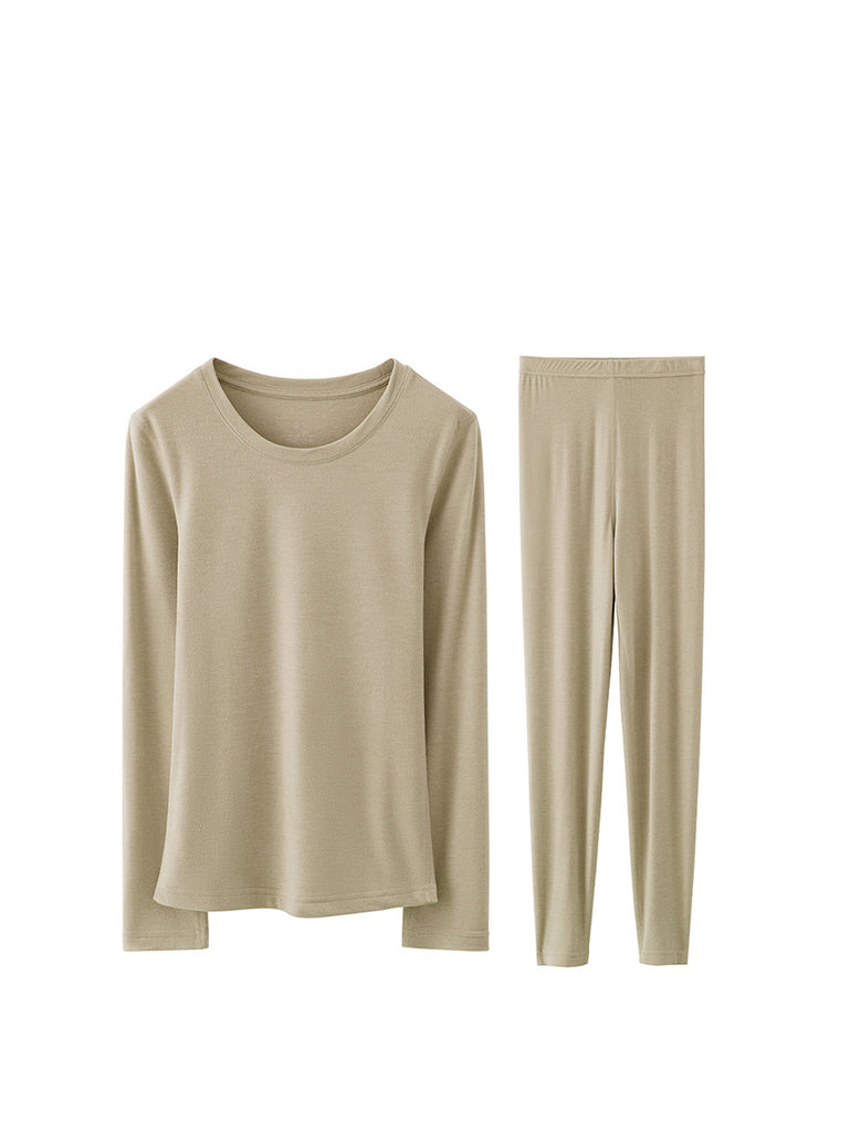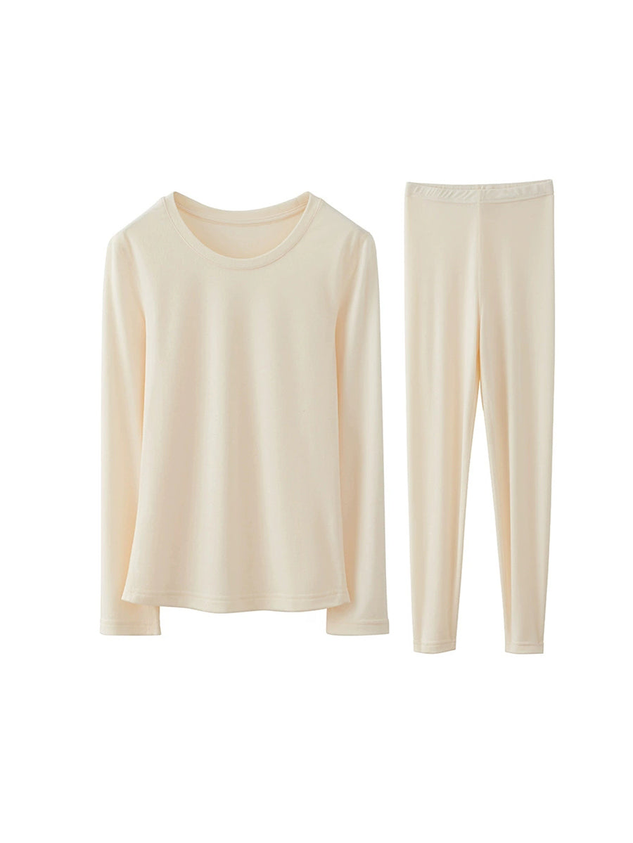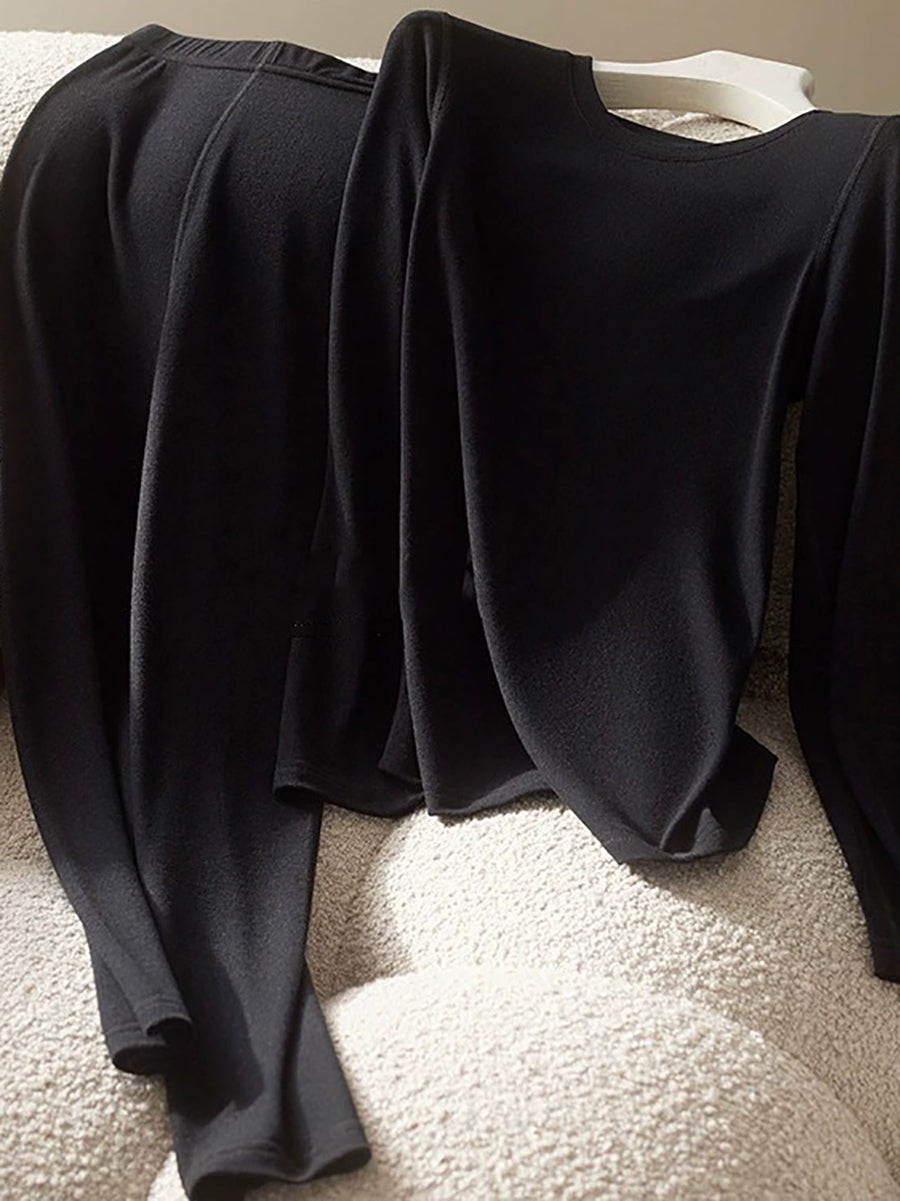 Conjunto feminino de inverno com calça de renda para manter o corpo aquecido.