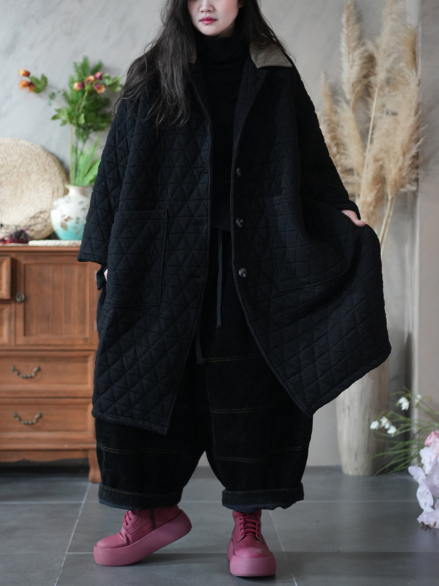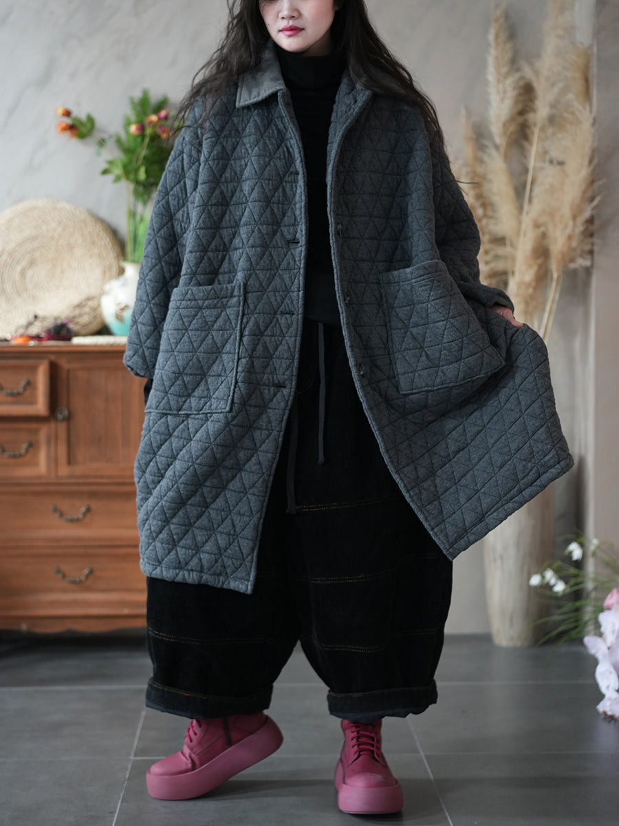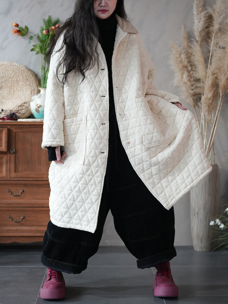 Casaco feminino de inverno acolchoado com gola dobrável e cor lisa.