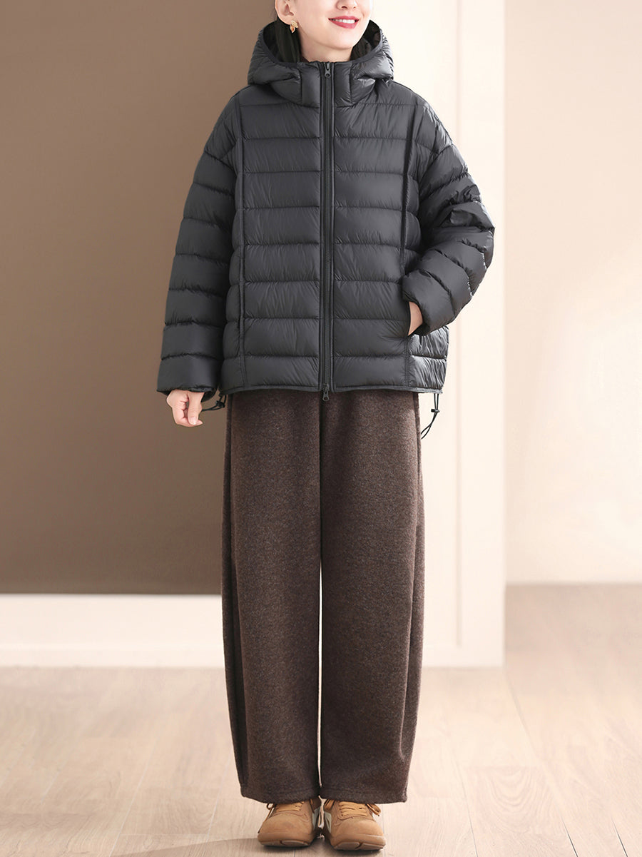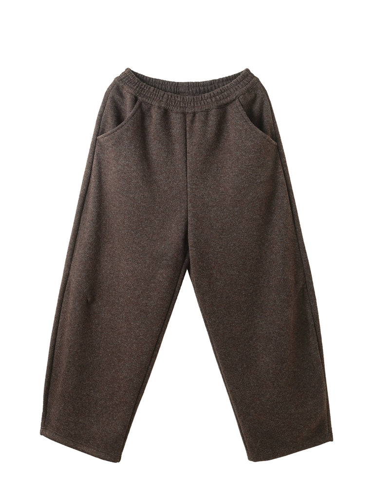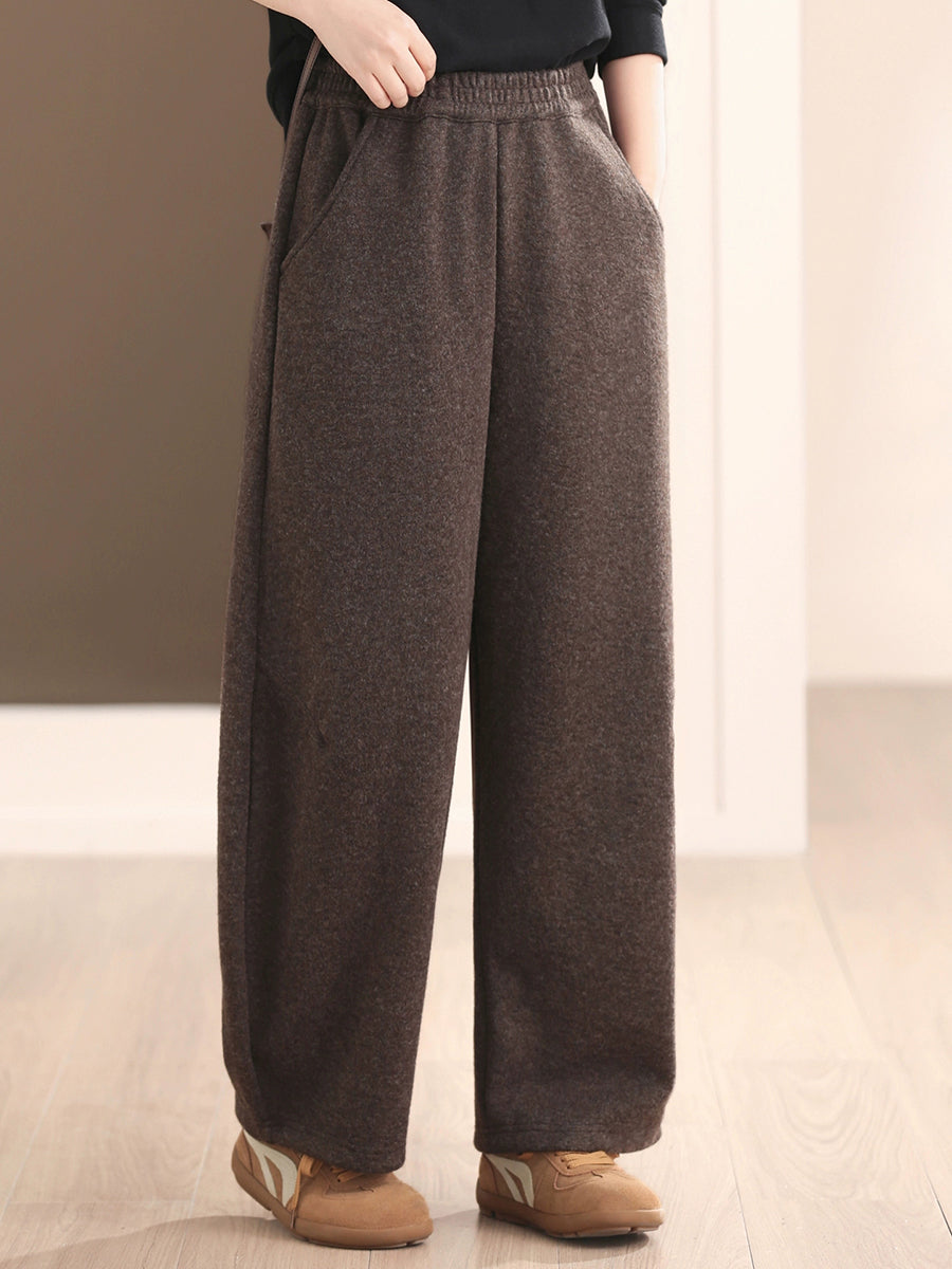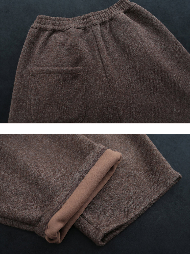 Calça feminina de inverno retrô, lisa, forrada com lã, de pernas largas.