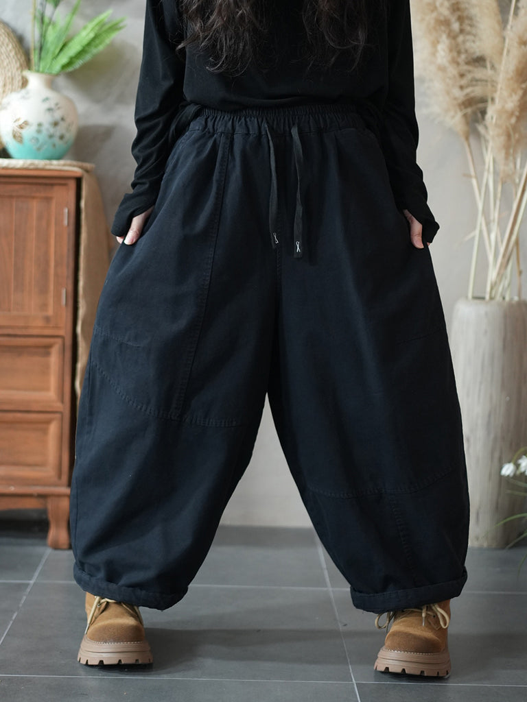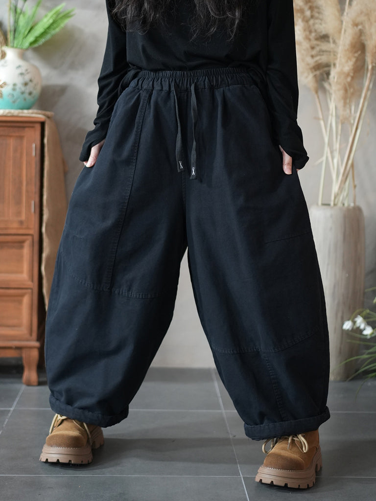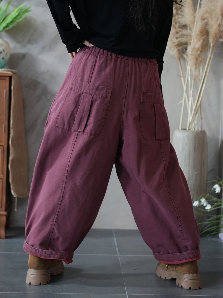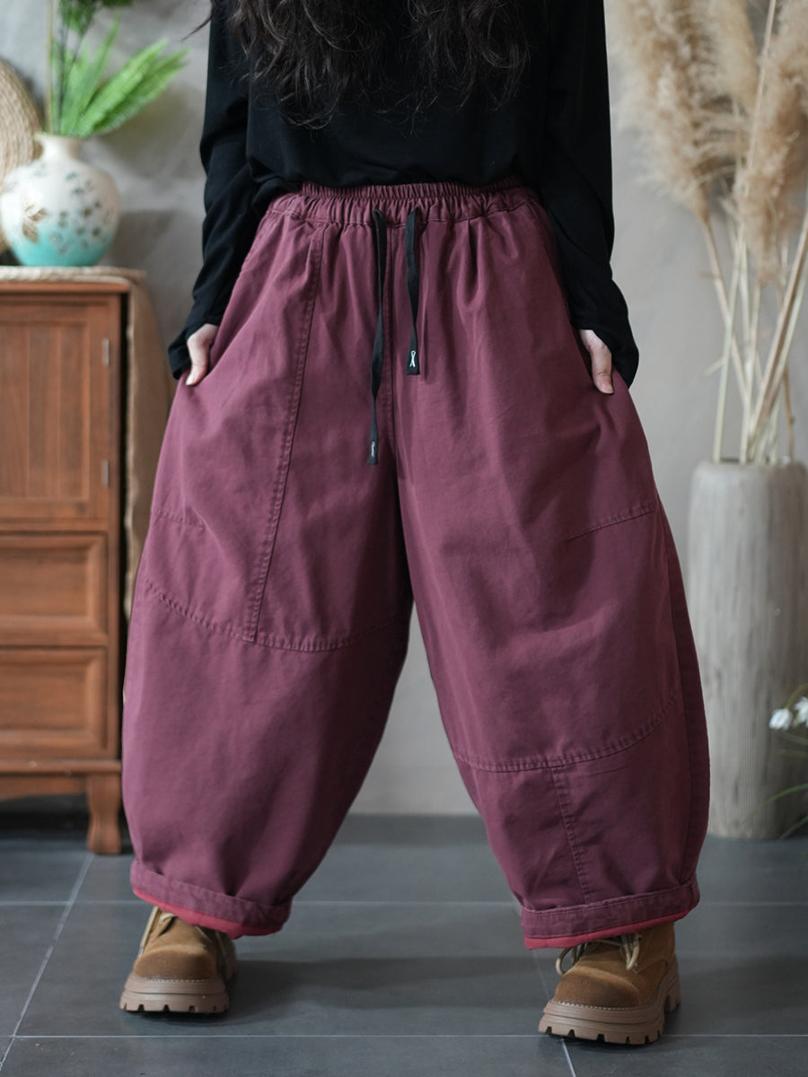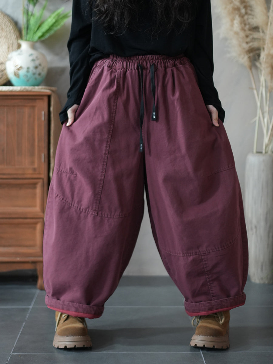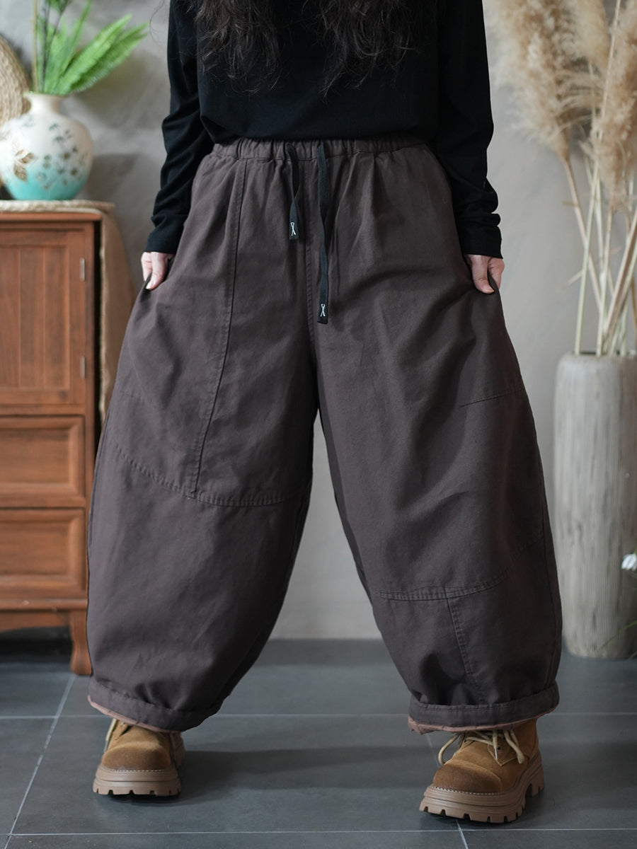 Calça Harem Acolchoada Feminina Retrô de Inverno em Cor Lisa