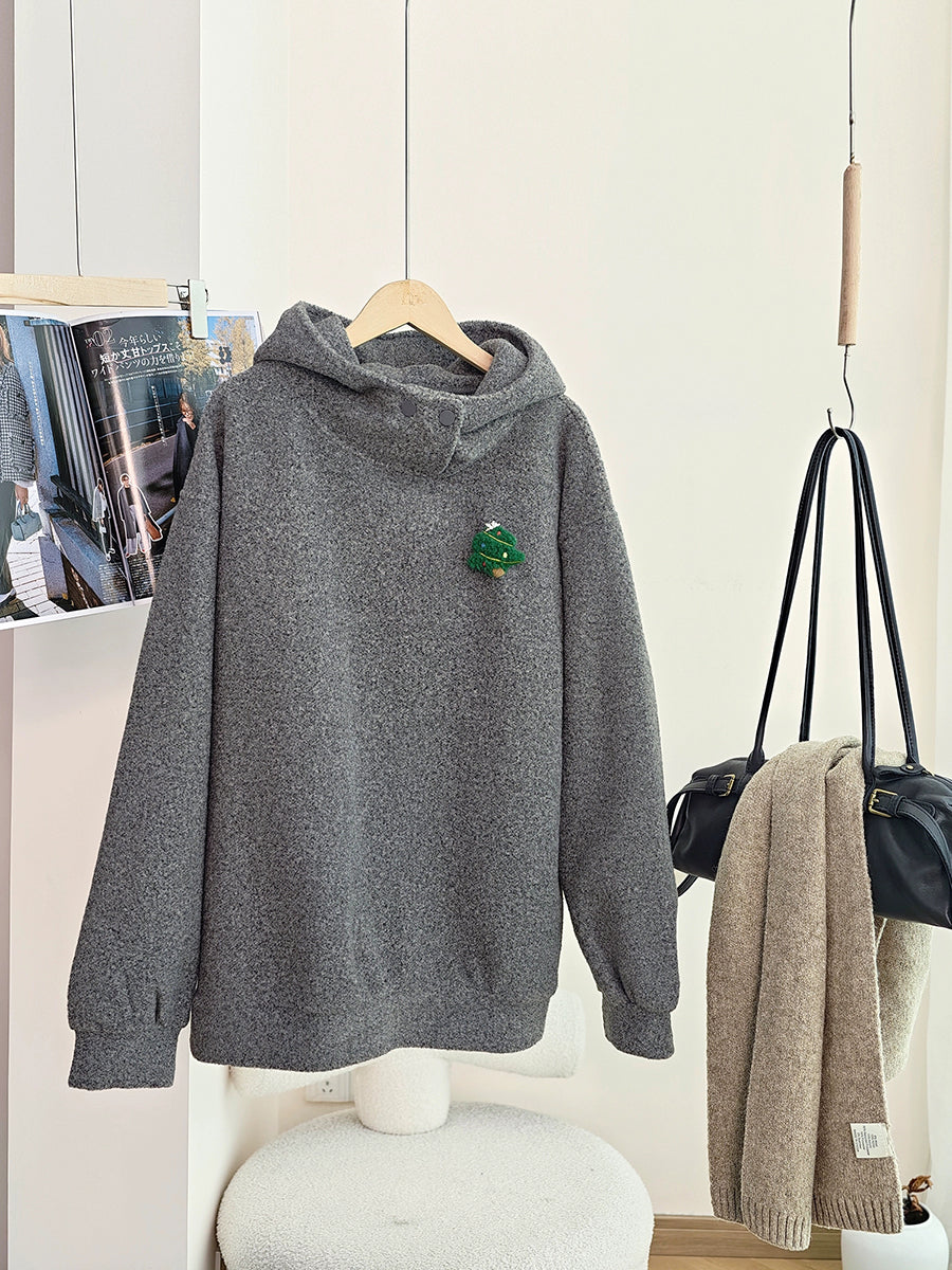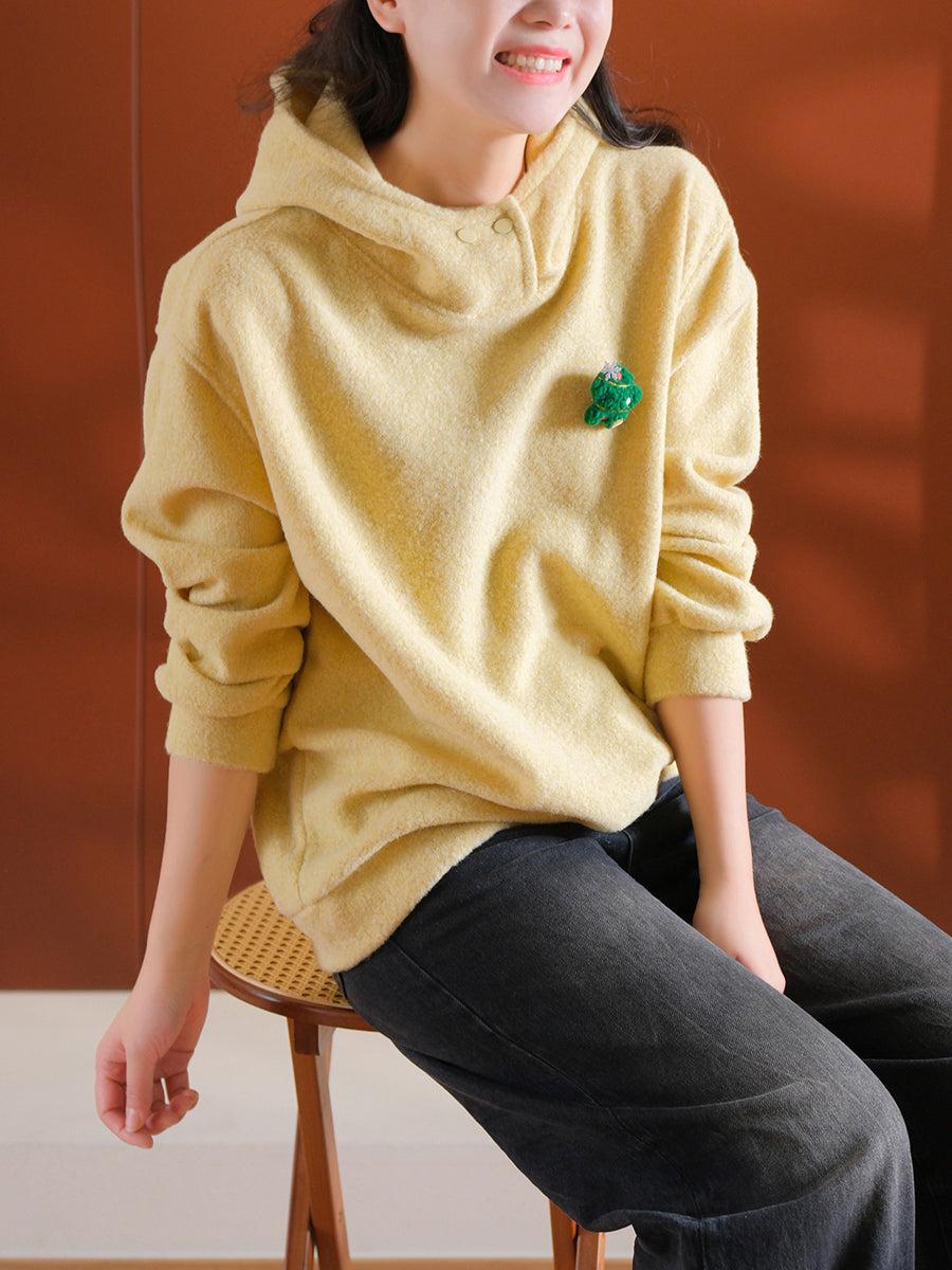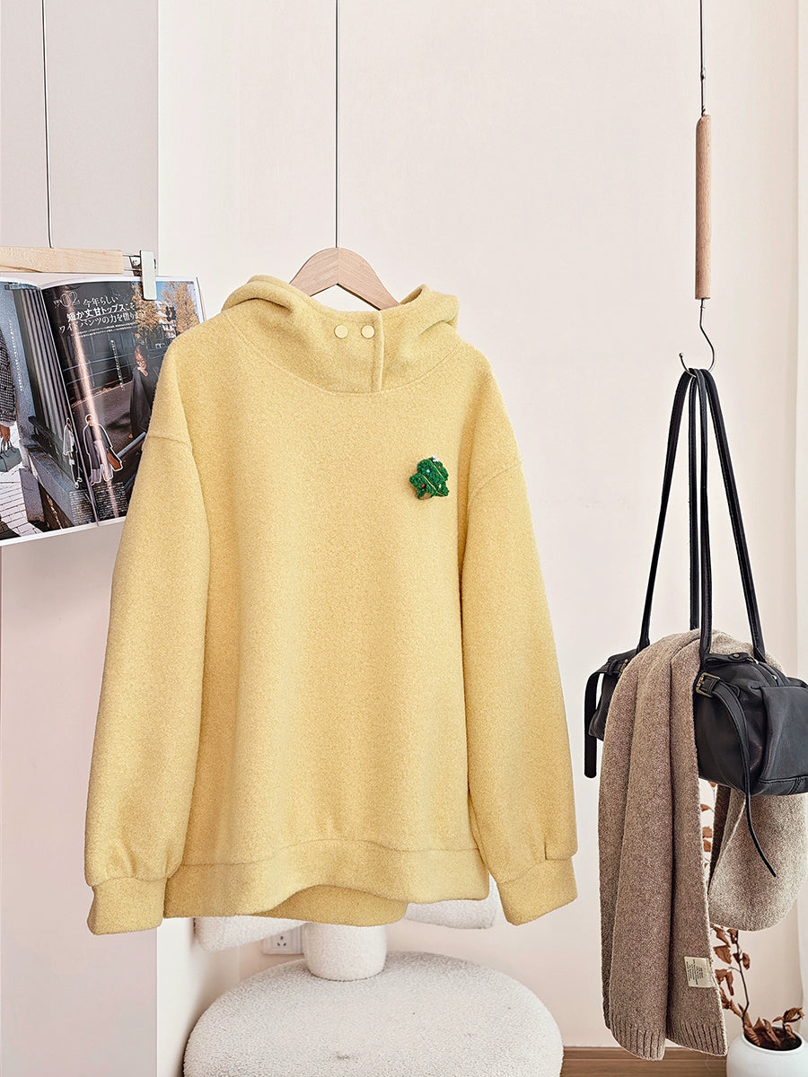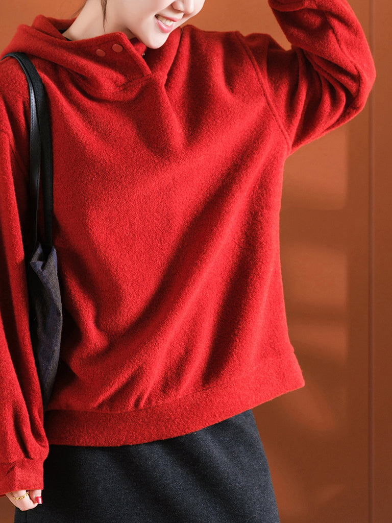 Moletom feminino de inverno, quente e de cor lisa, com capuz.