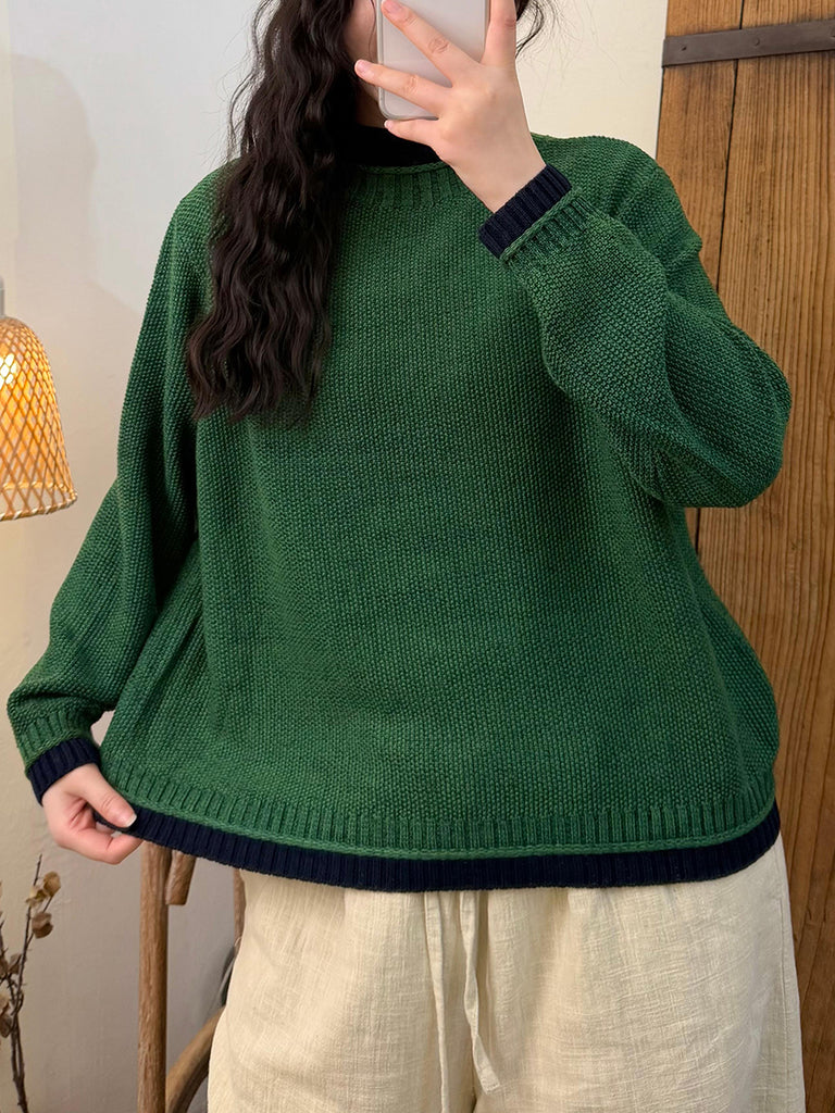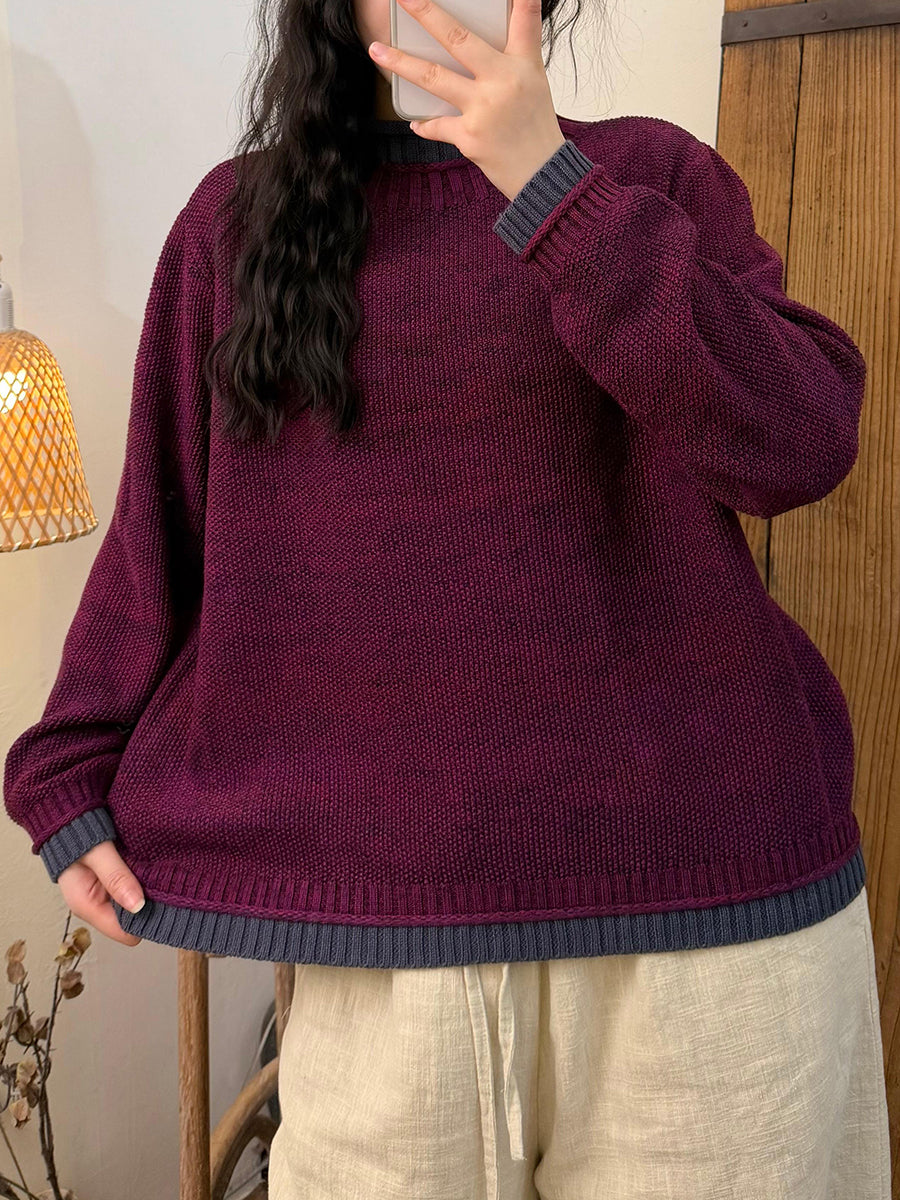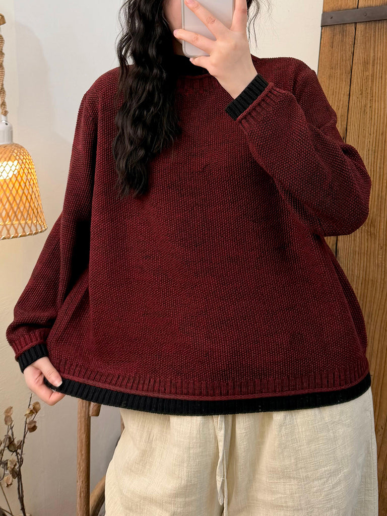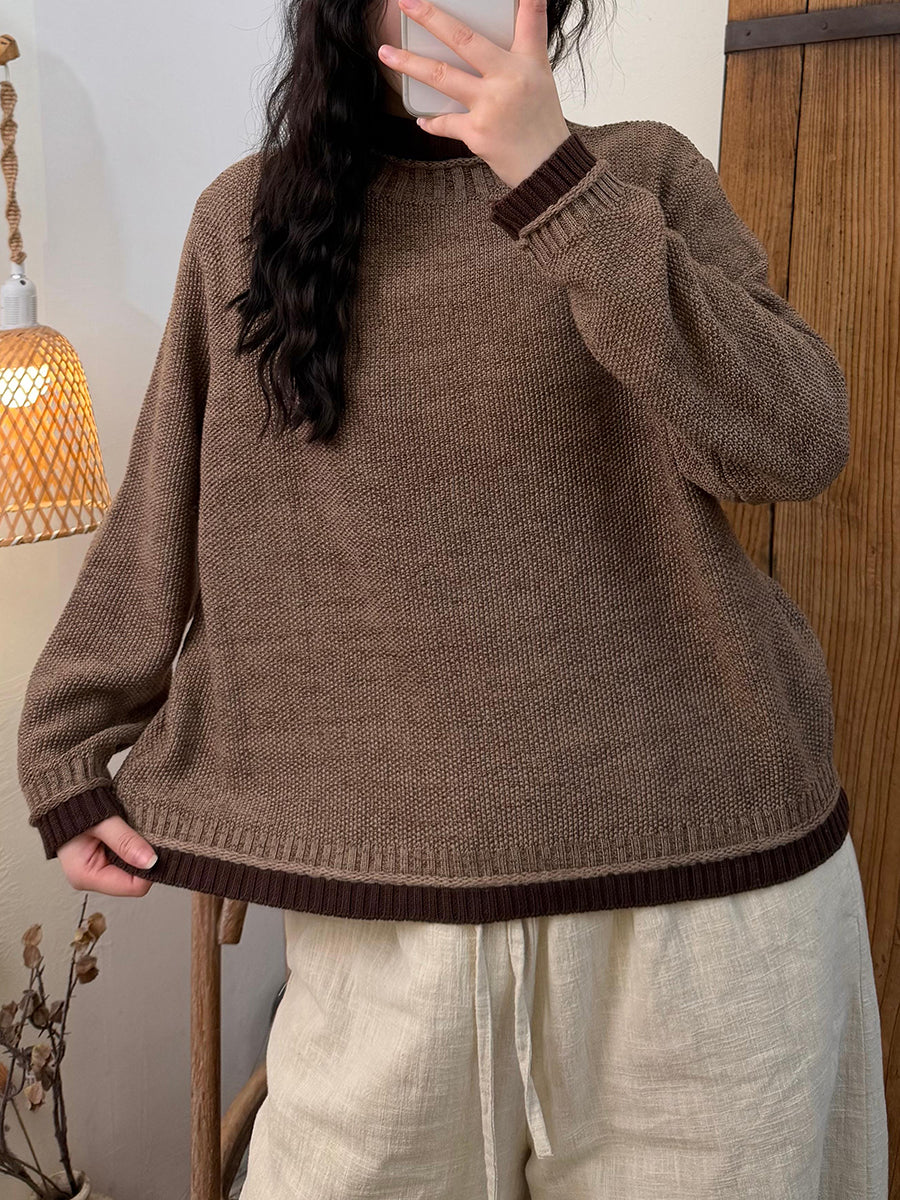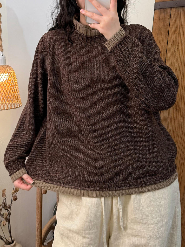 Suéter feminino de gola alta em tricô com blocos de cores e estilo artístico para o outono.