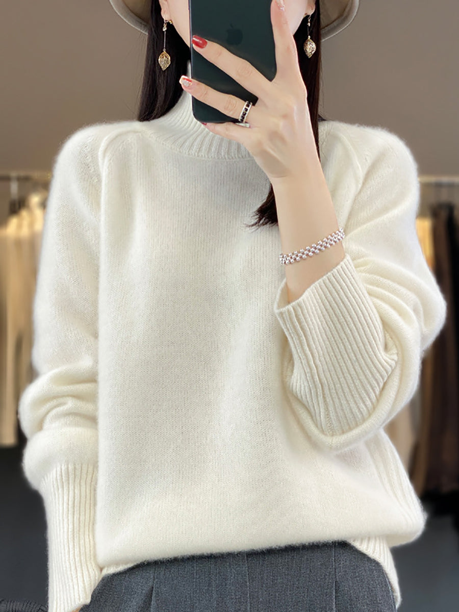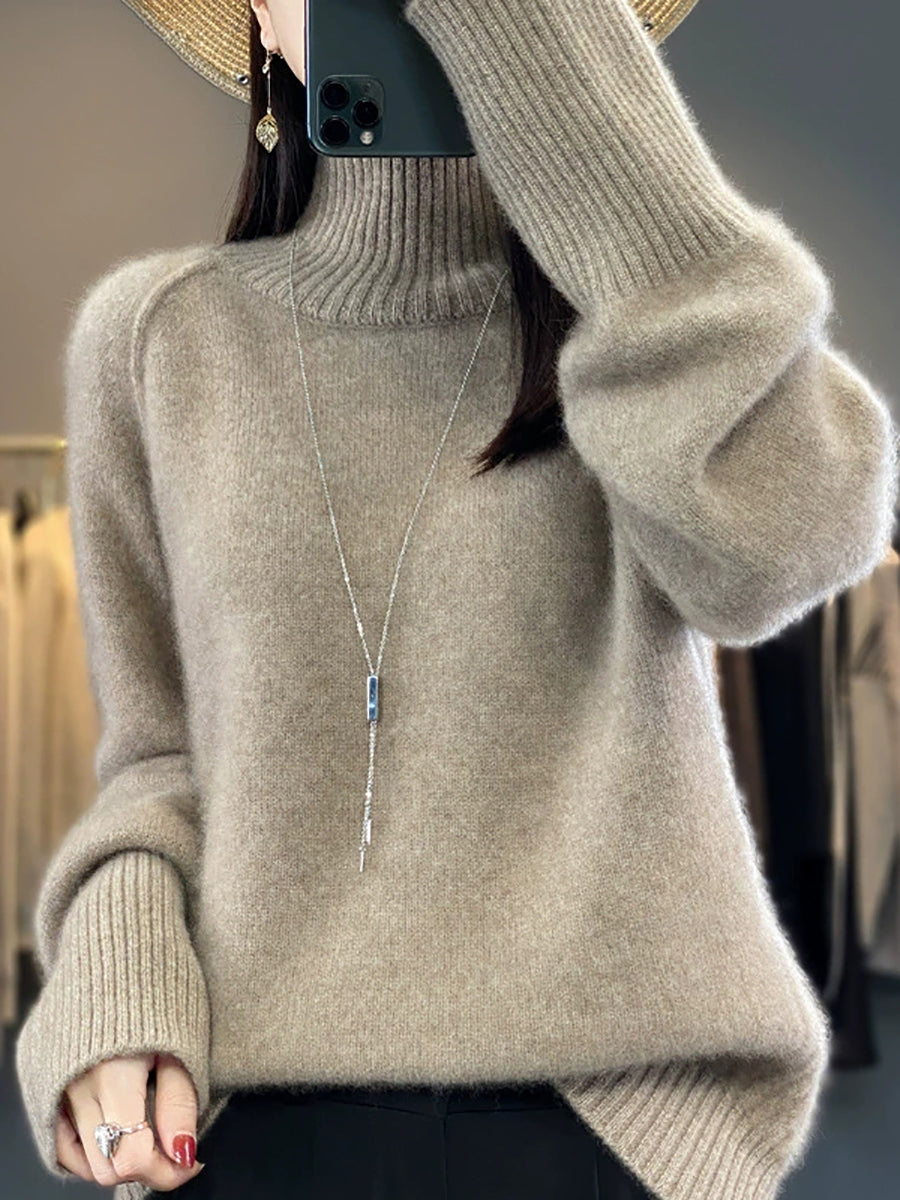 Suéter feminino de gola alta em tricô, casual, de cor lisa, para o inverno.
